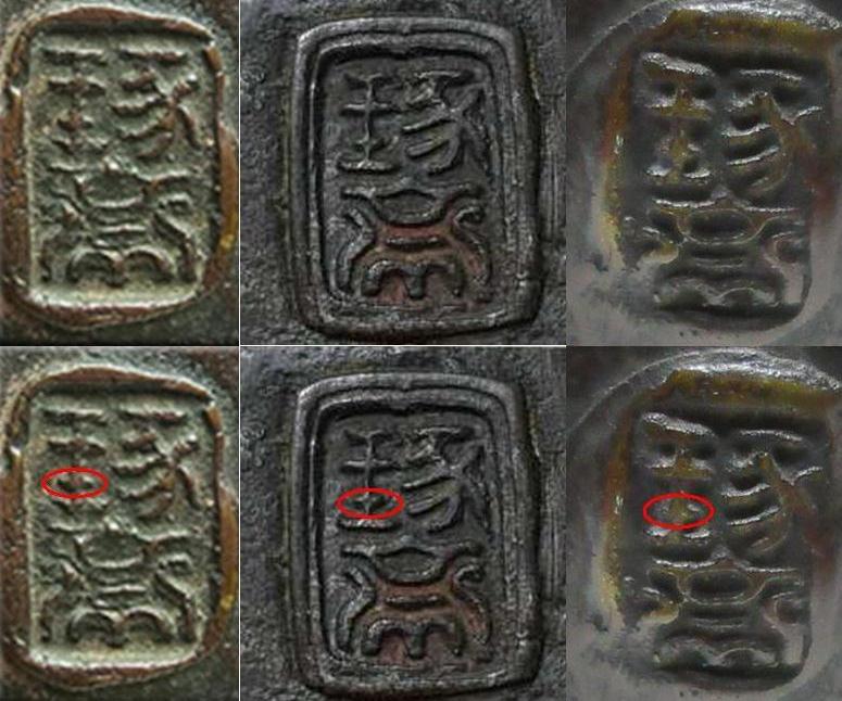Honma Takusai I (1812-1891) was a bronze metal caster from the late Edo to Meiji period. He was born as the eldest son of Hara Tokusai, a foundryman from a small village in Echigo, and was called Sadanobu. He took over the family business at a young age, and learned the wax casting technique from Obata Dosai in Edo. In 1824, at the age of 16, he created the first wax cast copper stationery and tea utensils using the wax casting technique. He then handed over the family business to his younger brother, third son Ryosuke, and moved to Sado, where he married into the Honma Rokubei family. There he started a foundry business and began making temple bells, lanterns, vases, stationery, as well as Buddhist altar implements and incense burners. In 1841, he was asked by the Sado magistrate Nakagawa Hidanokami to cast several dozen cannons in Tsuruko, and later, under the tutelage of western scholar Sakuma Shozan, he also began making western-style cannons. After the Meiji Restoration in 1854, the signing of the Treaty of Peace and Amity between the United States, Japan, Great Britain, and Japan, and Russia, meant that there was no need to manufacture cannons, so he devoted himself to creating works of art. He created a mottled finish known as ‘madara murasakido’, and exhibited it at exhibitions both in Japan and abroad. The madara murasaki technique consisted of a method that produces an oxide film with variegated colours. His madara murasaki pieces were highly praised for their dignified beauty and sophisticated craftsmanship, and he received numerous awards at domestic and international exhibitions. Many of his other works, such as temple bells and lanterns, were inscribed with the name ‘Honma Rokubei Fujiwara Sadanobu’, and many small items such as paperweights are unsigned masterpieces. The second Honma Takusai (1846-1904) was born as the eldest son of the first, and was called Teizo. He worked hard to hone his metal casting skills together with his two younger brothers, Tsuchiya Soeki I and Honma Takuma I. His style was elaborate and precise, and it is said that half of the award-winning works of the first generation were actually created by the second generation Takusai. **Fellow sellers, this information was researched by Kominka Zakka and CANNOT be used in your own listings.