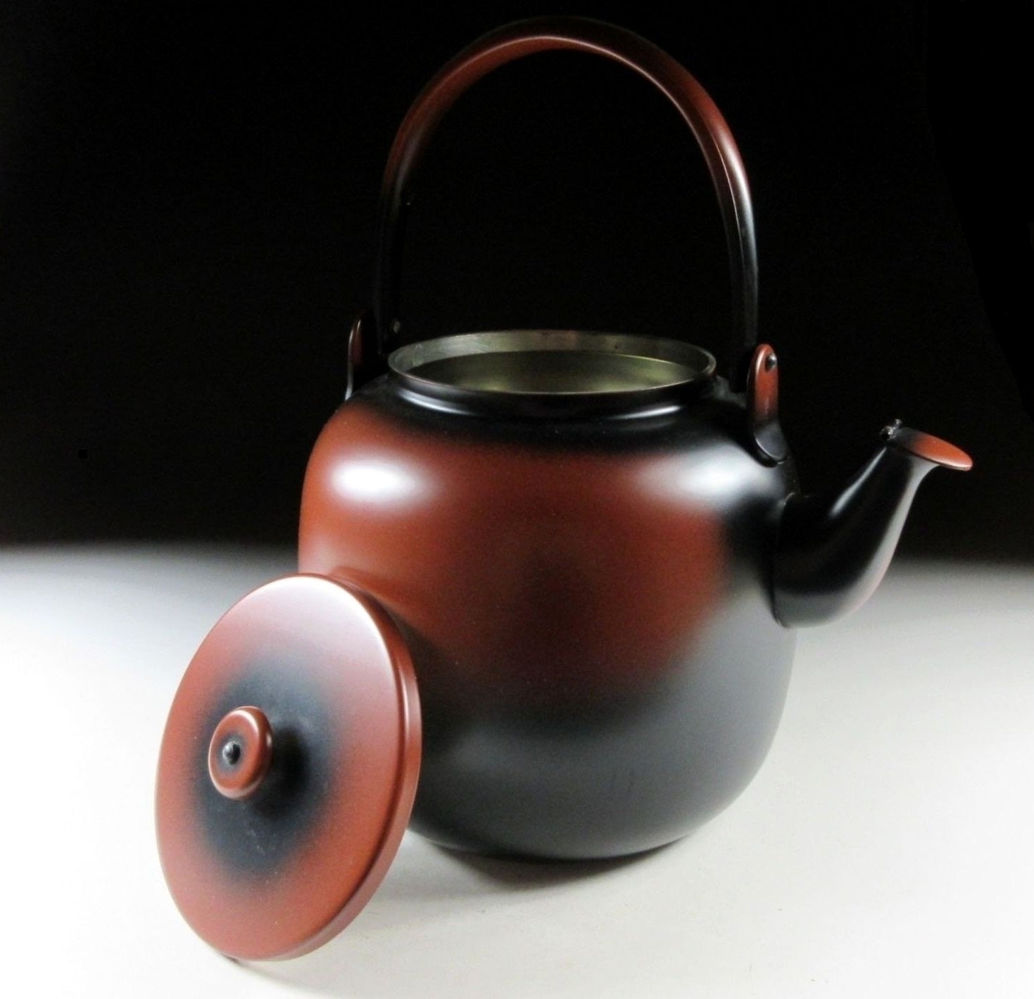 This listing is for a 2.5 litre mizutsugi, which is a water pot used for refilling the mizusashi and kama during the tea ceremony. This particular style of mizutsugi is known as the Koshiguro Yakan style, and it is made of copper alloyed with nickel, and the inside is coated with tin. During the tea ceremony the mizutsugi is always handled with two hands and the lid is turned upside down on the floor. The lid of the Kama is placed on the mizutsugi lid. When carrying it away the lid is placed upside down on the mizutsugi, and the chakin is placed on top of it. The mizutsugi in this listing has more of a matte finish and comes with its original signed wooden storage box.