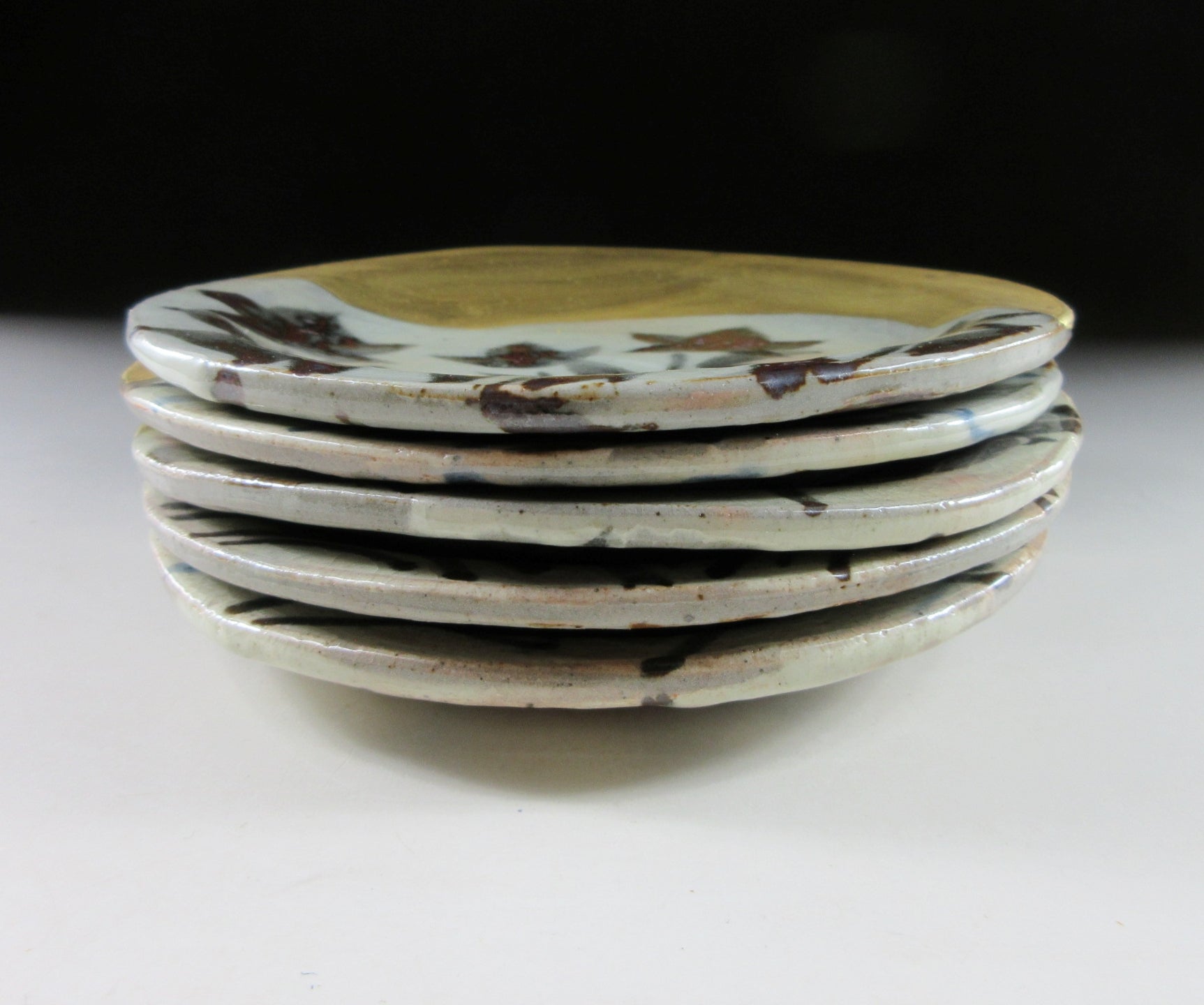 All five plates are in very good condition with no chips or cracks, however three don’t quit sit flat due to their hand-shaped qualities.