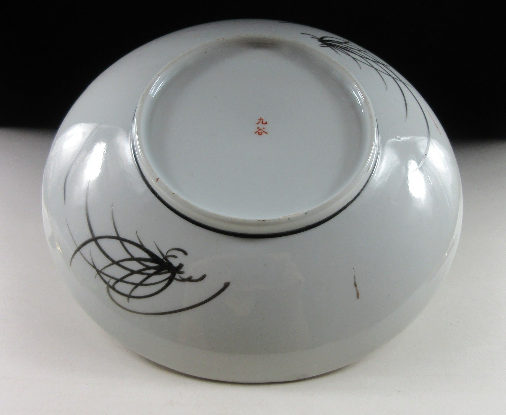 This listing is for a Kutani-ware plate made about 100-120 years ago. It is hand-painted and decorated with a depiction of Hotei, one of the seven gods of fortune. He is commonly depicted as bald, smiling, with a big belly, bulging ears, and a large sack slung over his shoulder. It is in usable condition and would also be right at home in a collection of old porcelain-ware. The mark on the back reads as ‘Kutani’.