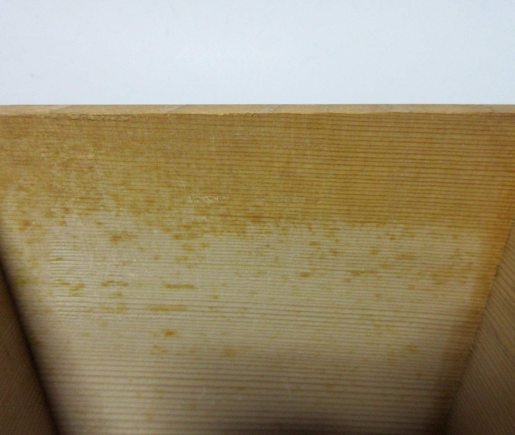 It has a slightly wobbly bottom and the wooden box and profile paper are spotty.