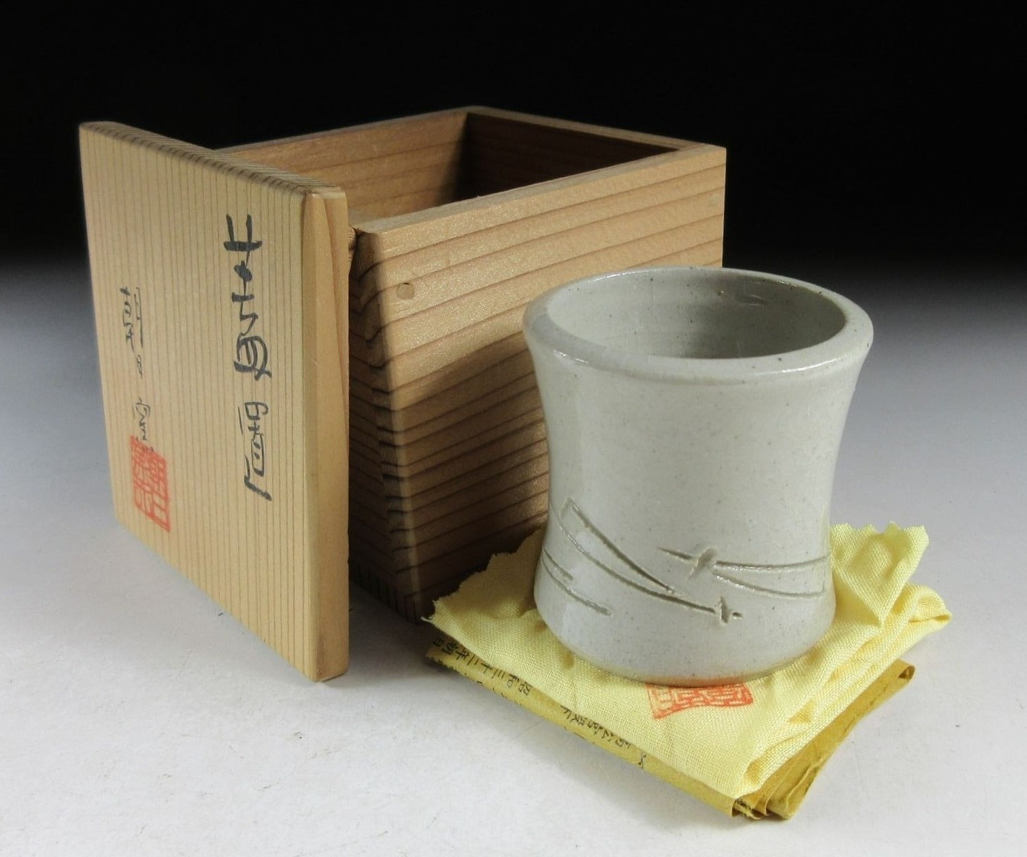 Asahi Gama opened in the early 17th century on the banks of the Uji River, and is currently in its 15th generation. The kiln’s purpose was to produce teaware under the instruction of tea master Kobori Enshu. The first three generations produced only teaware, and used clay dug from the surrounding mountains. The next four generations produced teaware along with roof tiles, however the eighth generation switched back to just teaware. These days the kiln produces chawan, hobin, small shibori-dashi teapots, mizusashi, and some western style teapots. The western influence came from the younger brother of the 13th generation who spent some time in England. Asahi Gama pieces are high quality, and possess good tea flavour. **Fellow sellers, this information was researched by Kominka Zakka and CANNOT be used in your own listings.