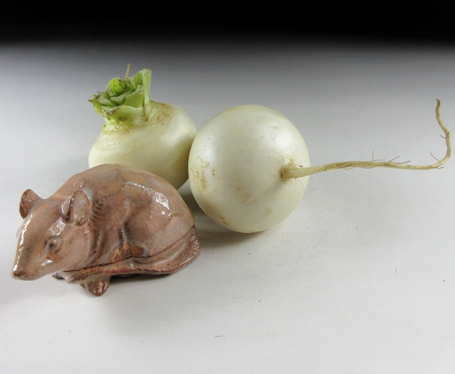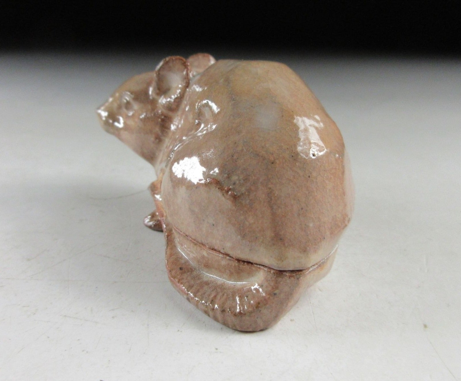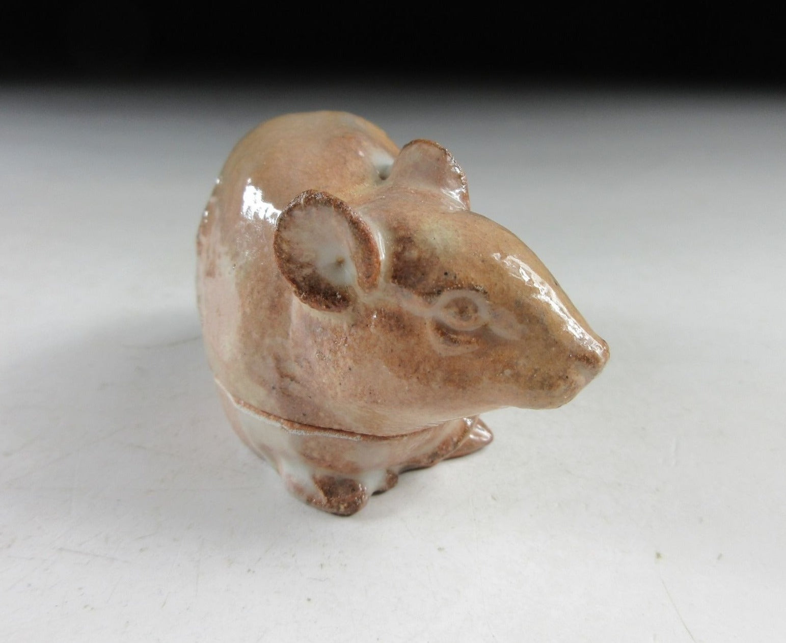This listing is for an Asahi-ware kogo made around 20 years ago by Asahi Hosai XIV. It is moulded to resemble a rat and coated in transparent white glaze. Its size and shape is suitable for both woodchip and kneaded incense, although pottery kogo are typically used for kneaded incense during the cooler months. This piece was most likely made to commemorate the Year of the Rat back in 1996. The stamp of the potter can be found on the bottom, and it comes with its original signed storage box. It also comes with a stamped yellow wrapping cloth for when the item is not in use.
