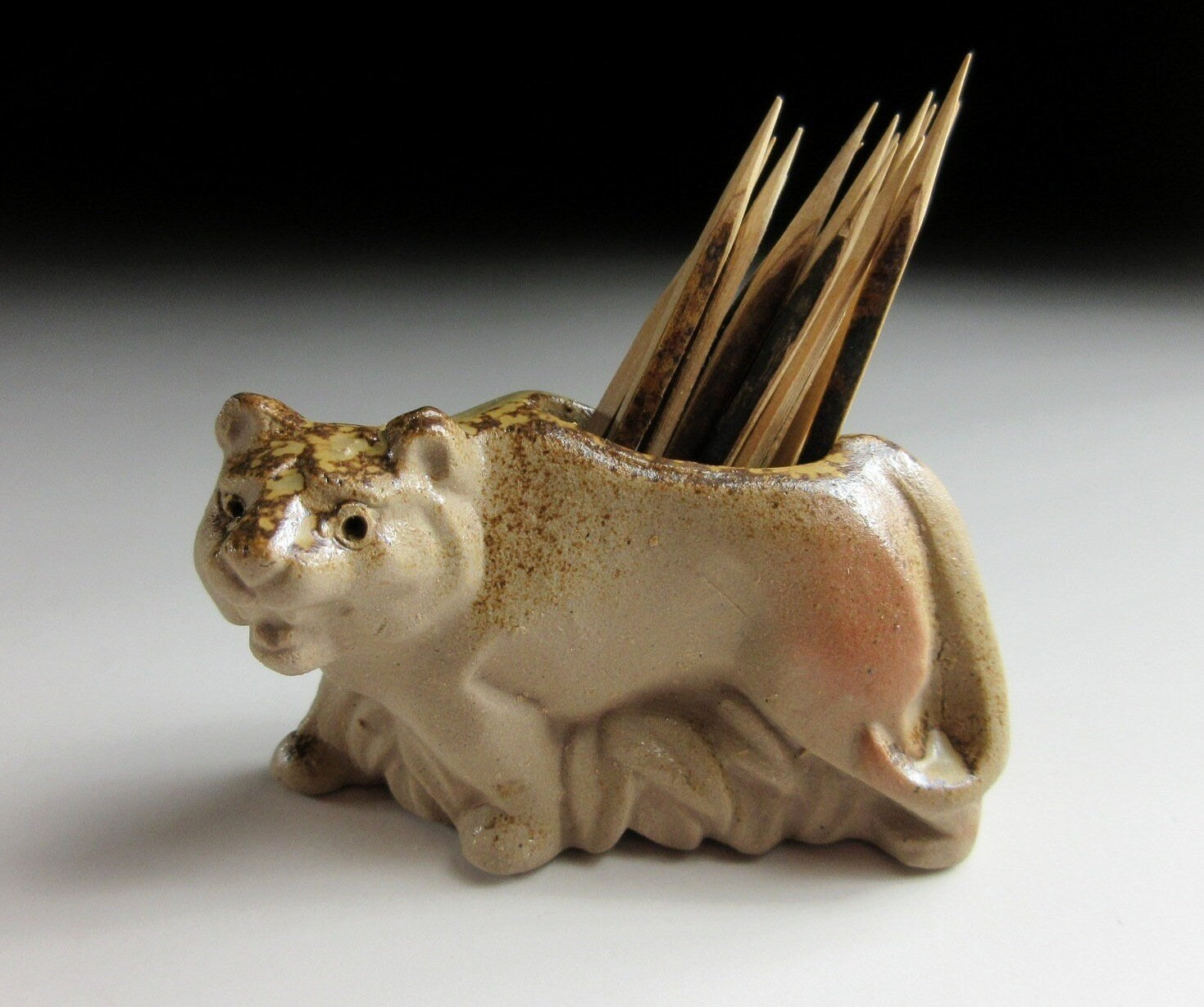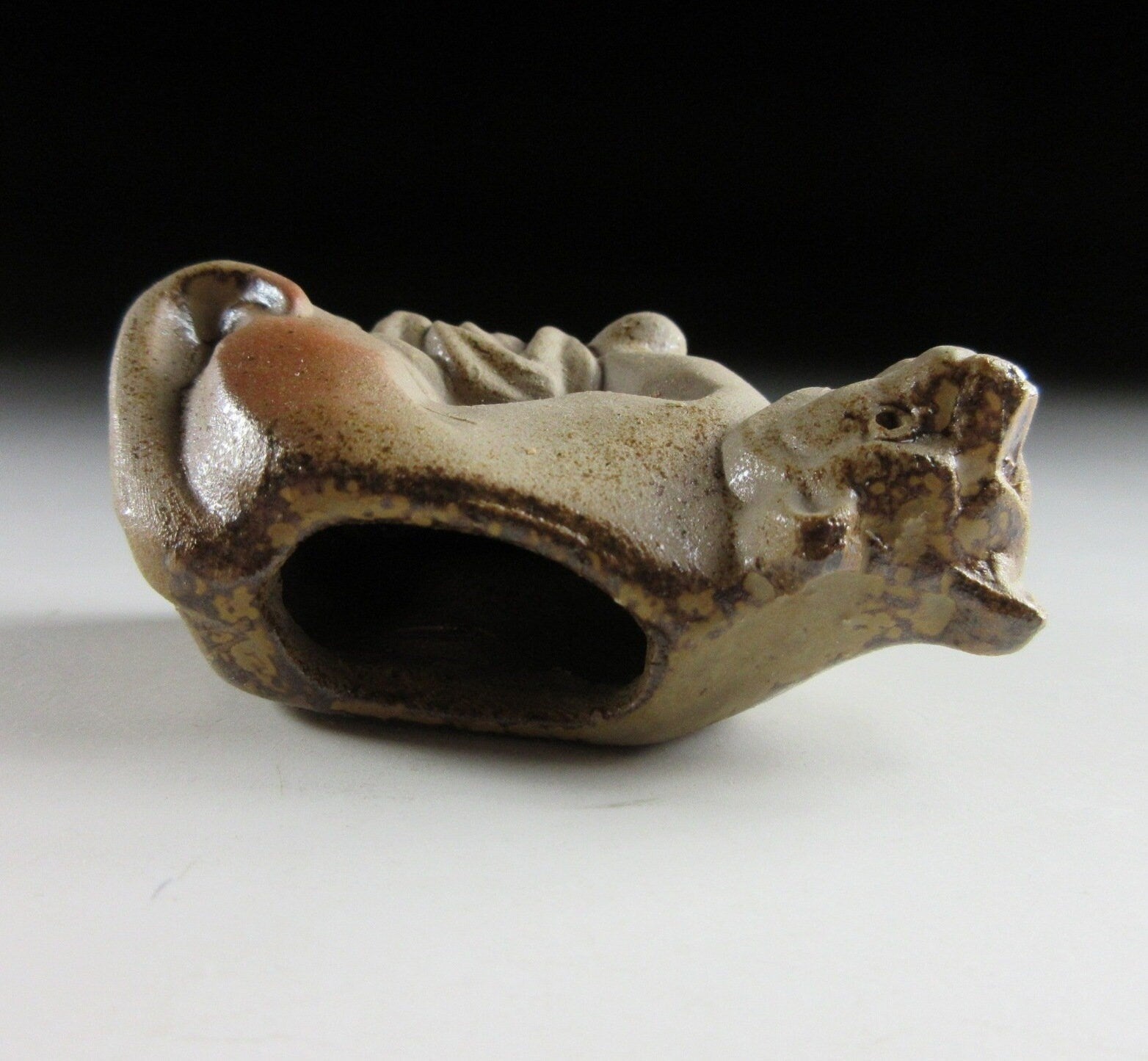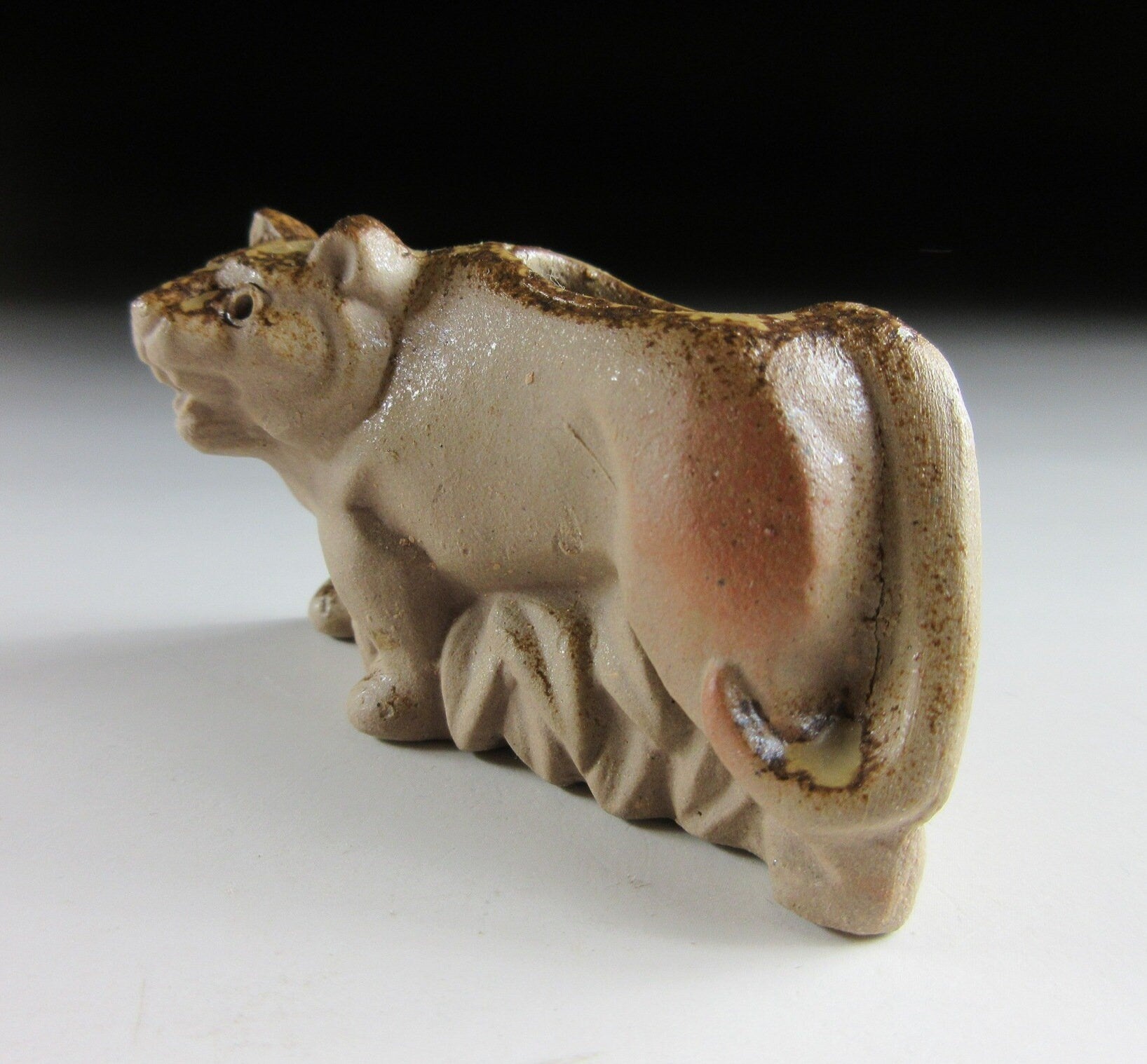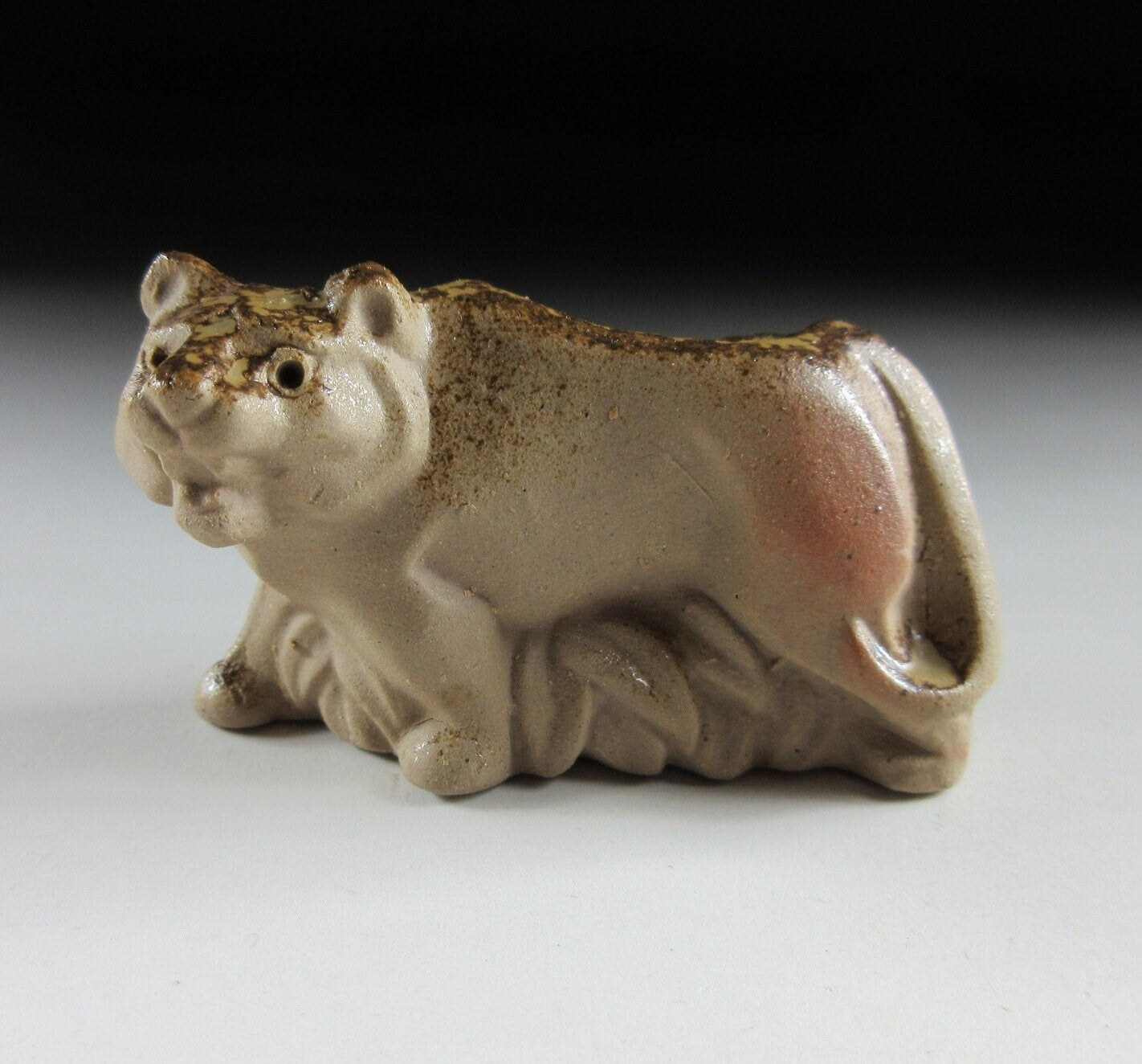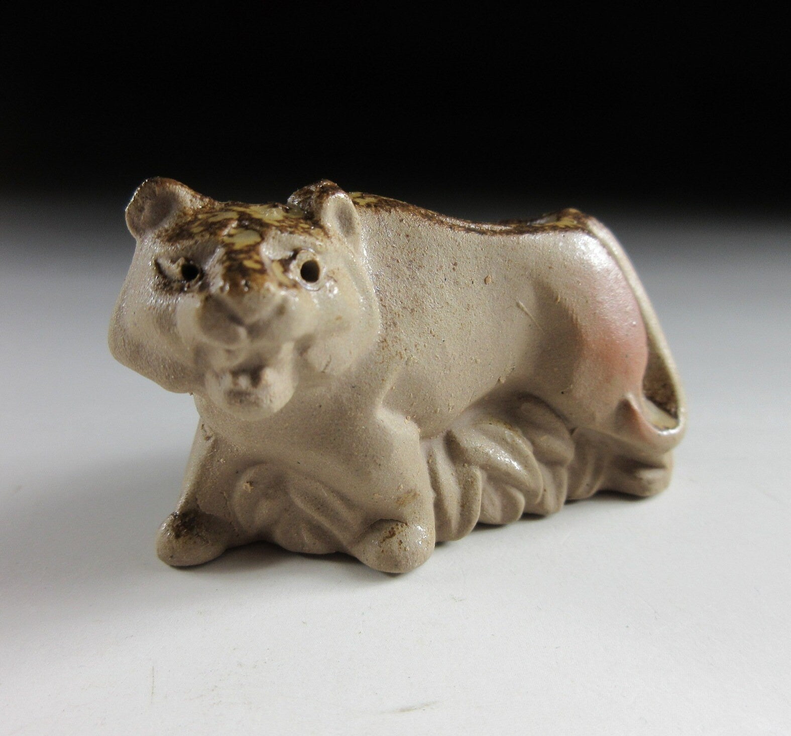 This listing is for a small wood-fired Bizen-ware Year of the Tiger toothpick holder made by Kataoka Seikan. It was made using a mould and features goma and hidasuki markings. Hidasuki refers to the process of wrapping wares with cords of straw, which are then fired off resulting brilliant shades of red. Toothpick holders like these are also ideal for growing air plants. The signature of the potter can be found on the bottom, sorry no box.