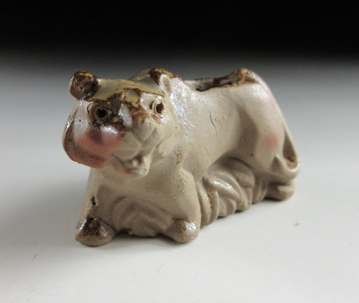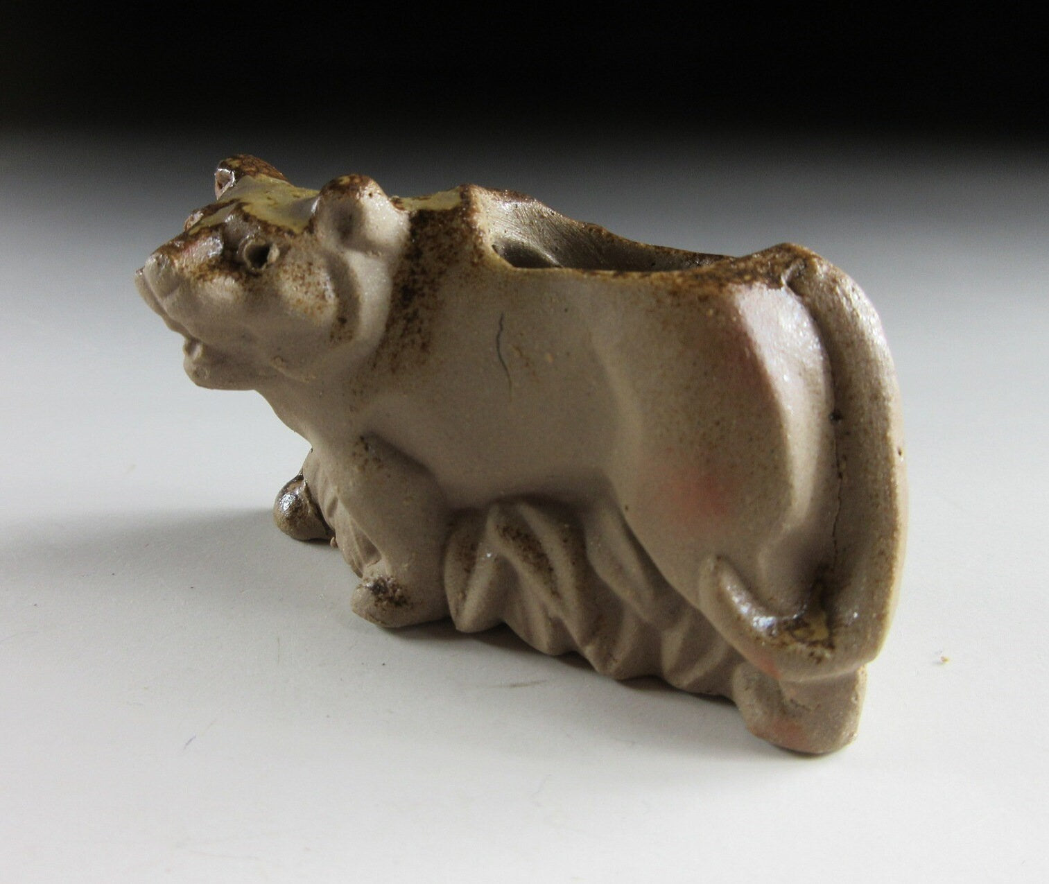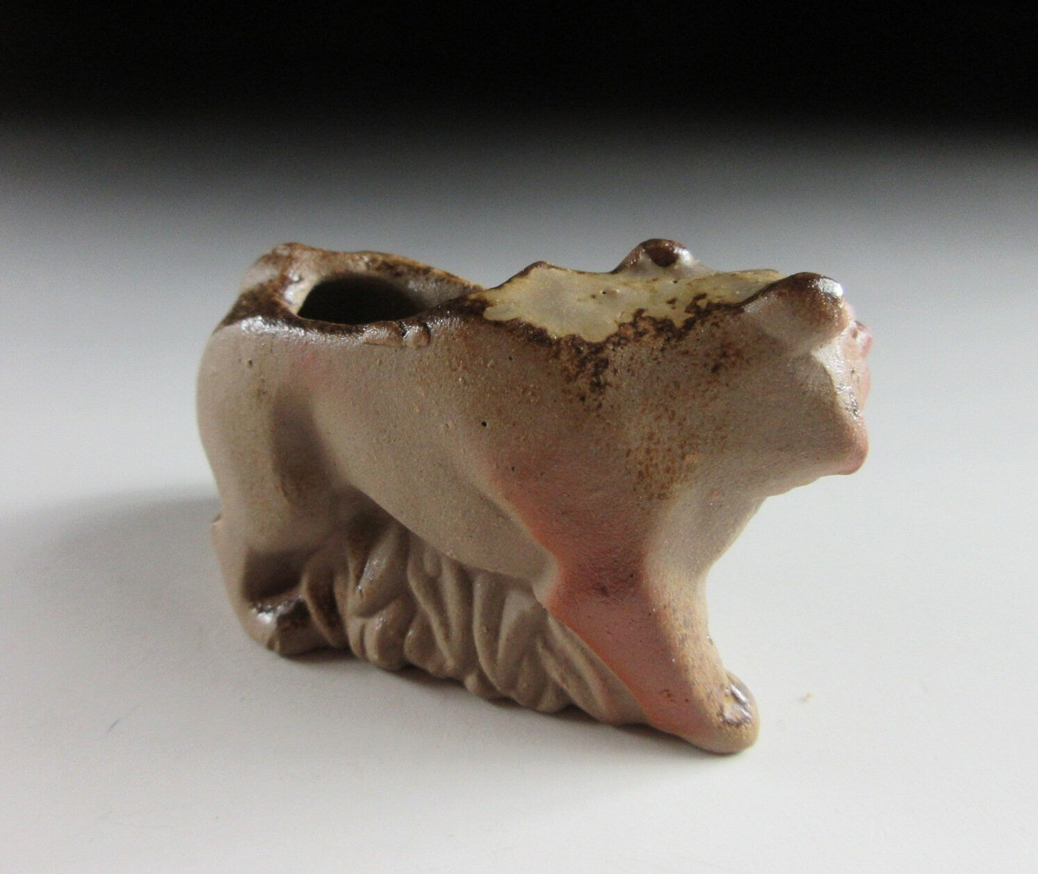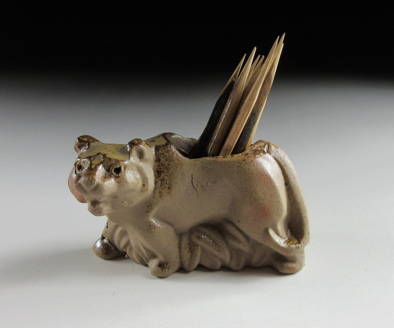 This listing is for a small wood-fired Bizen-ware Year of the Tiger toothpick holder made by Kataoka Seikan. It was made using a mould and features goma and hidasuki markings. Hidasuki refers to the process of wrapping wares with cords of straw, which are then fired off resulting brilliant shades of red. Toothpick holders like these are also ideal for growing air plants. The signature of the potter can be found on the bottom, sorry no box.