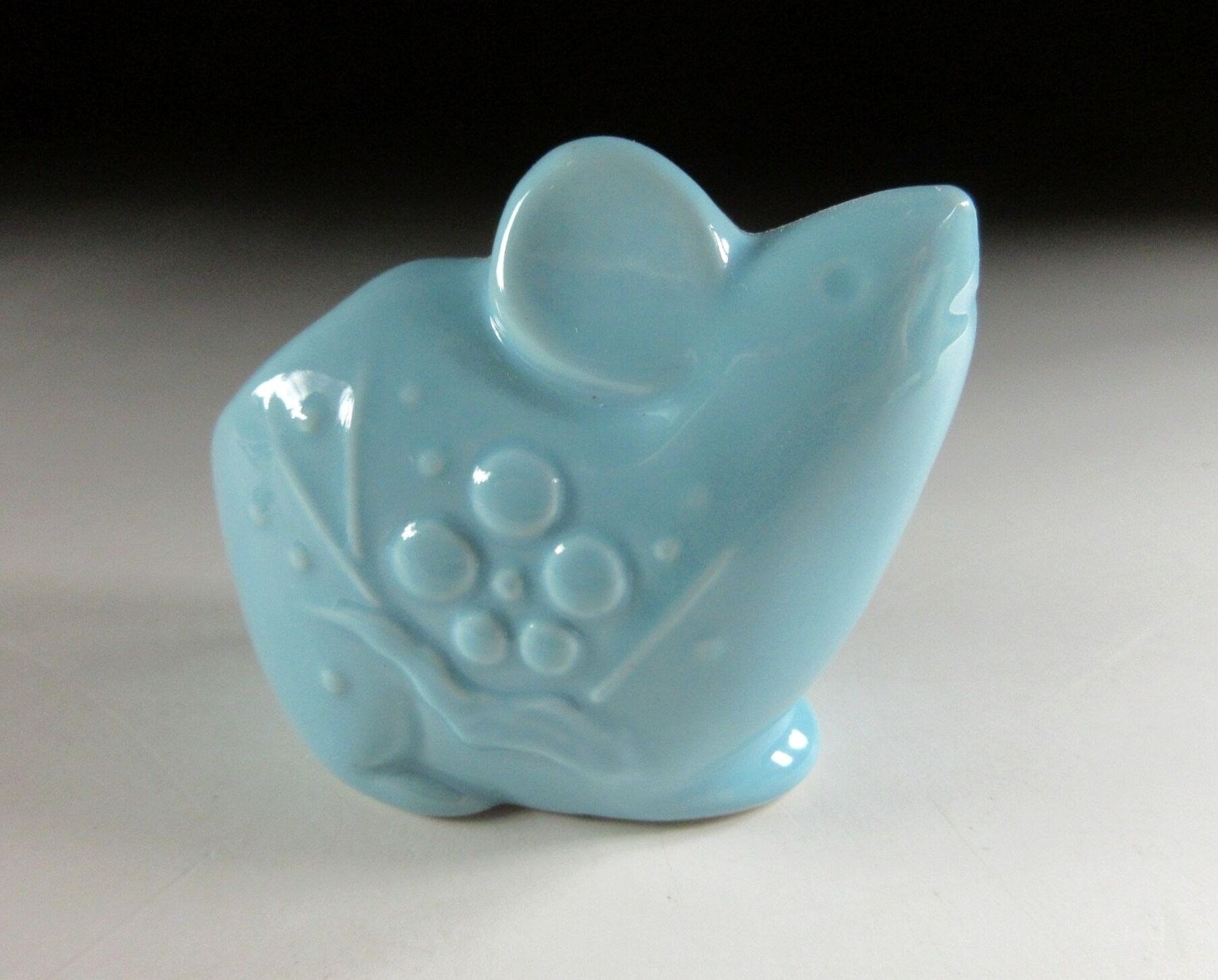 This listing is for a celadon glaze Year of the Rat toothpick holder. It was made using a press mould and glazed a transparent blue colour, and it features a pattern of ume blossoms. Toothpick holders like these are also ideal for growing air plants.