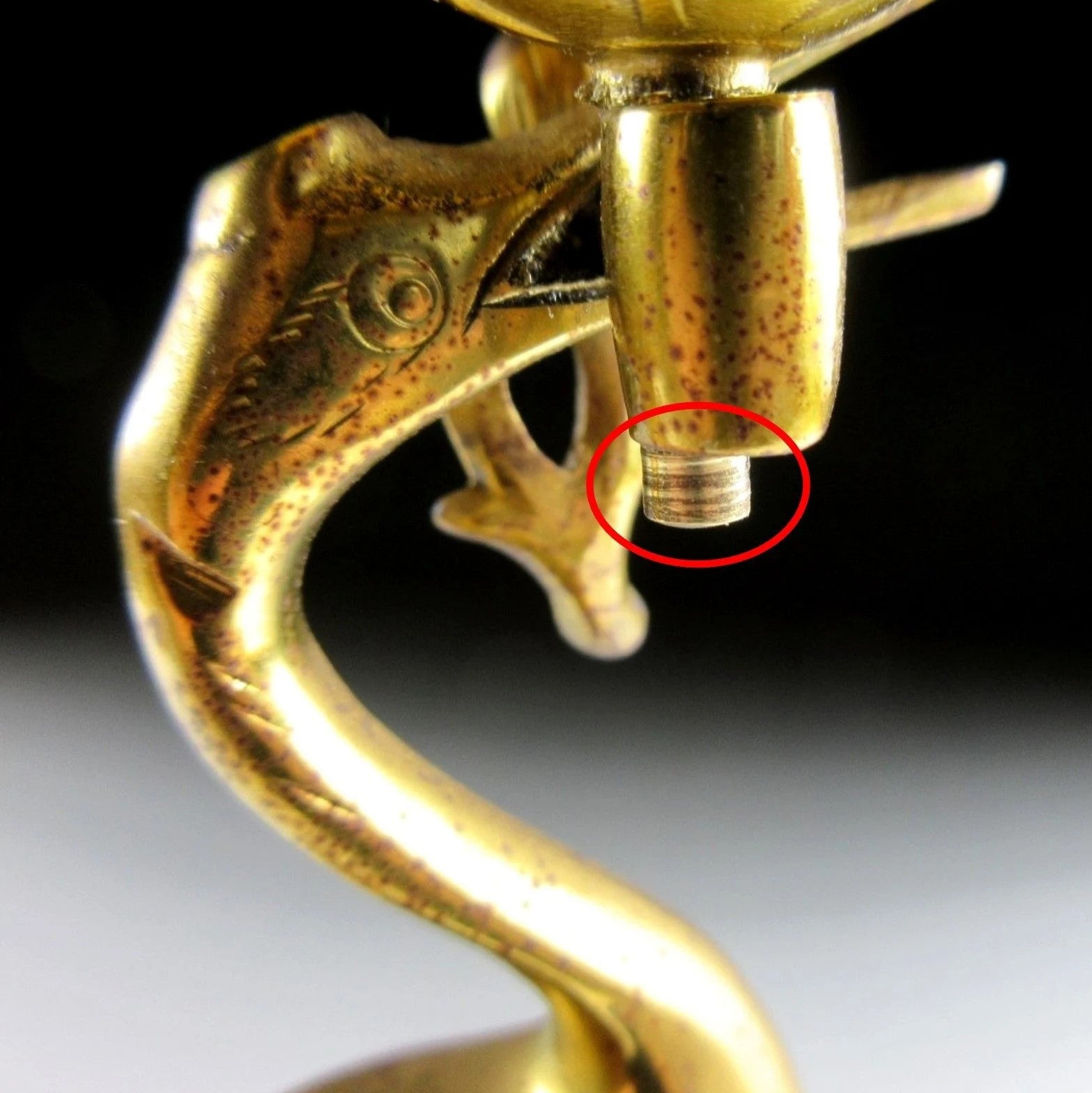 It’s in very good condition aside from some patina, and the candle spike seems a little longer than the part the supports it (please refer to the last photo).