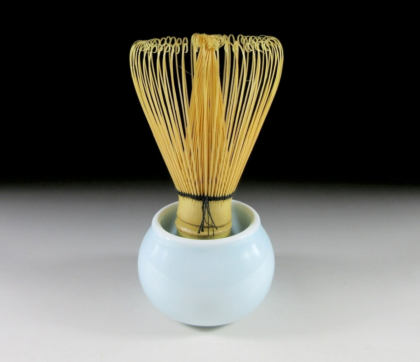 This listing is for a Mino-ware chasen-tate produced for Origami Japan. It is made of porcelain slip and coated in celadon glaze. This particular item is a modern take on the traditional kusenaoshi, it can be used two ways. When placed upright it stores and maintains the shape of your tea whisk, and when placed upside down it acts as a stand for your chasen during tea practice. It comes with its original paper storage box. *PLEASE NOTE THAT THE TEA WHISK IS NOT INCLUDED IN THIS LISTING.