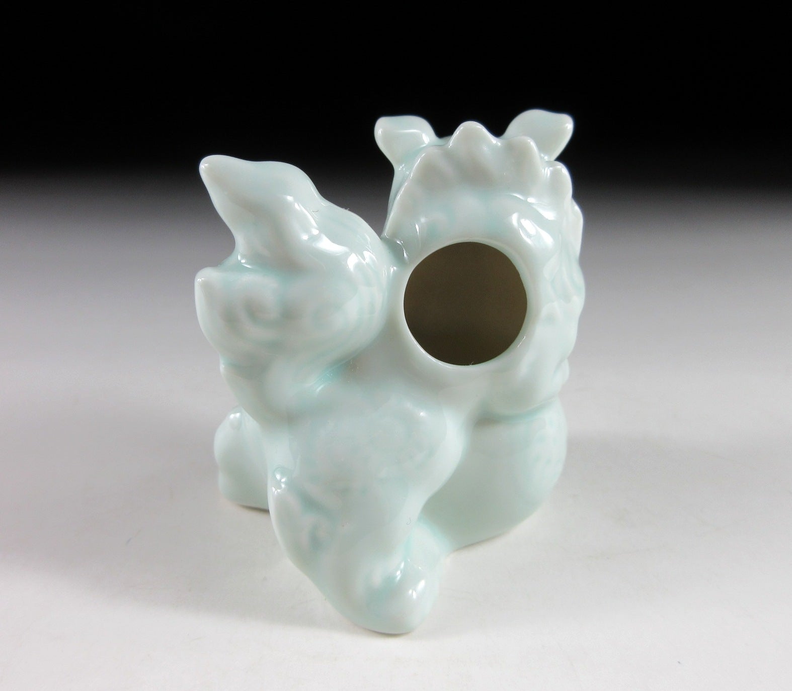 This listing is for a Kutani-ware celadon glaze foo lion toothpick holder. It was made using a press mould and glazed a very pale green-blue colour. Toothpick holders like these are also ideal for growing air plants.