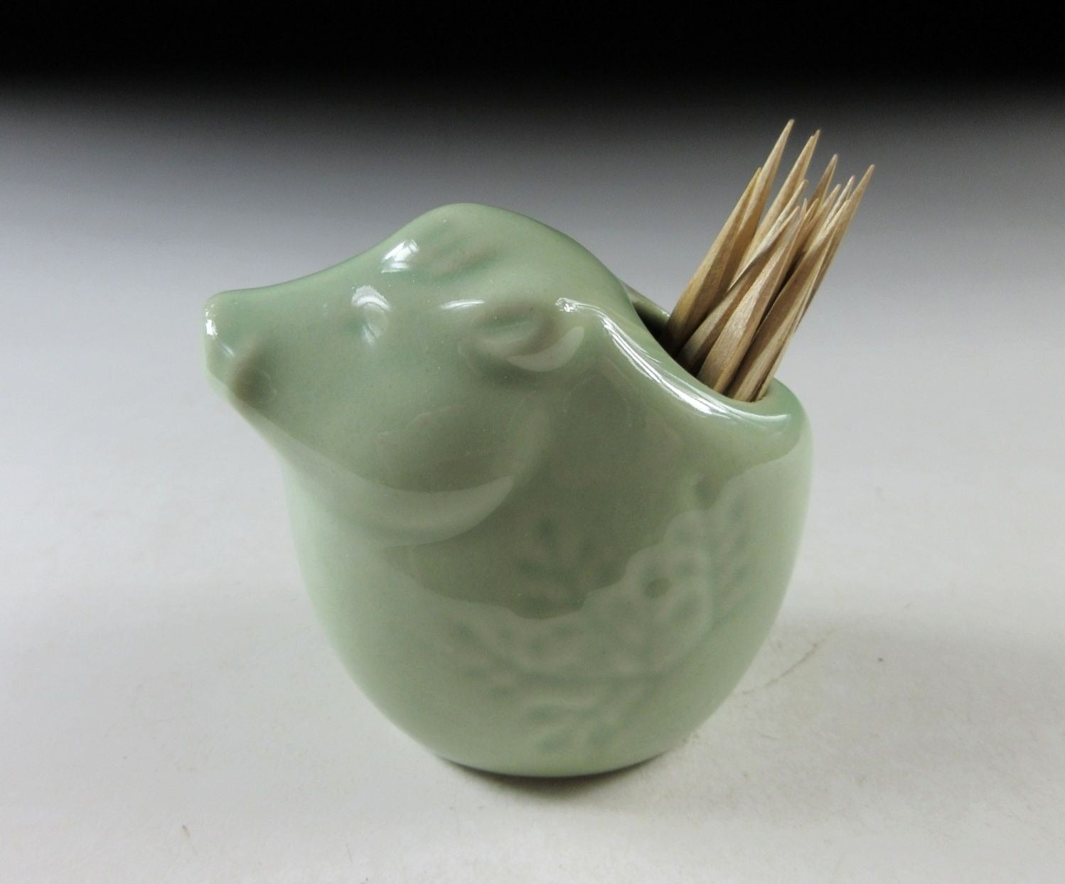 This listing is for a celadon glaze Year of the Boar toothpick holder. It was made using a press mould and glazed a very pale transparent green colour. Toothpick holders like these are also ideal for growing air plants. It comes with a paper storage box.