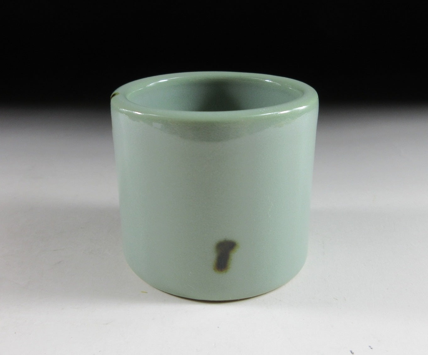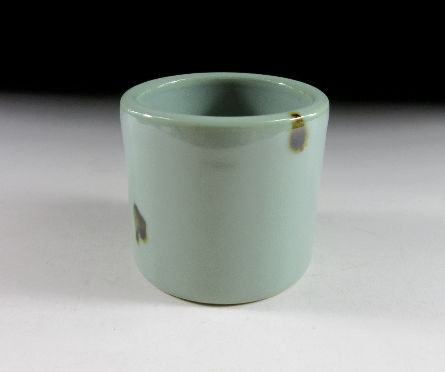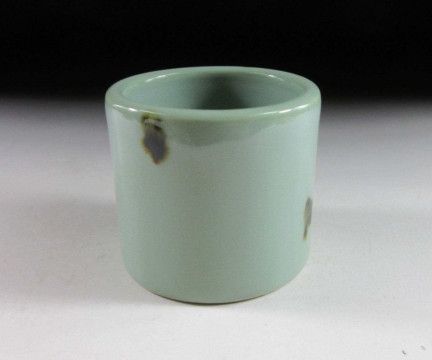 coated in pale blue celadon glaze with small dabs of iron oxide. It has a glossy finish and perfectly smooth surface. Please note that this piece is unsigned.