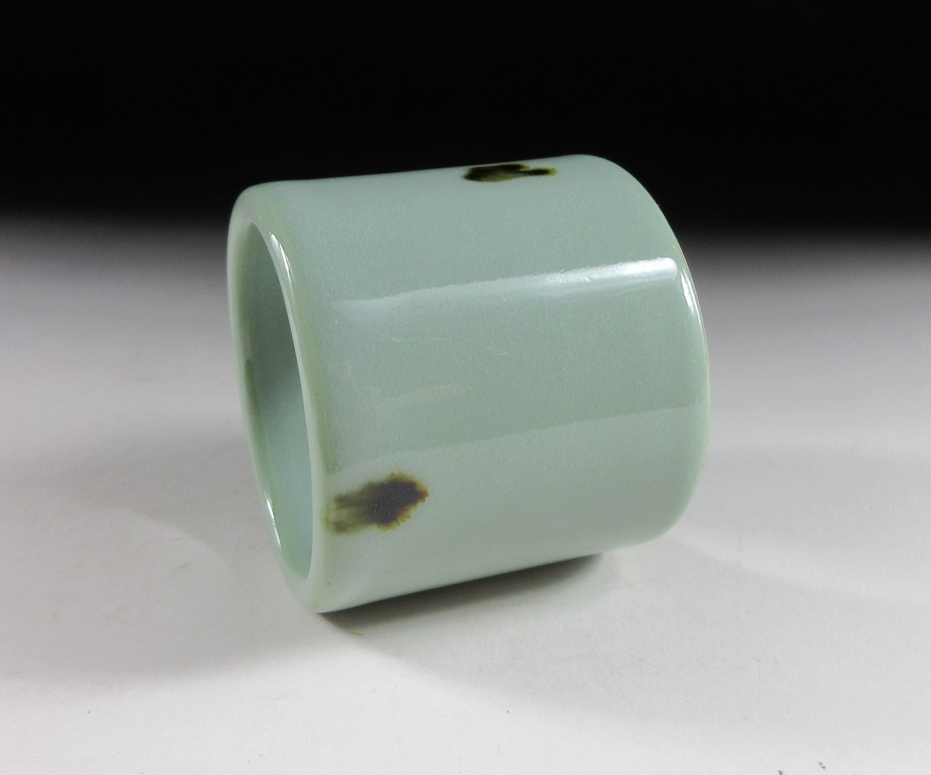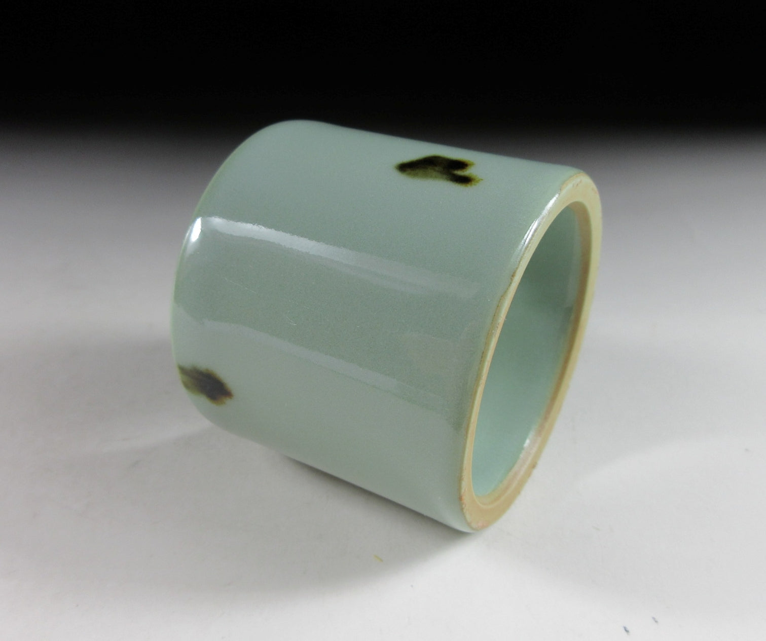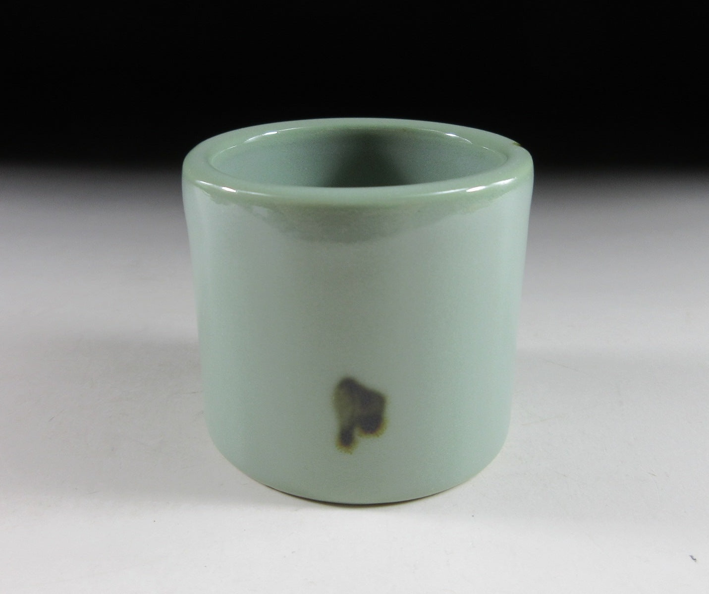 coated in pale blue celadon glaze with small dabs of iron oxide. It has a glossy finish and perfectly smooth surface. Please note that this piece is unsigned.