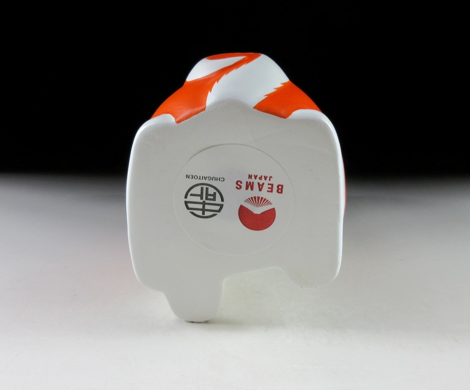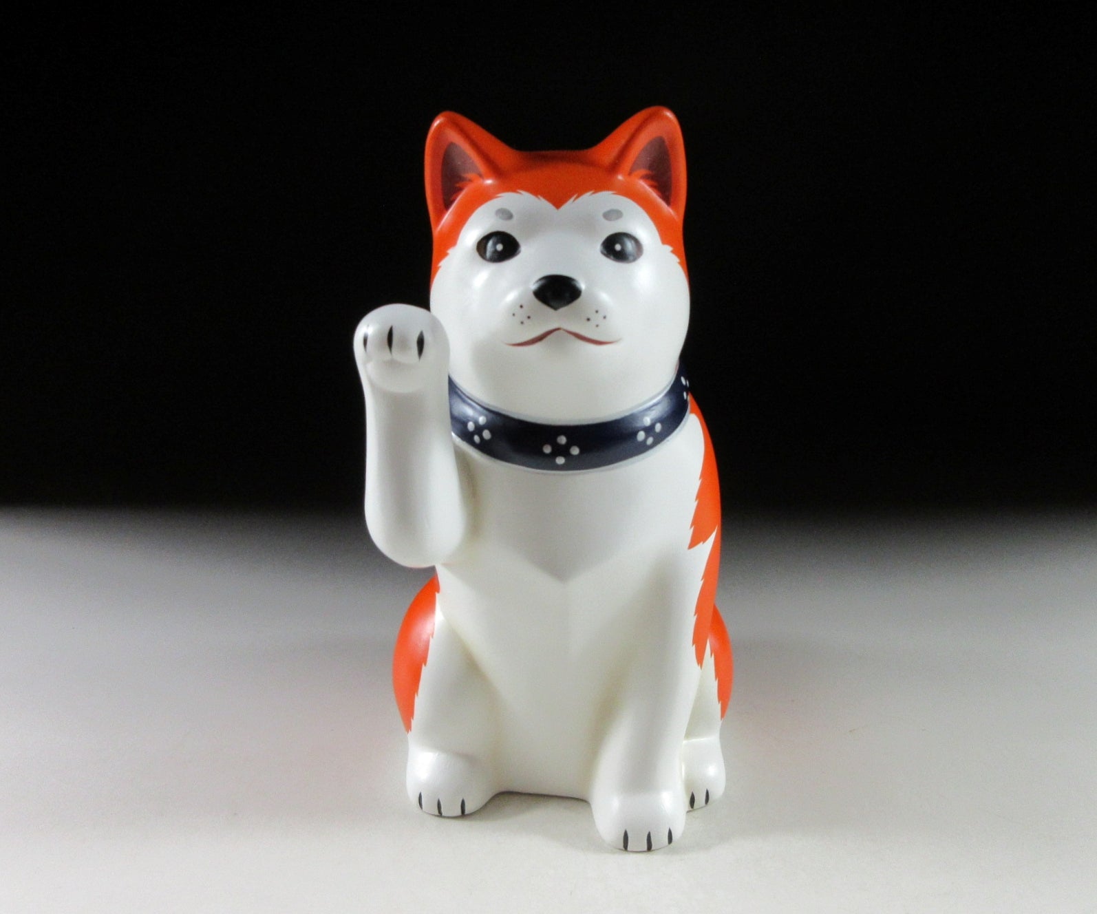 This listing is for a brand new maneki shiba made by Chugai Toen. A maneki neko is a beckoning cat that’s believed to bring good luck to its owner, thus making them a very common sight in stores and restaurants. The maneki in this listing is a shiba dog made from a mould and decorated with orange and white paint, and it has a blue collar tied around its neck. This particular maneki has his right paw raised and was made in collaboration with Beams Japan. Beams launched a special project where they worked with local artisans across Japan to produce traditional items in new and unusual colours. This piece also comes with its original paper storage box.