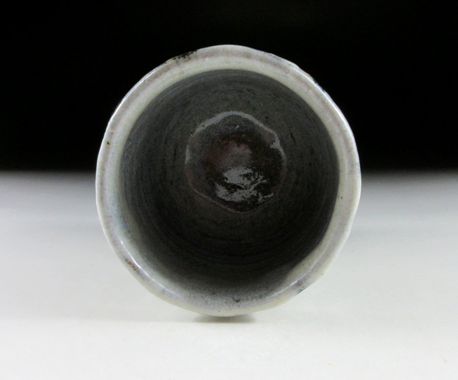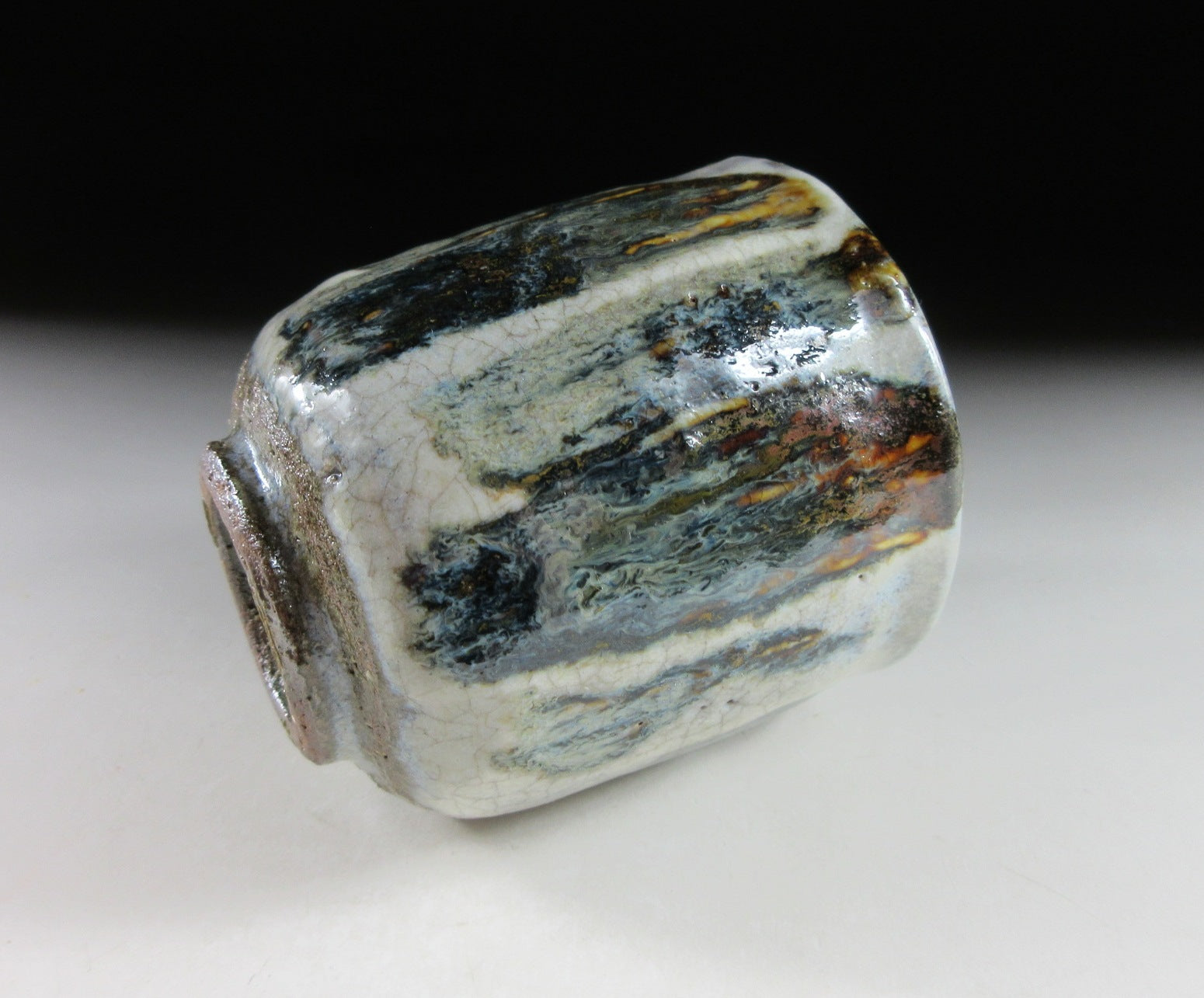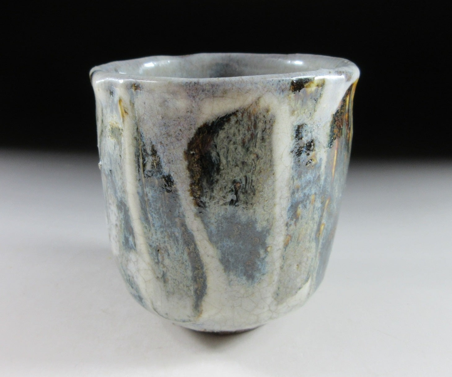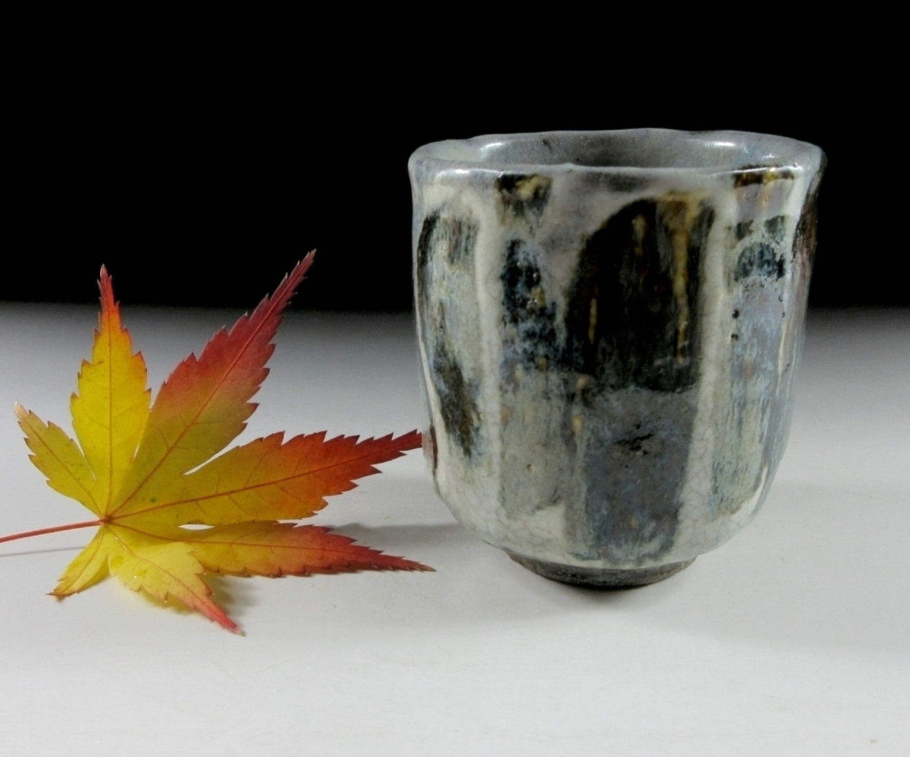 This listing is for a Mashiko-ware yunomi tea cup made around 10-20 years ago by Daisei Gama. It is wheel-thrown and features white rice husk glaze over black guro glaze. This piece is made of high-fired stoneware and is suitable for daily use. Please note that Daisei Gama pieces are unsigned, and sorry no box for this one.
