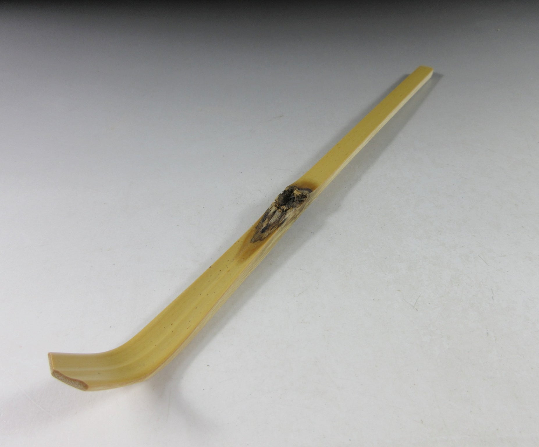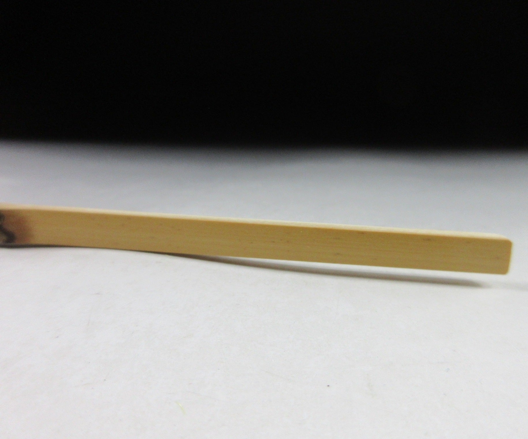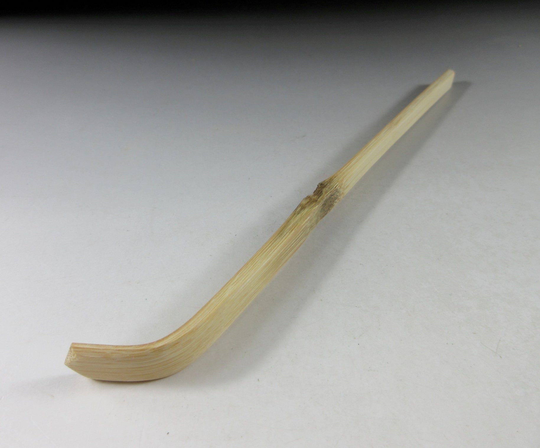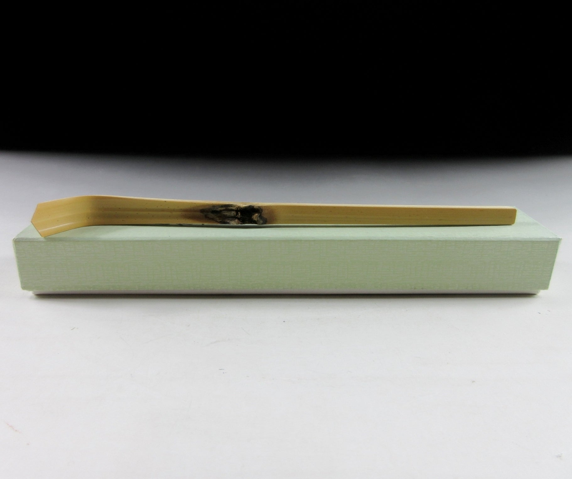 This listing is for a white bamboo ‘Ennosai utsushi’ chashaku. This piece is inspired by the tea scoops made by Ennosai Soshitsu, the 13th head of the Urasenke School of tea. Replicas, or ‘utsushi’ as they’re known, are reinterpretations of art objects from the past. The scoop features a slightly grooved design and includes the natural characteristics of the bamboo as an artistic element. It comes with its original paper storage box with the characters for ‘Ennosai’ printed on the lid. *PLEASE NOTE THAT THE TEA BOWL IS NOT INCLUDED.