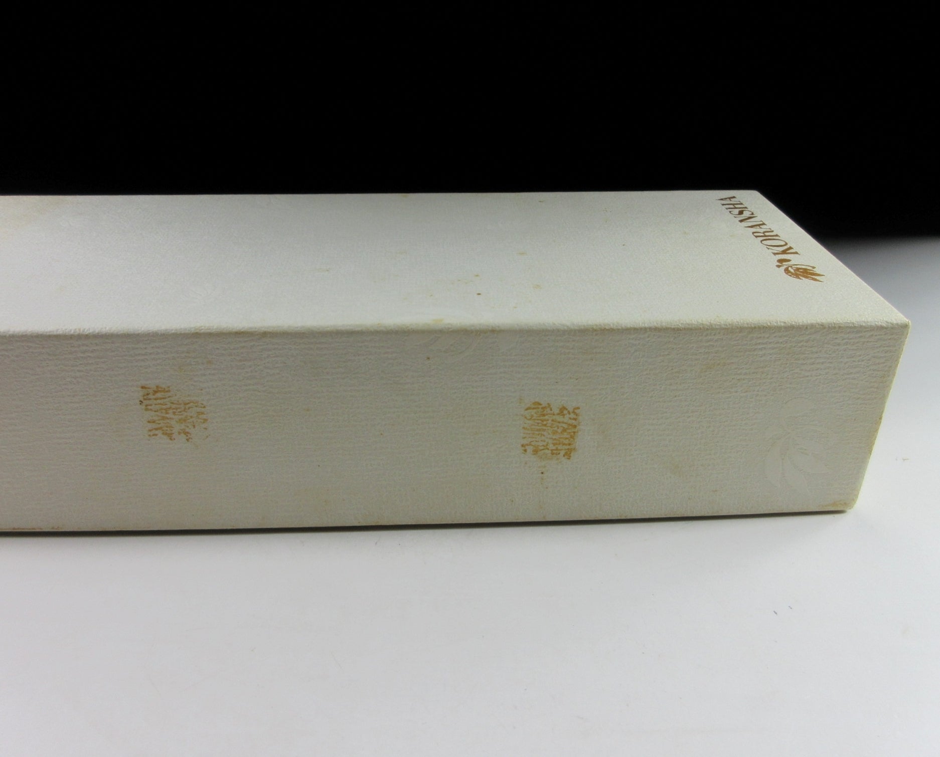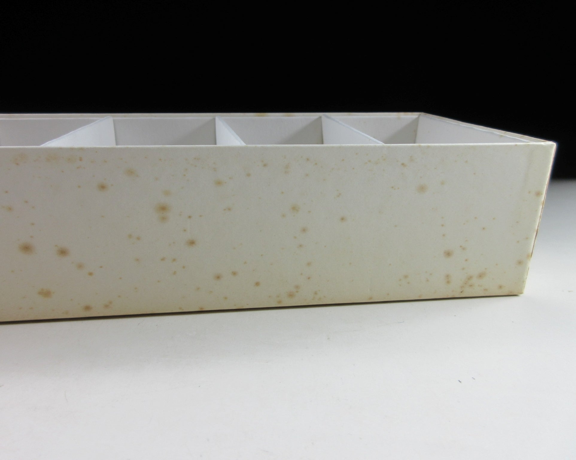 The entire set is in very good condition with no chips or cracks, however the paper box is discoloured and spotty inside and out, particularly on the interior. The lid also has tape marks on one side.