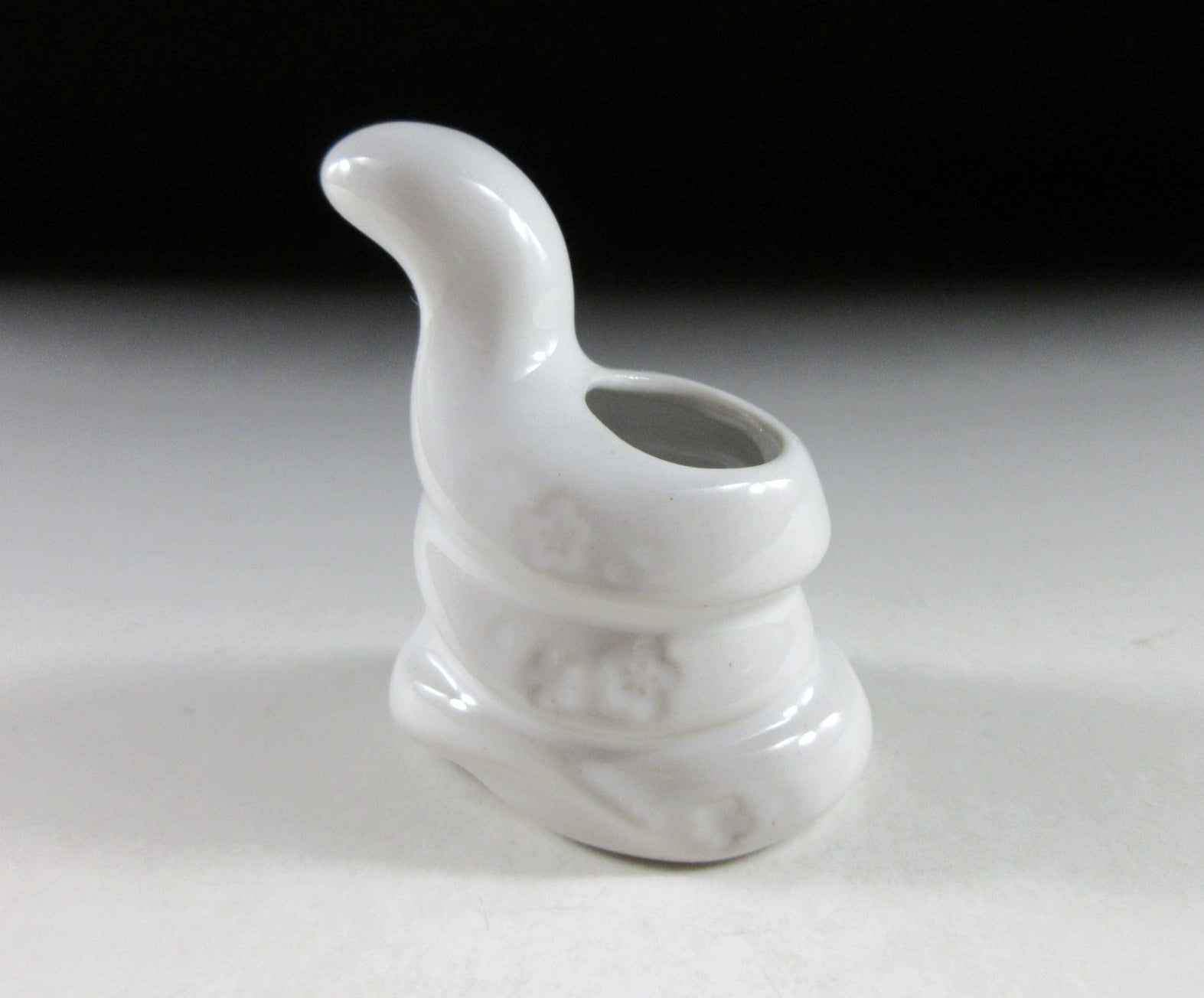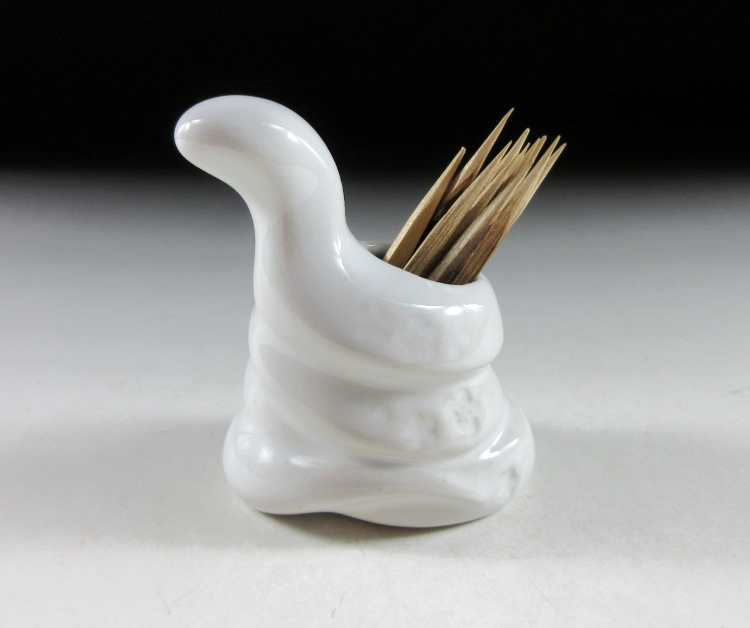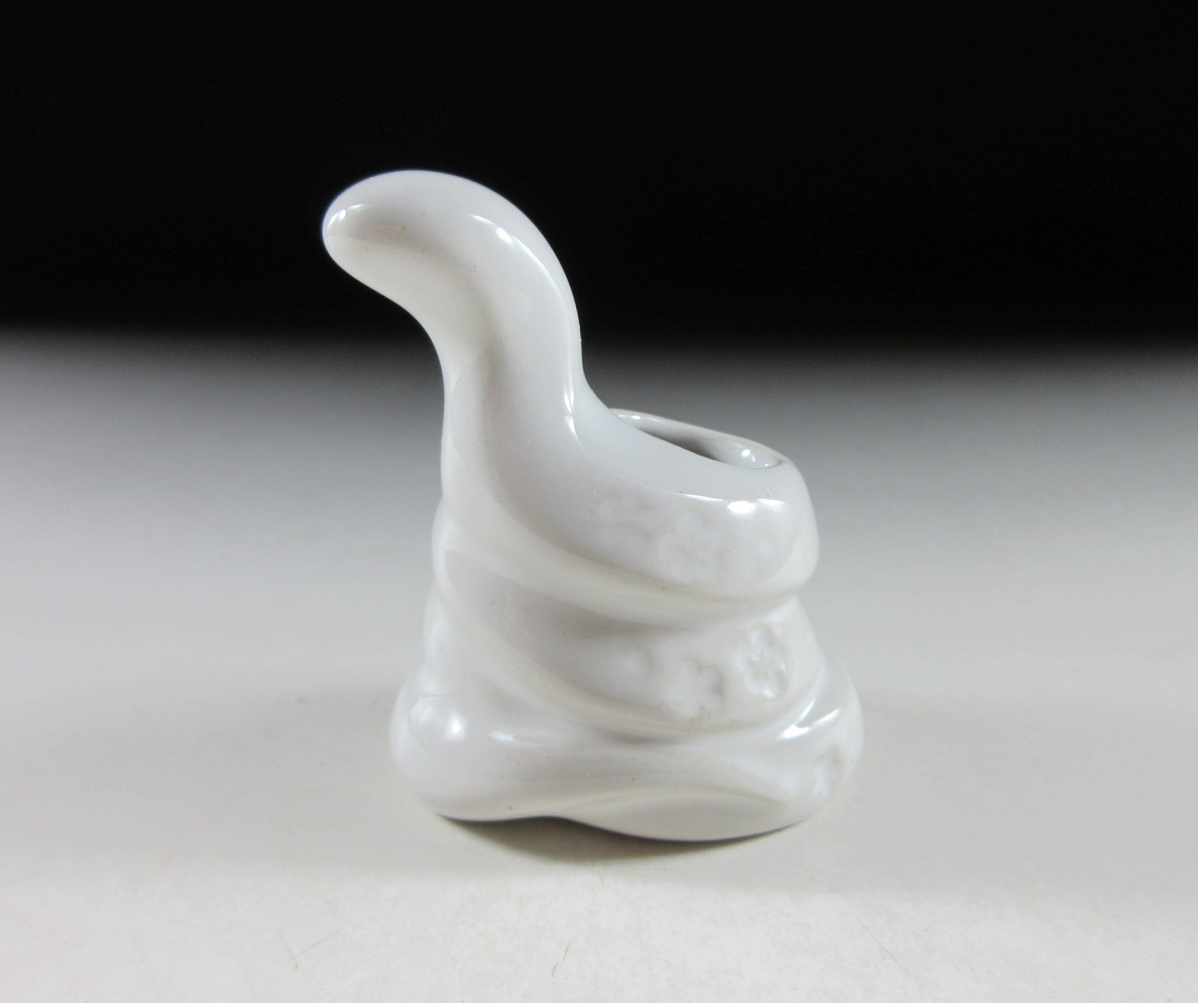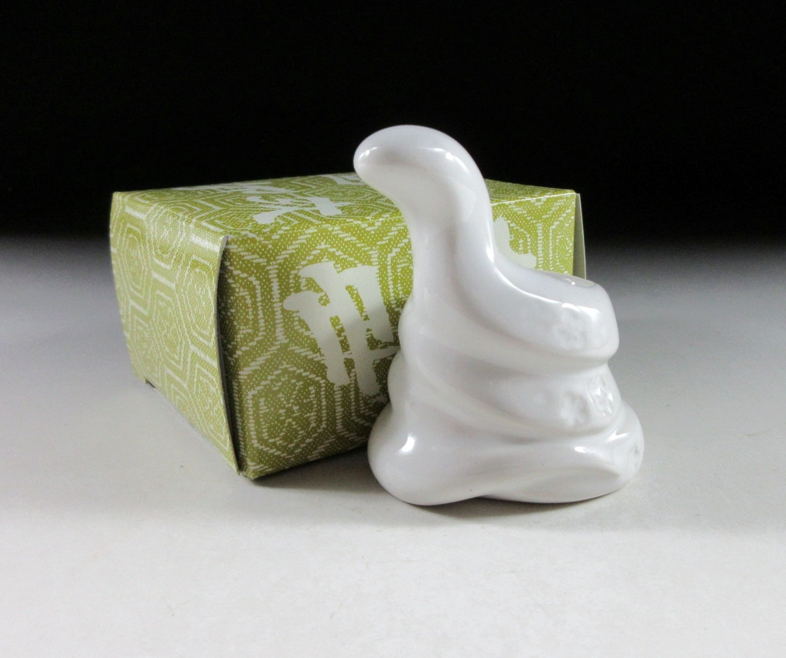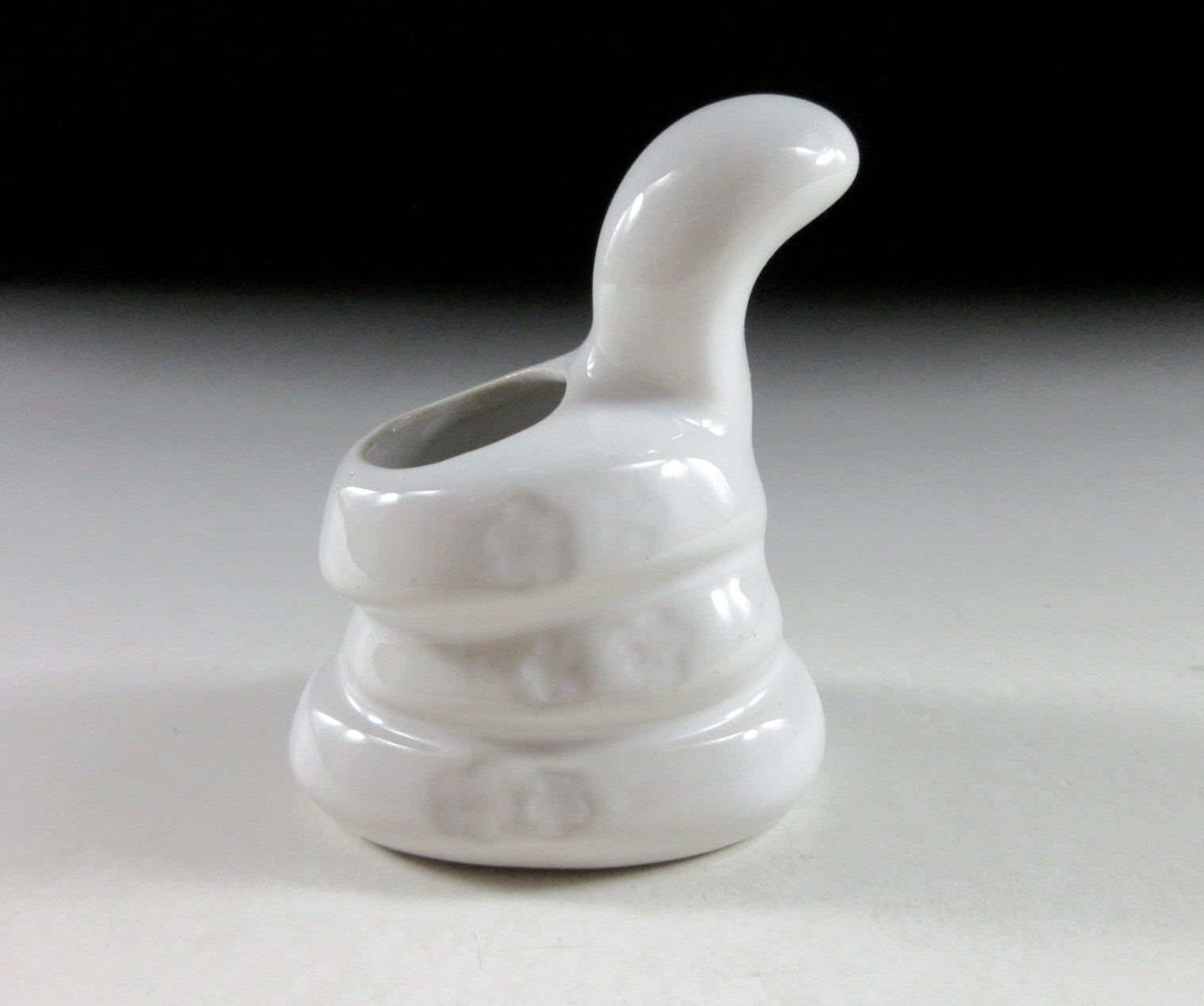 This listing is for a hakuji glaze Year of the Snake toothpick holder. It was made using a press mould and features glossy white glaze. The snake is also decorated with little ume blossoms imprinted into the surface. Zodiac animal toothpick holders are very popular around New Year, and they’re also ideal for growing air plants.