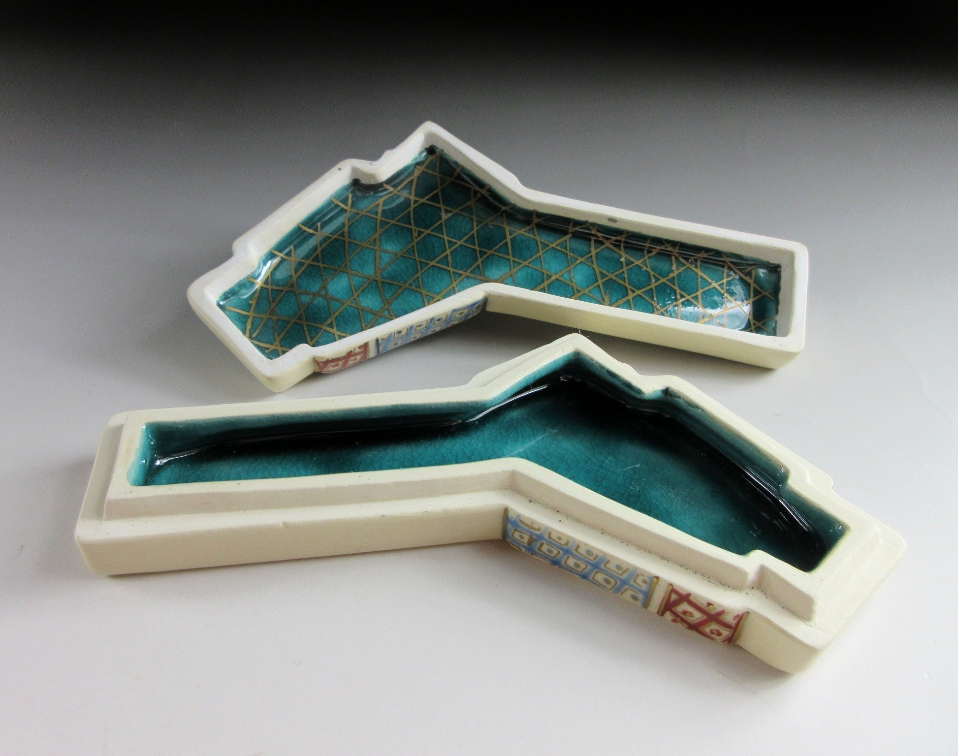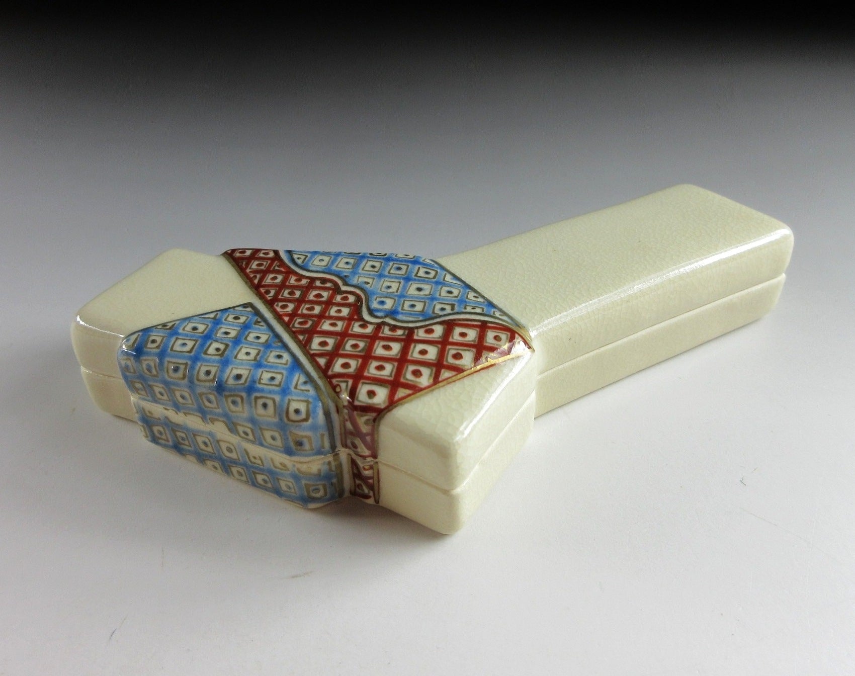 Kyo-ware originated in the 17th century in Kyoto and features overglaze enamel pigments on a porcelain base. The porcelain base acts as white canvas, allowing for beautiful and superior quality designs to be painted. Kyo-ware artisans traditionally produced chawan and utensils for the tea ceremony, however contemporary potters specialize in tableware, tea ceremony items, incense holders, and okimono. Kyo-ware was designated as a traditional craft in 1977.