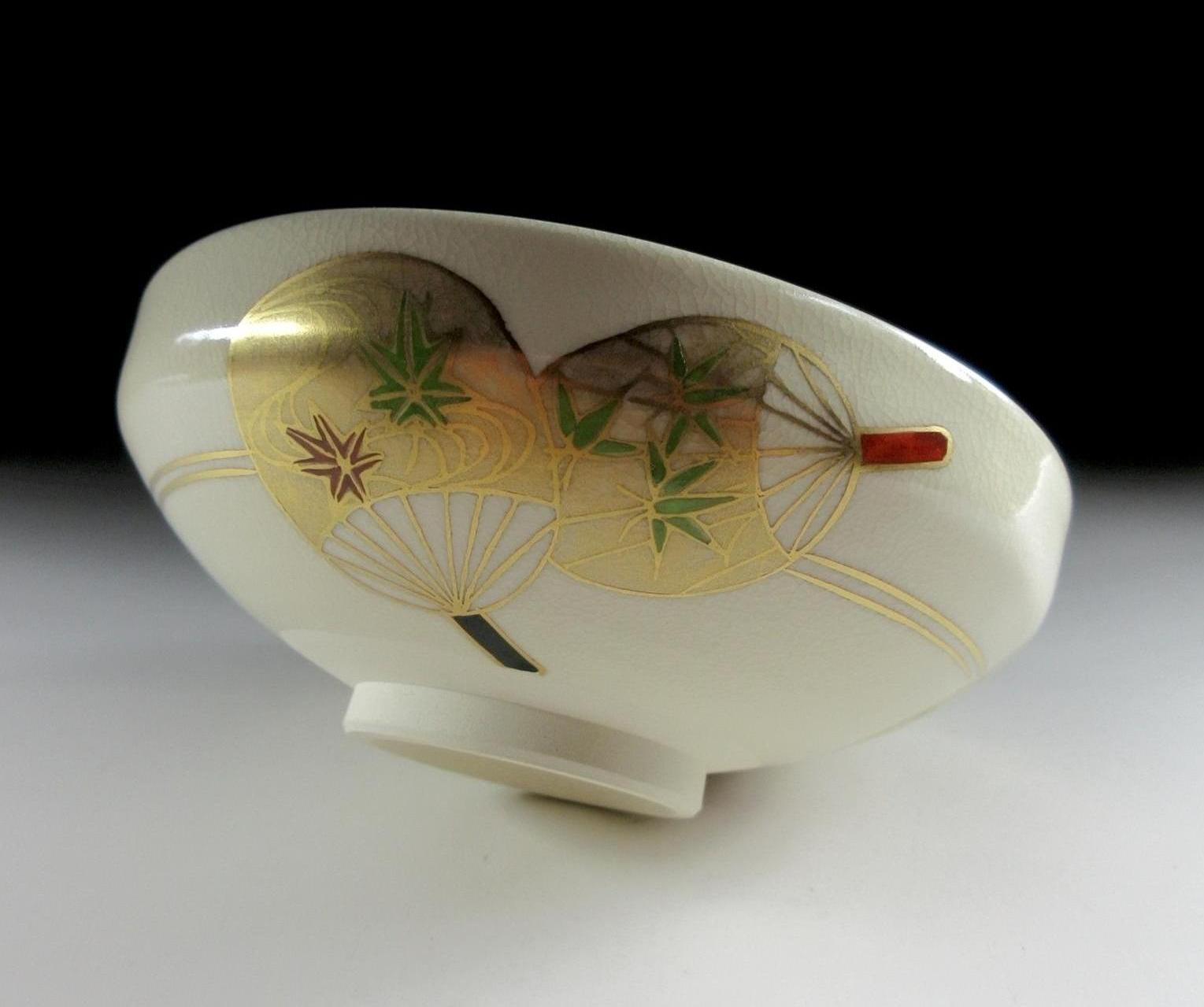 Kyo-ware originated in the 17th century in Kyoto and features overglaze enamel pigments on a porcelain base. The porcelain base acts as white canvas, allowing for beautiful and superior quality designs to be painted. Kyo-ware artisans traditionally produced chawan and utensils for the tea ceremony, however contemporary potters specialize in tableware, tea ceremony items, incense holders, and okimono. Kyo-ware was designated as a traditional craft in 1977.
