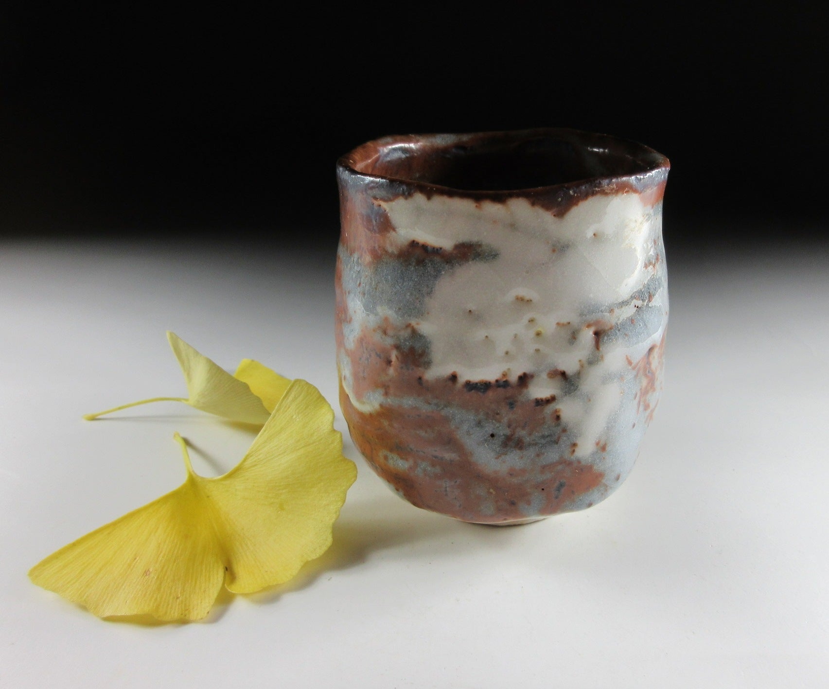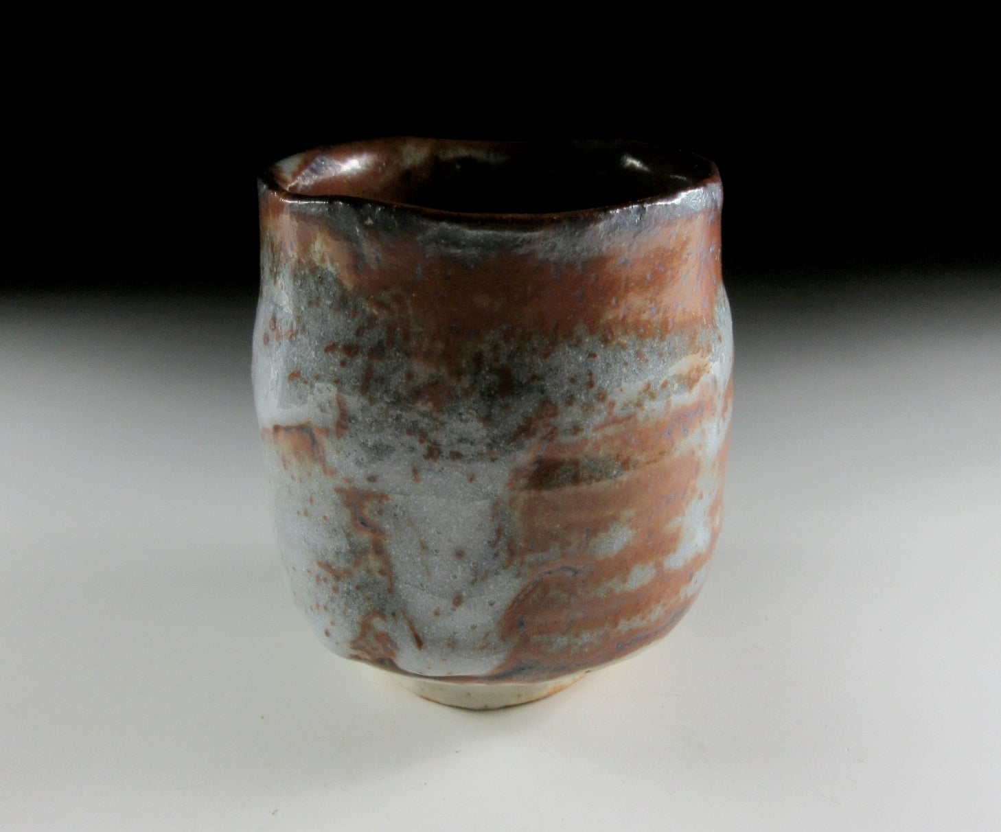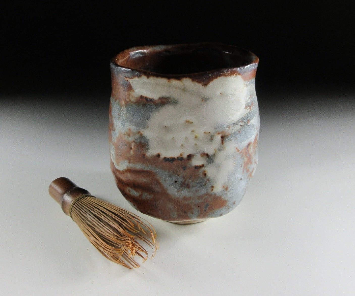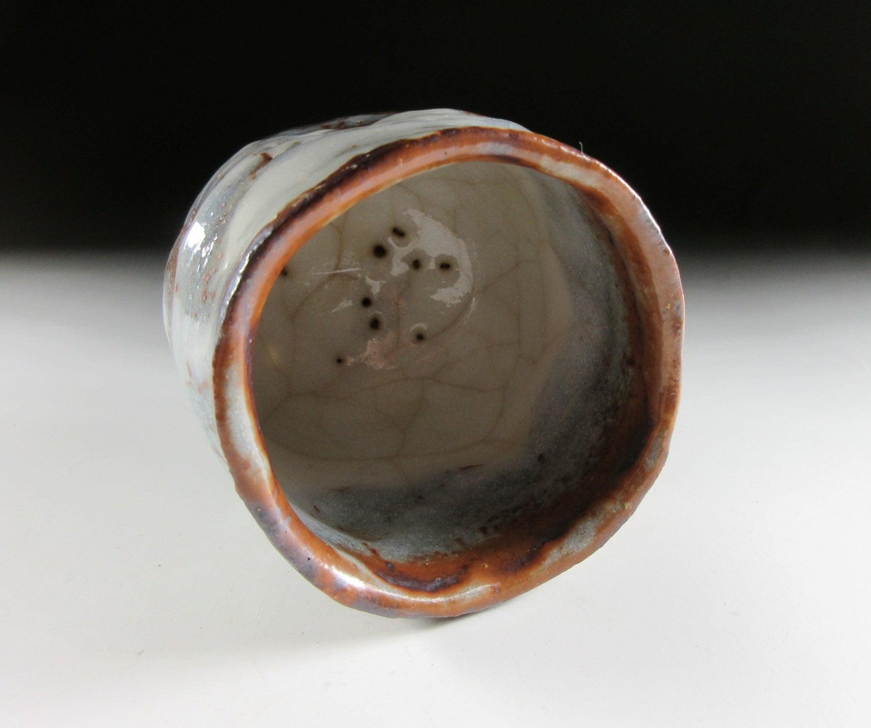 This listing is for a nezumi Shino yunomi made around 20-30 years ago by Hayashi Sozan III. It is wheel-thrown and coated in thick feldspar glaze, and it also features patches of red and grey. It’s suitable for daily use and comes with its original signed wooden storage box. I assume it was signed on the bottom but the signature has been covered by glaze. *PLEASE NOTE THAT THE CHASEN TEA WHISK IS NOT INCLUDED.