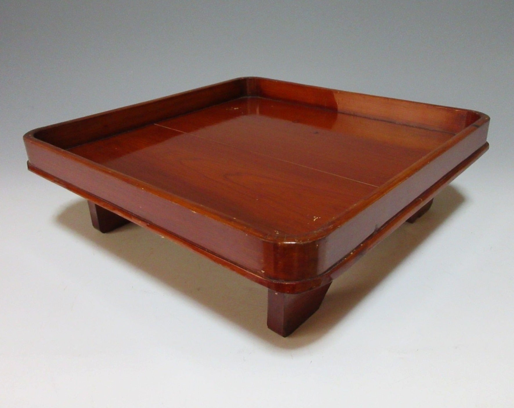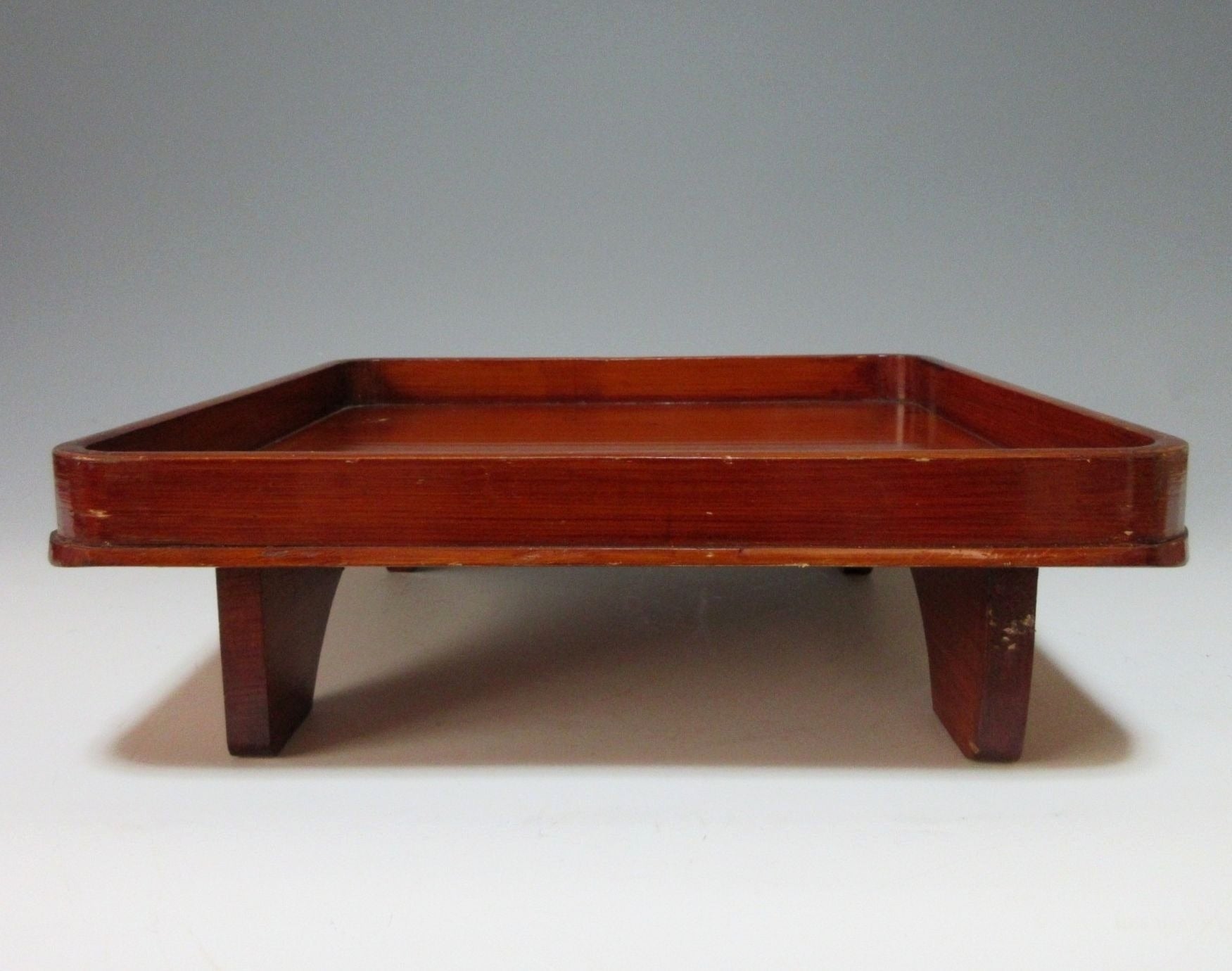 This listing is for a Hida Shunkei-nuri lacquerware tray made around 60-70 years ago. It is made of wood and coated in caramel coloured lacquer. Trays raised on legs are called o-zen, traditionally they were small dining trays or tables. The height of o-zen depended on the rank or importance of the person, and it conveyed respect. The tray in this listing would have been a simple dining tray and may have been used to serve guests.
