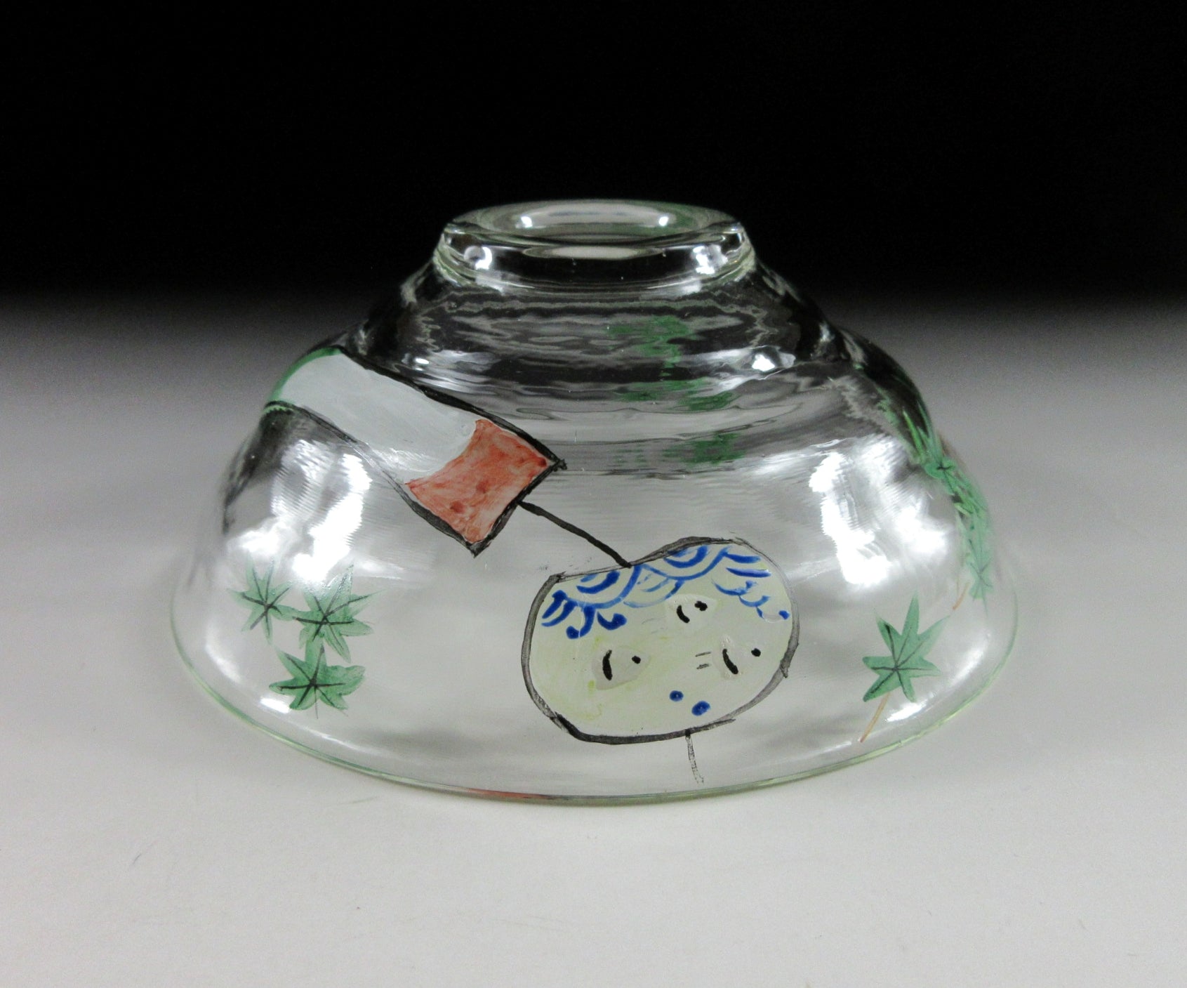 Hirohata Kunihiko (b.1960) is a glass artisan born and raised in Tokyo. In 1989 he graduated from a design college and studied glass art in Tokyo. In 1993 he opened a studio and mainly produces tableware and teaware. His glass chawan are usually decorated with seasonal designs, and he hand paints his designs without the use of stencils. **Fellow sellers, this information was researched by Kominka Zakka and CANNOT be used in your own listings.