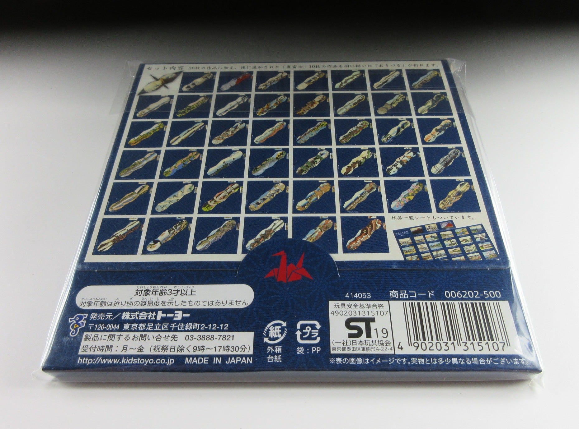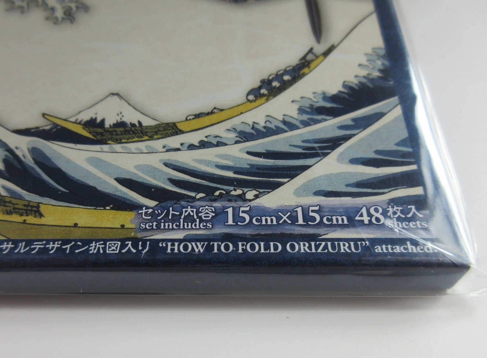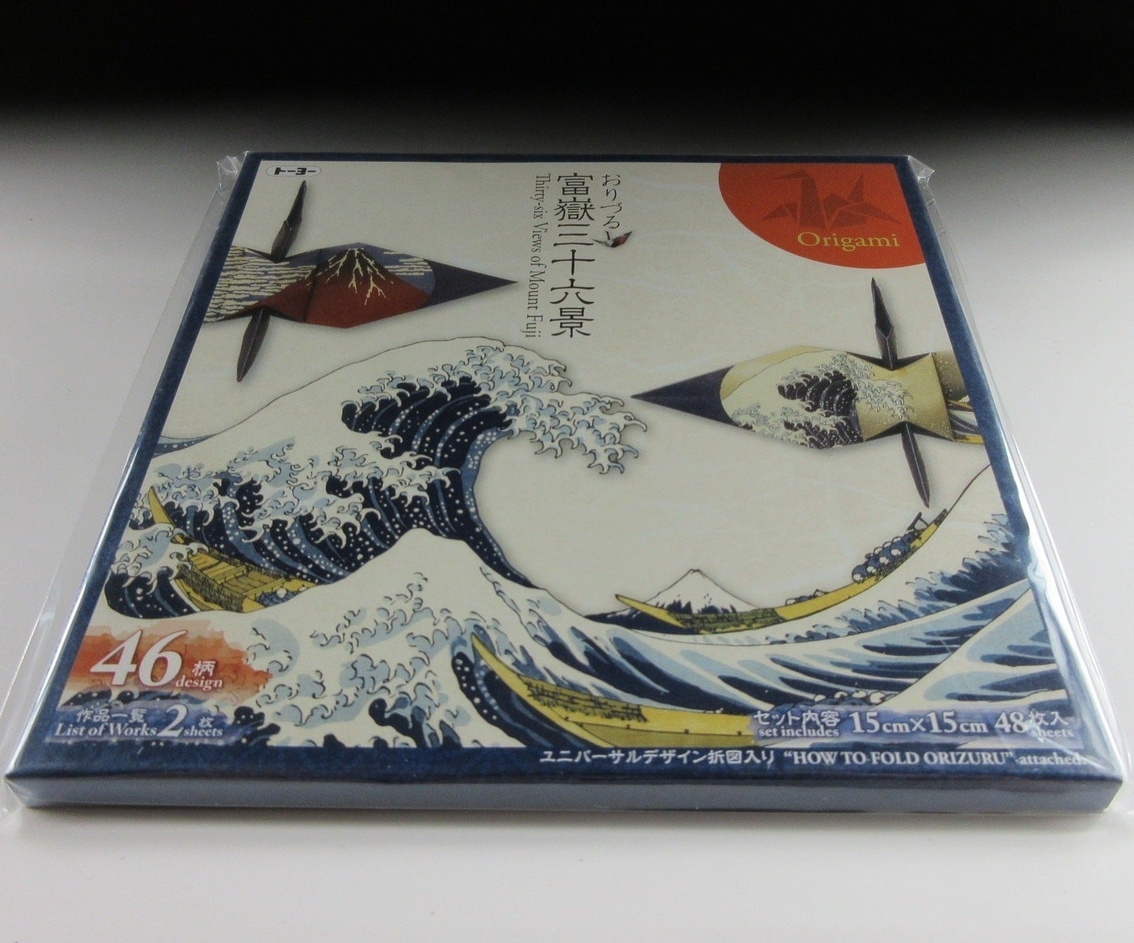 This listing is for a pack of origami paper made in Japan by Toyo Origami Co. The pack contains 48 sheets of origami paper, each sheet is 15cm (5.9”) x 15cm (5.9”). The set features Hokusai’s famous Thirty-Six Views of Mt. Fuji, plus illustrated Japanese language instructions for how to fold orizuru paper cranes. It’s possible to understand the instructions without knowing how to read Japanese.