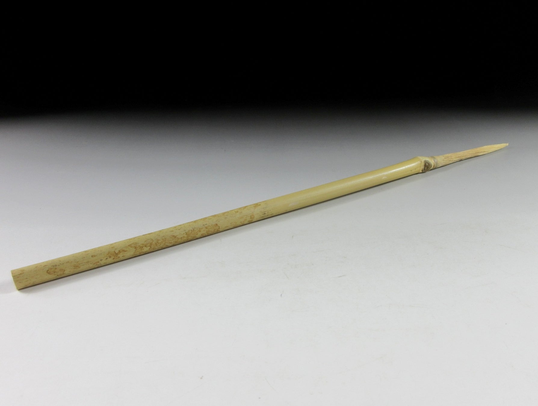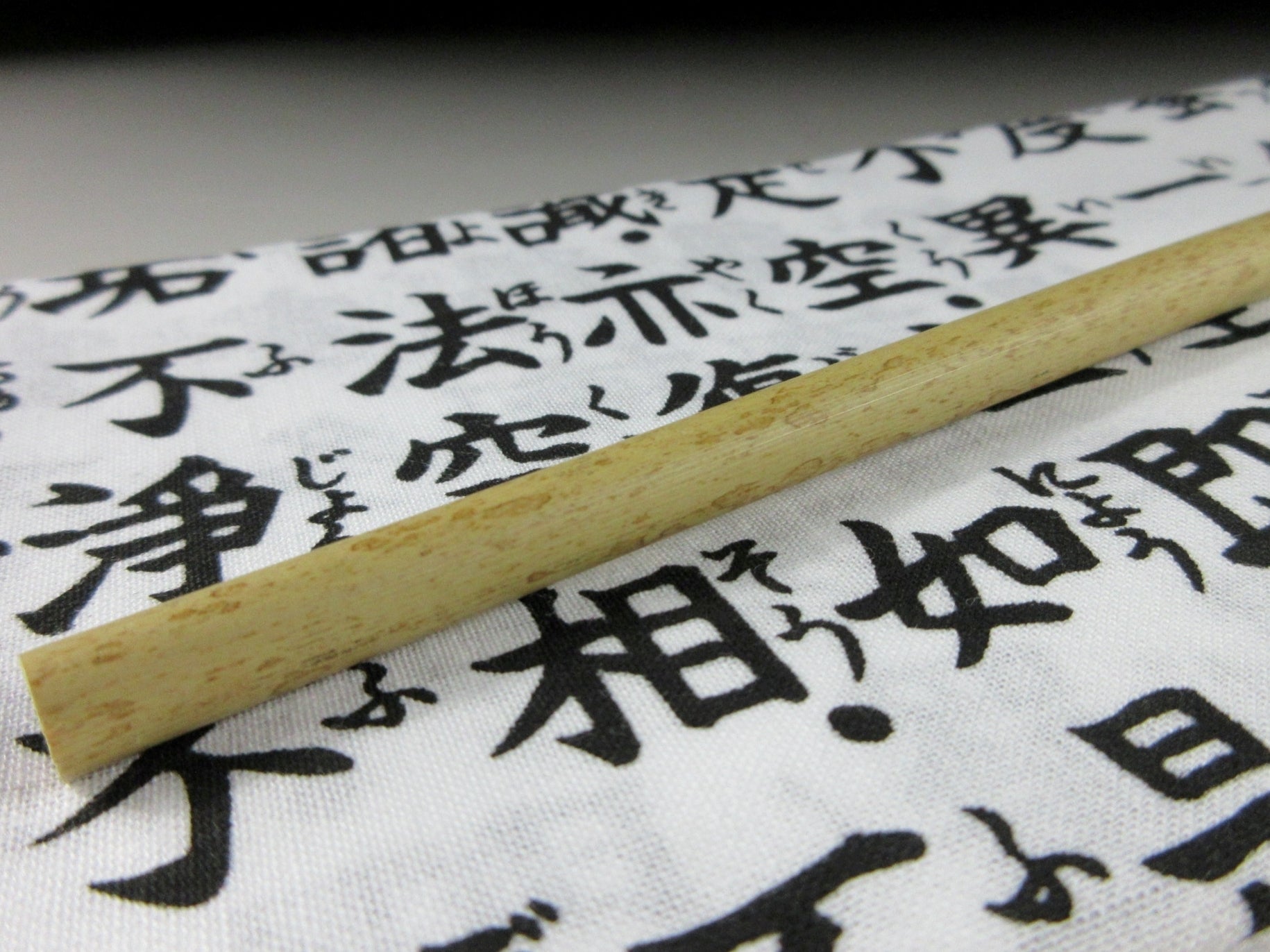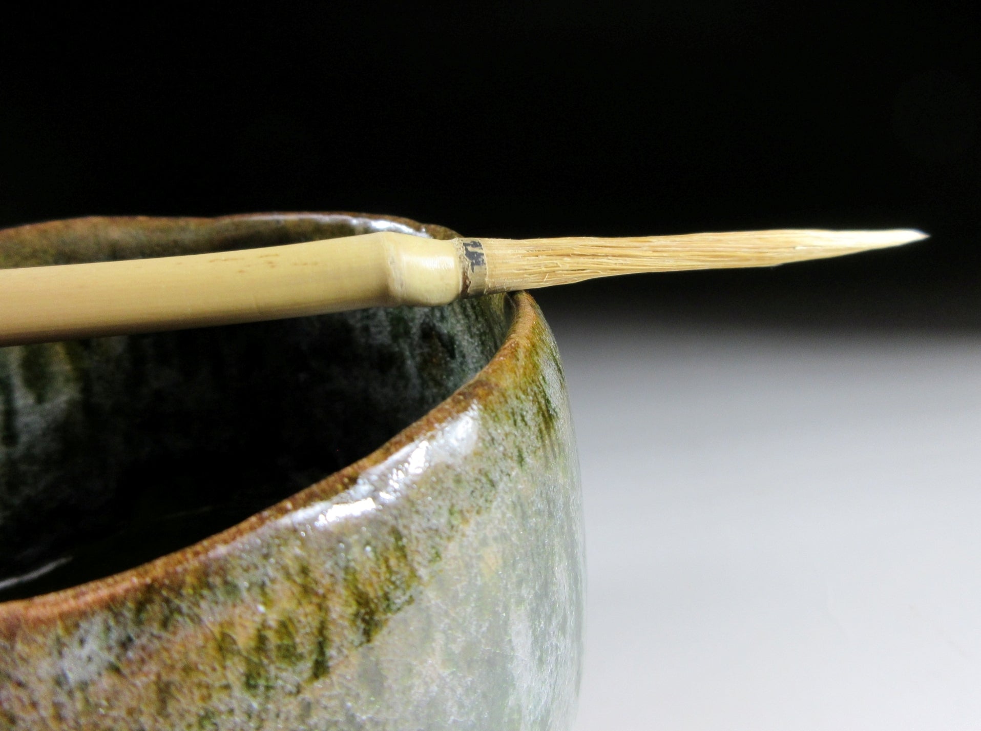 This listing is for a thin bamboo calligraphy brush produced for Ishikawa Takenomise. Both the handle and the tip of the brush are made of bamboo, so the tip is relatively coarse. A piece of thin bamboo is split up to the front of the knot, and then continuously split until the brush is complete. Bamboo brushes were traditionally used in the world of zen rather than those made from animals, and produce more of a ‘scratchy’ finish. **Care instructions: If it stays wet for a long time (more than a day), mould may appear and the brush will possibly begin to rot. Also, if it is extremely dry, such as near a heater, it may crack. After use, remove ink and wipe off any water. Dry the brush completely before storing it. *PLEASE NOTE THAT THE CLOTH AND CHAWAN ARE NOT INCLUDED IN THIS LISTING.