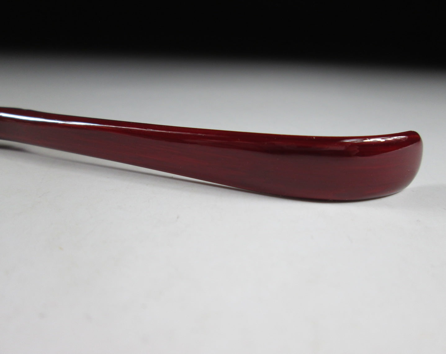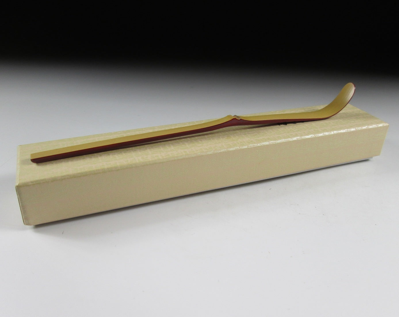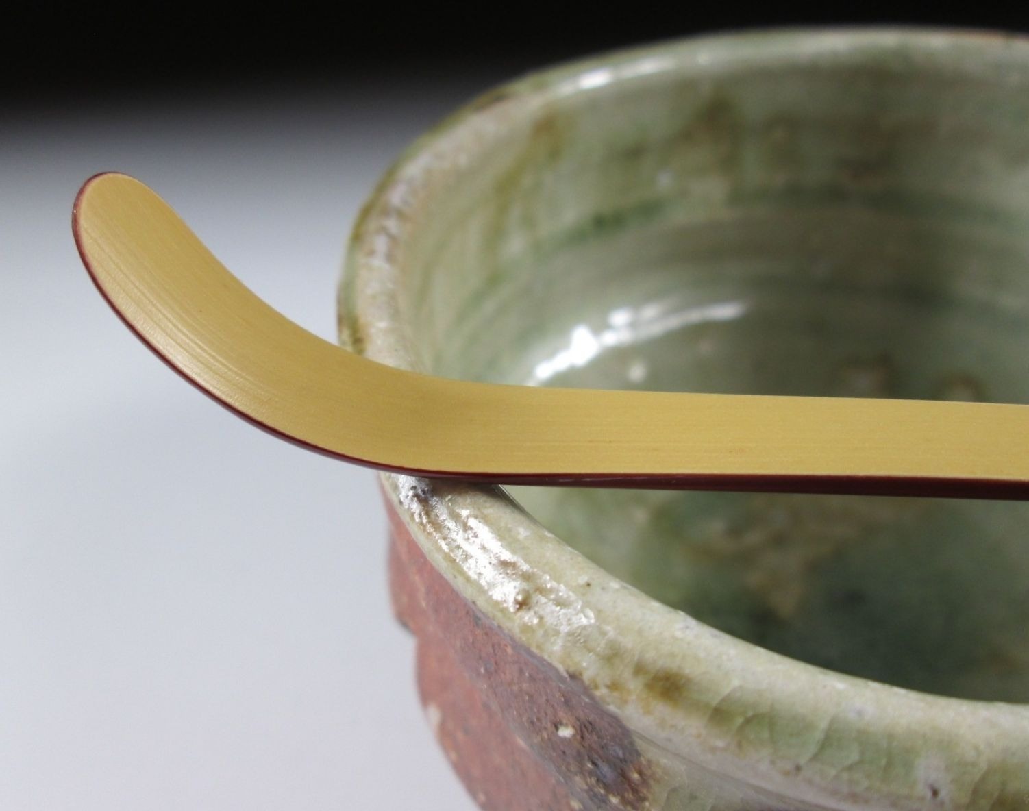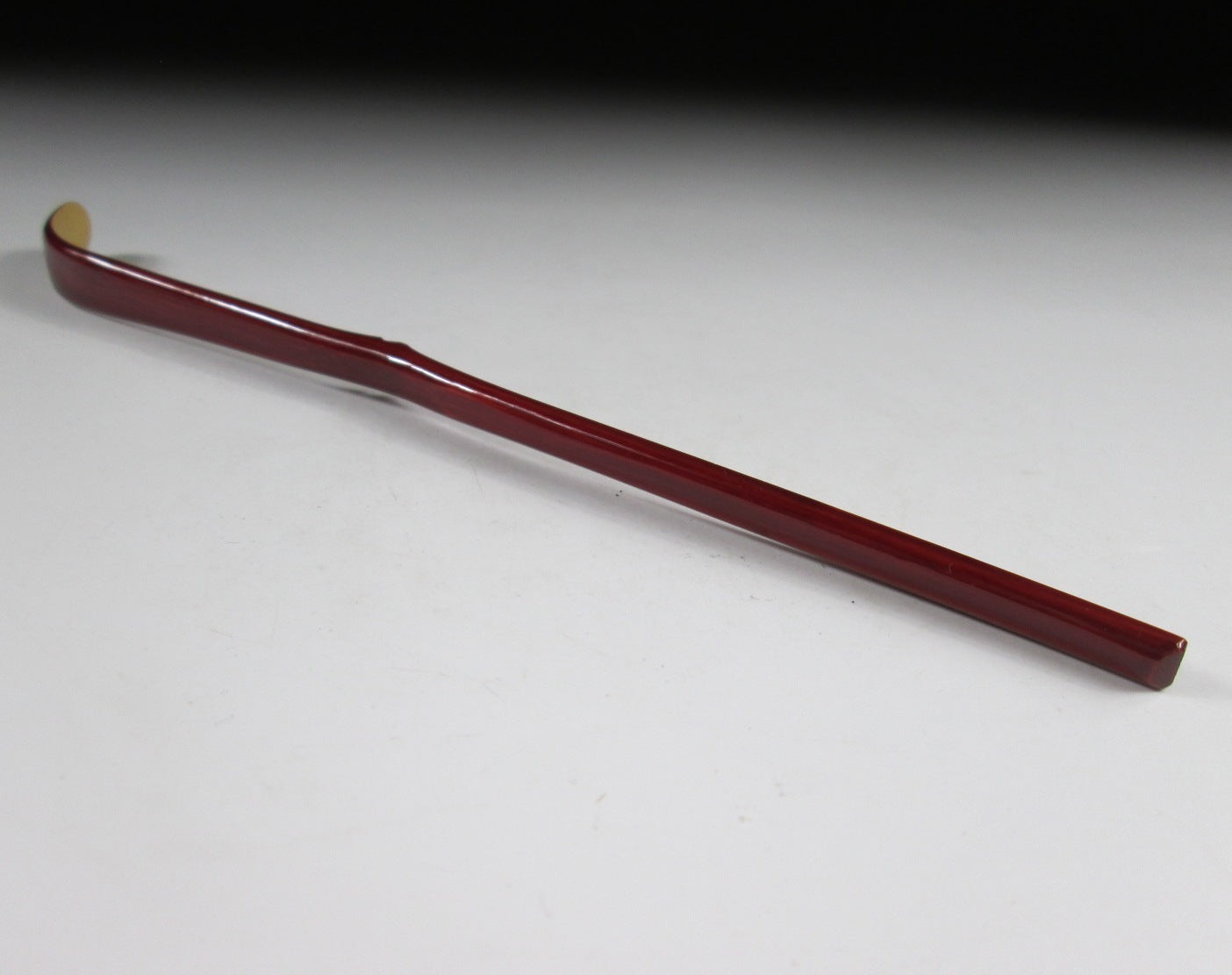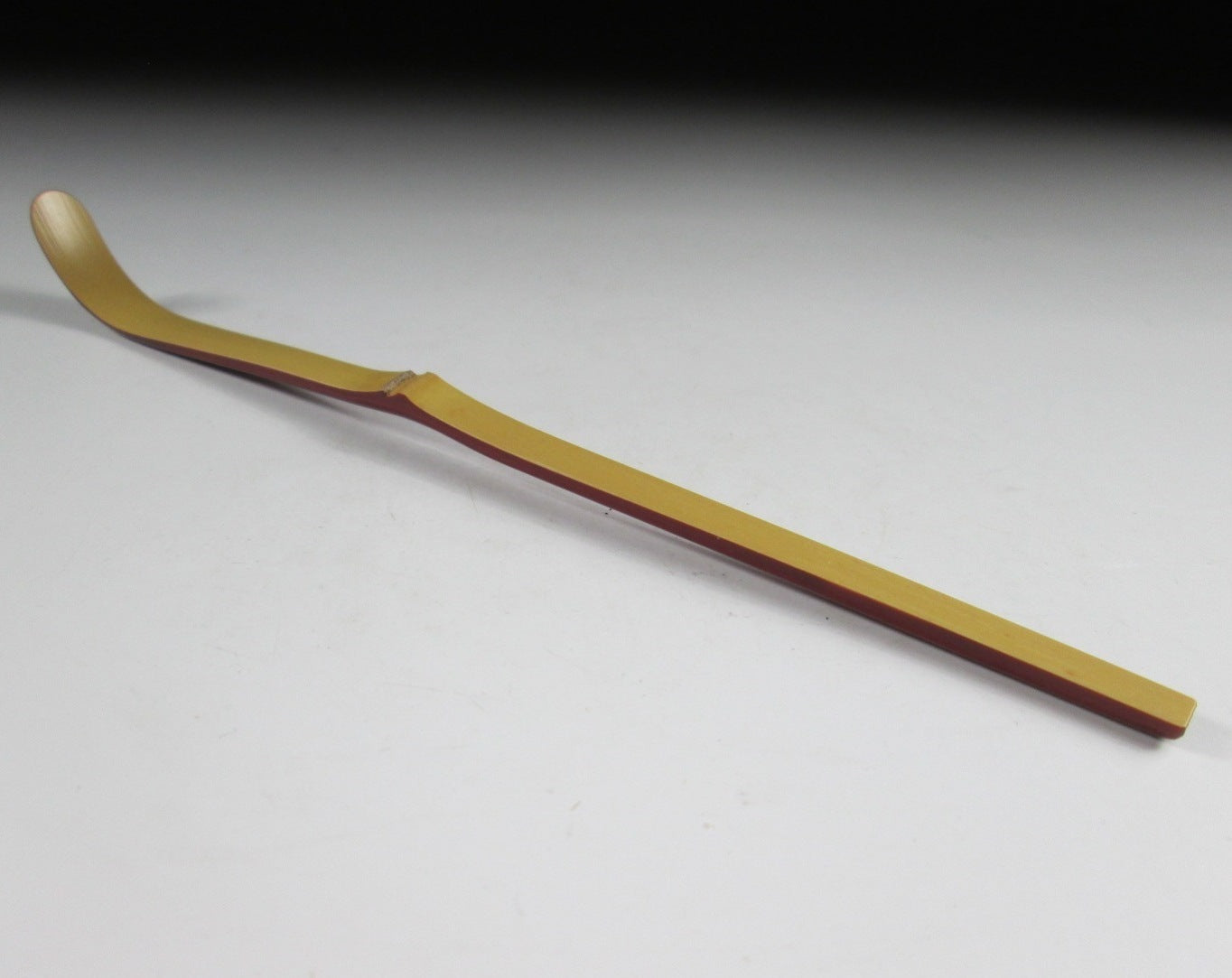 This listing is for a high grade lacquered bamboo chashaku made by Ishikawa Takenomise in Kyoto. Chashaku are an essential item for traditional Japanese tea ceremony, they are used for the measuring and preparation of matcha tea. The back of the spoon is coated in dark coloured urushi lacquer, and the front is unlacquered with a natural finish. It comes with a paper storage box.