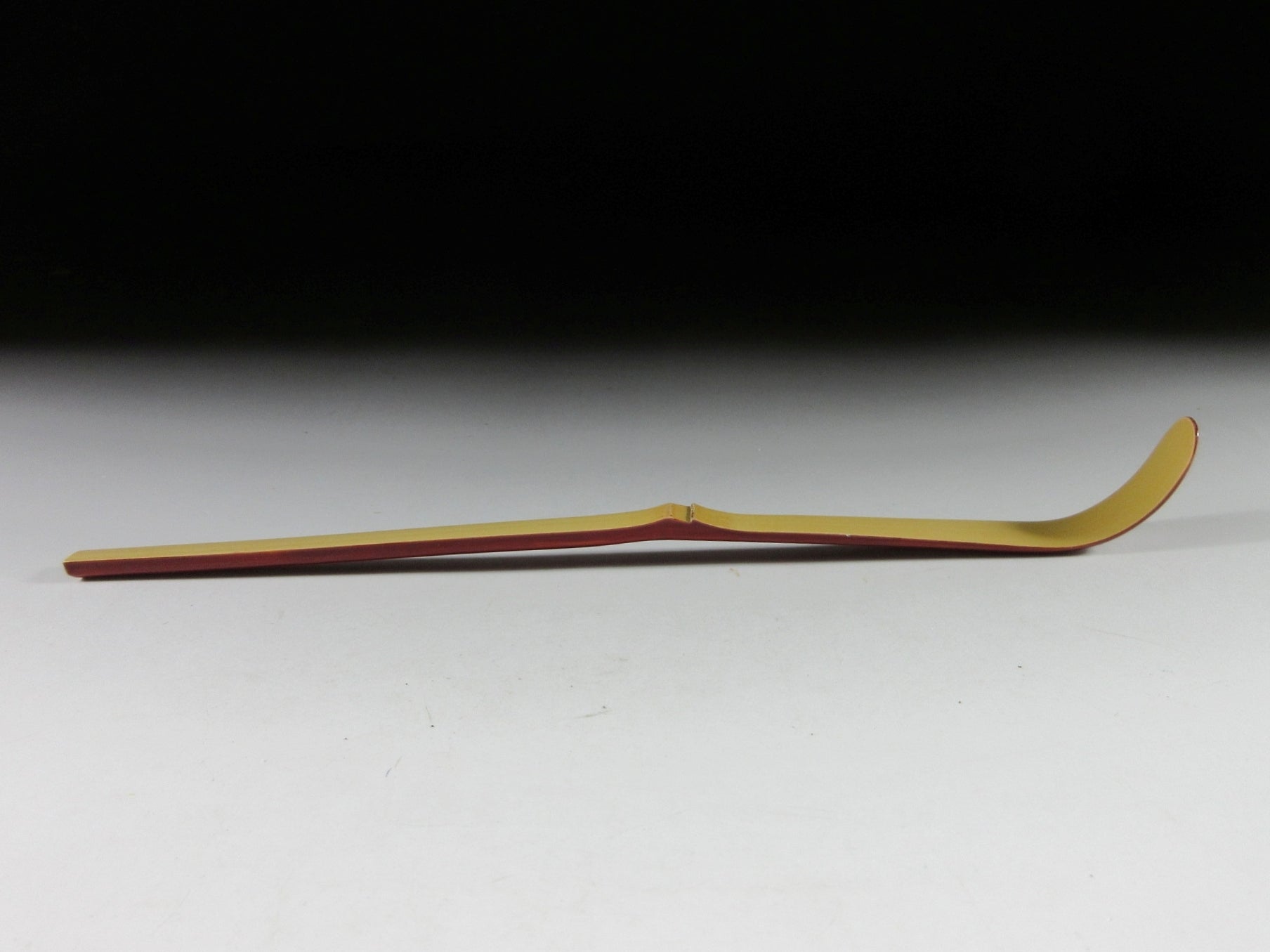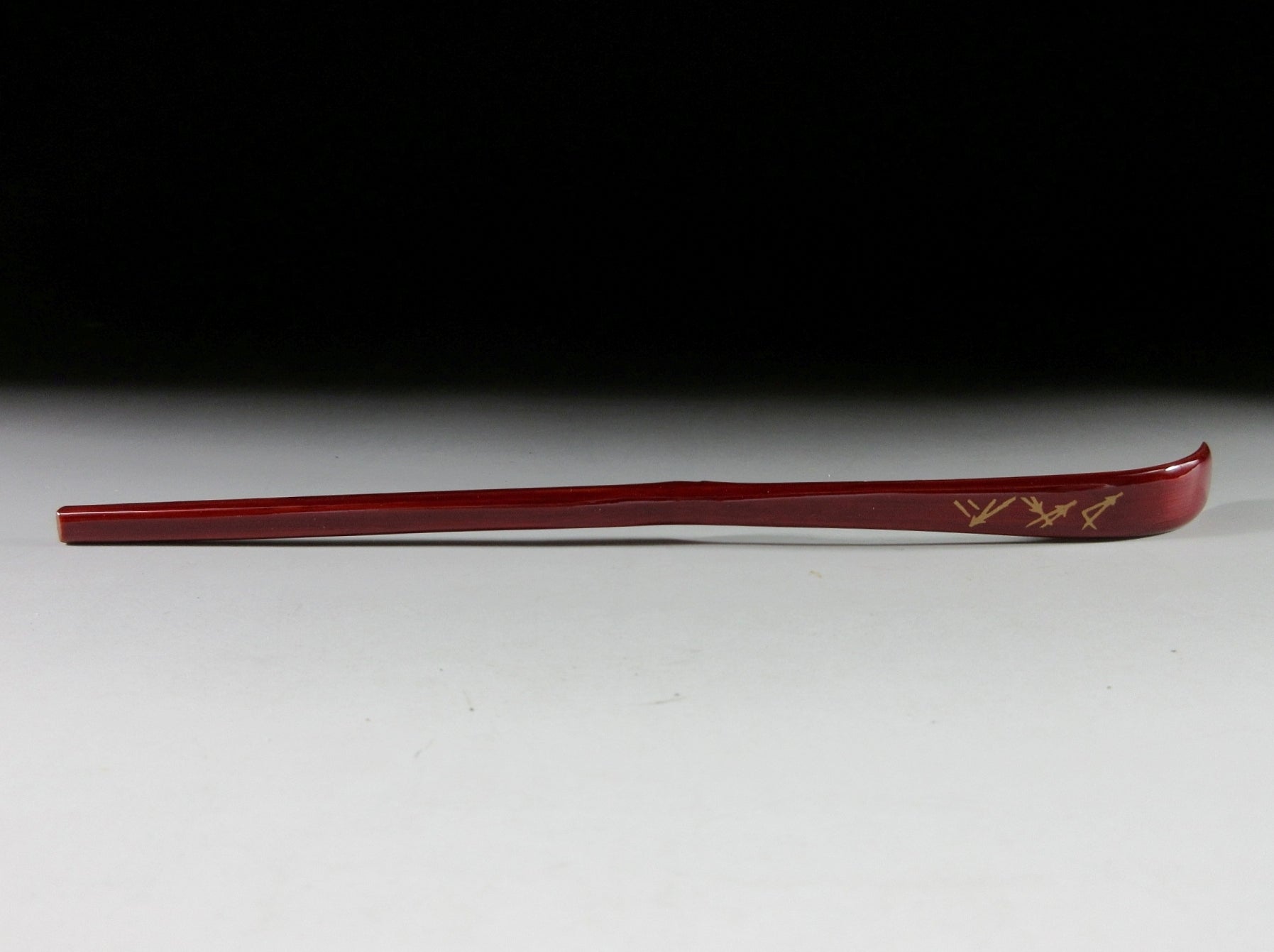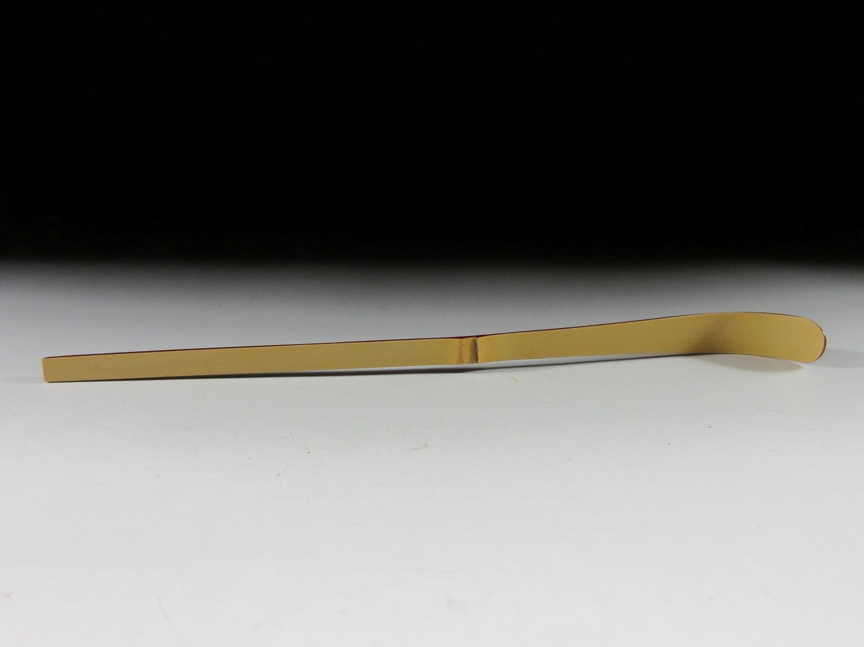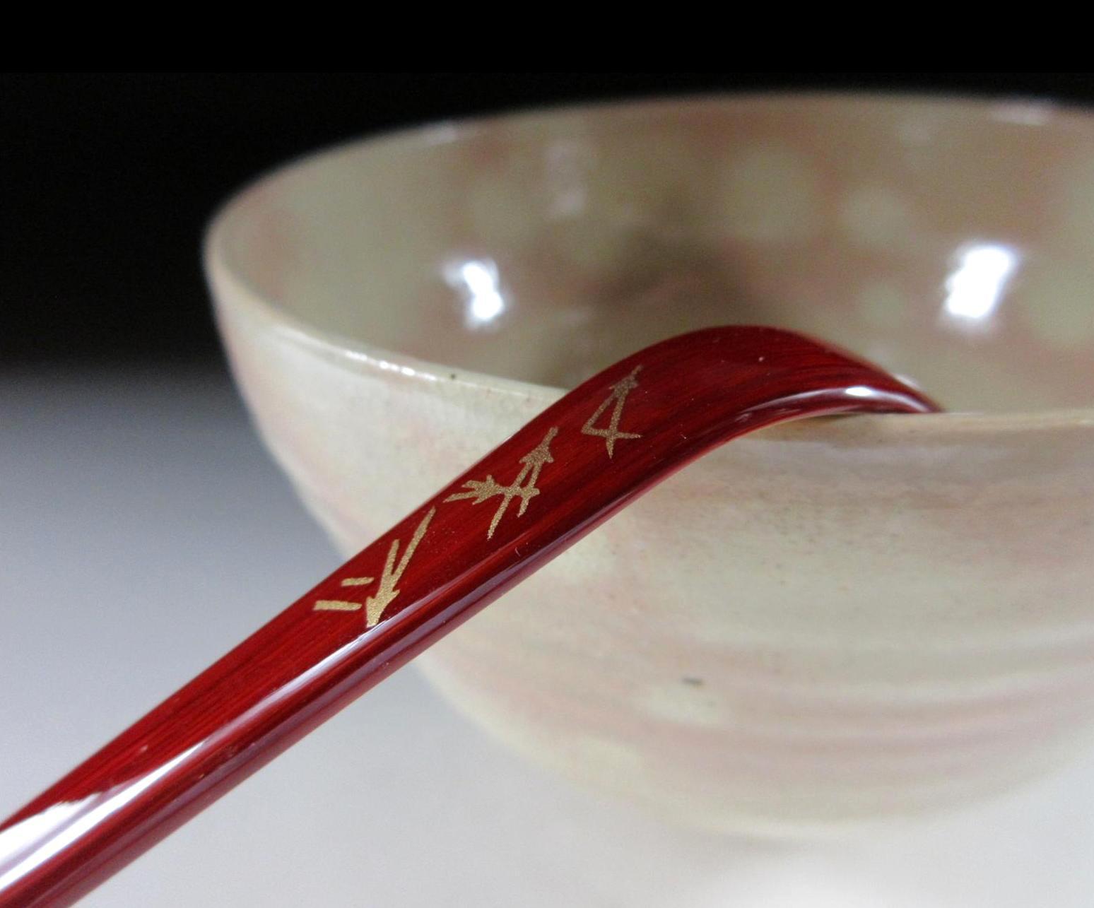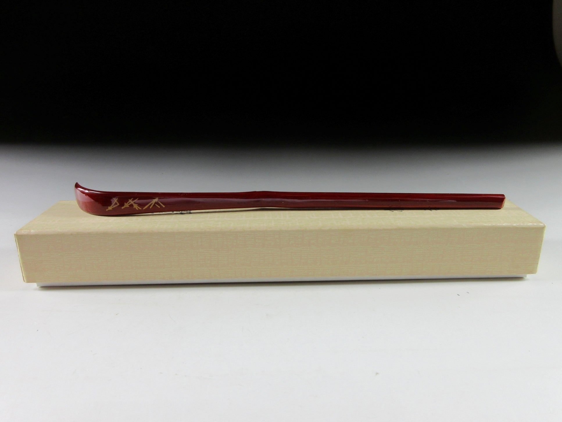 This listing is for a high grade lacquered bamboo chashaku made by Ishikawa Takenomise in Kyoto. Chashaku are an essential item for traditional Japanese tea ceremony, they are used for the measuring and preparation of matcha tea. The back of the spoon is coated in dark coloured urushi lacquer and features a makie matsuba pine needle pattern, and the front is unlacquered with a natural finish. It comes with a paper box. **PLEASE NOTE THAT THE CHAWAN IS NOT INCLUDED IN THIS LISTING, THIS LISTING IS FOR THE CHASHAKU (TEA SCOOP) ONLY.