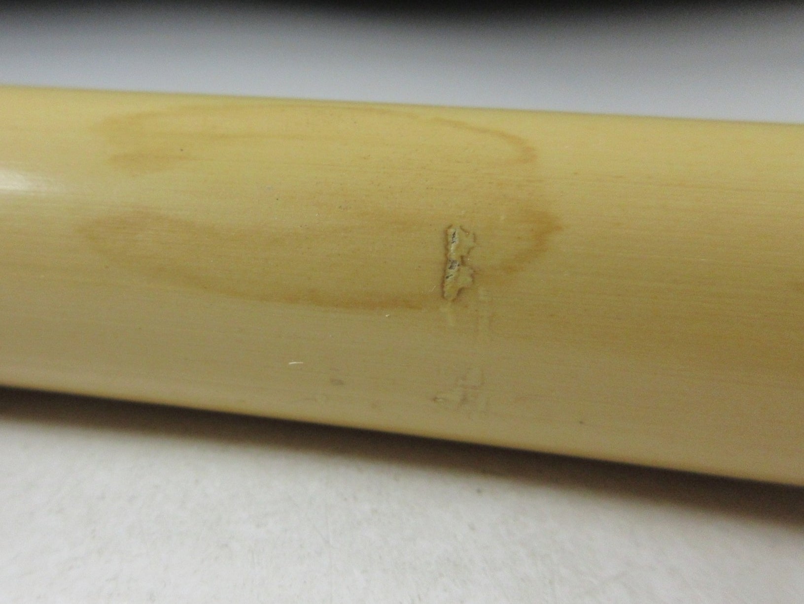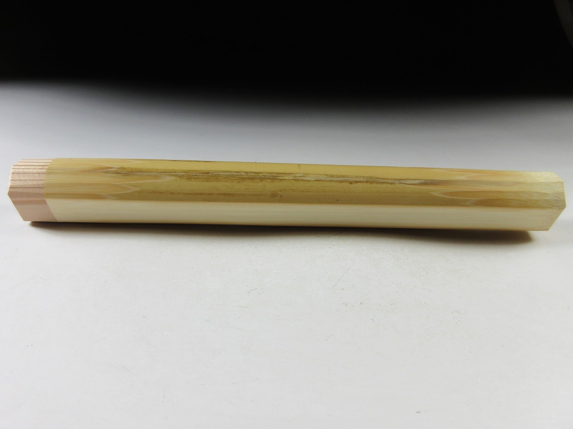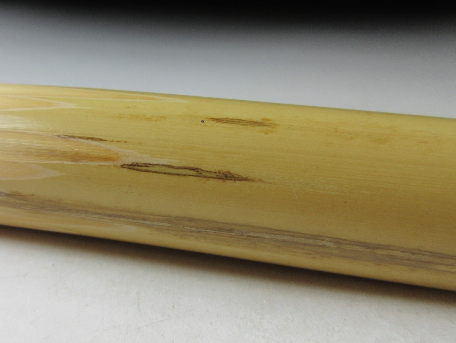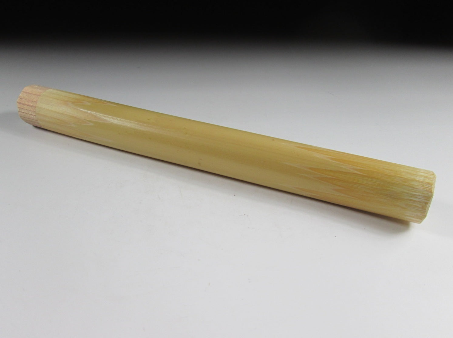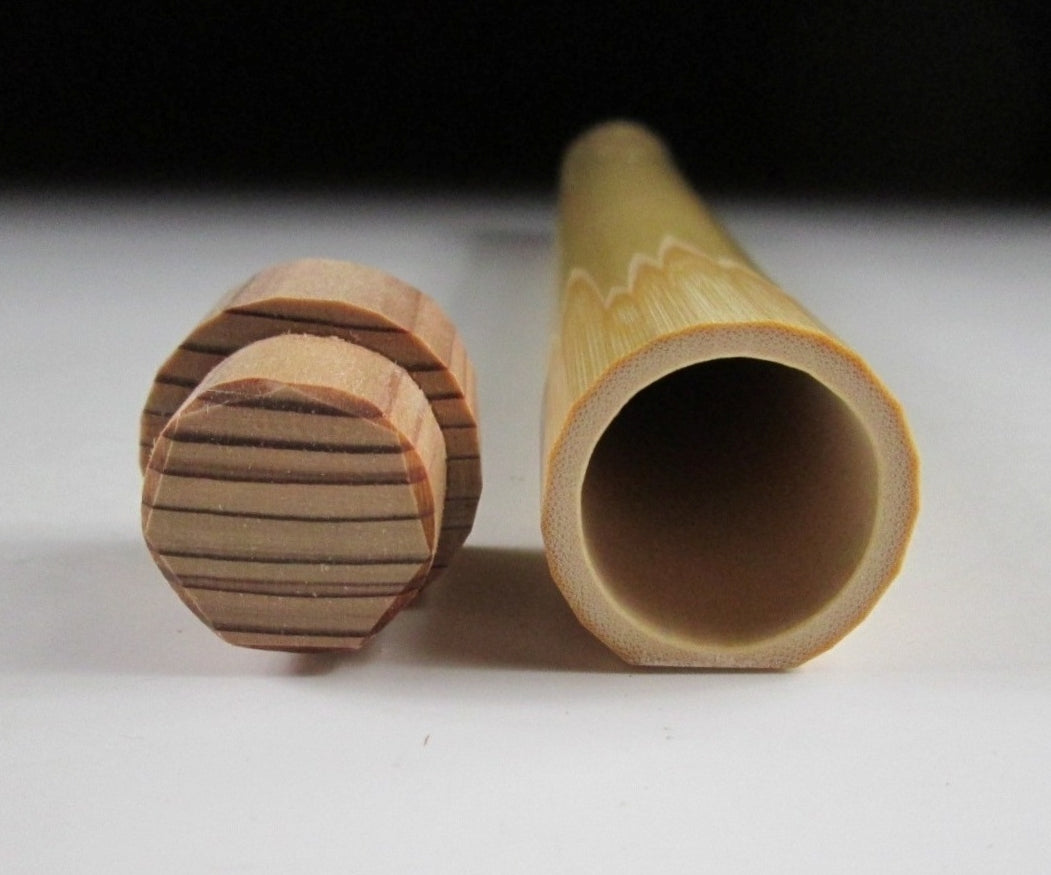 This listing is for a take-zutsu bamboo chashaku case made by Ishikawa Takenomise in Kyoto. Take (bamboo) zutsu (holder/case) are cylindrical tubes of hollowed out bamboo used for storing chashaku tea scoops. The case in this listing is made of white bamboo sourced from the Arashiyama district in Kyoto, and the lid is hand carved from cedar. Take care when opening the case, pull the lid straight and do not twist it as twisting may crack or completely break the wood. *Please note that markings on the exterior will differ from the photos as no two pieces of bamboo are the same.