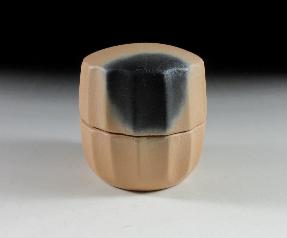 This listing is for a Kamachi-ware kogo made around 20 years ago by Ito Masataka. It is made of low-fired earthenware and the front has a patch of black that occurred as a result of the firing process. This piece is ample in size and suitable for holding both woodchip and kneaded incense, though pottery kogo are typically used for kneaded incense during the cooler months. The stamp of the potter can be found on the bottom, and it comes with its original signed wooden storage box. It also comes with a stamped turmeric coloured wrapping cloth for when the item is not in use.