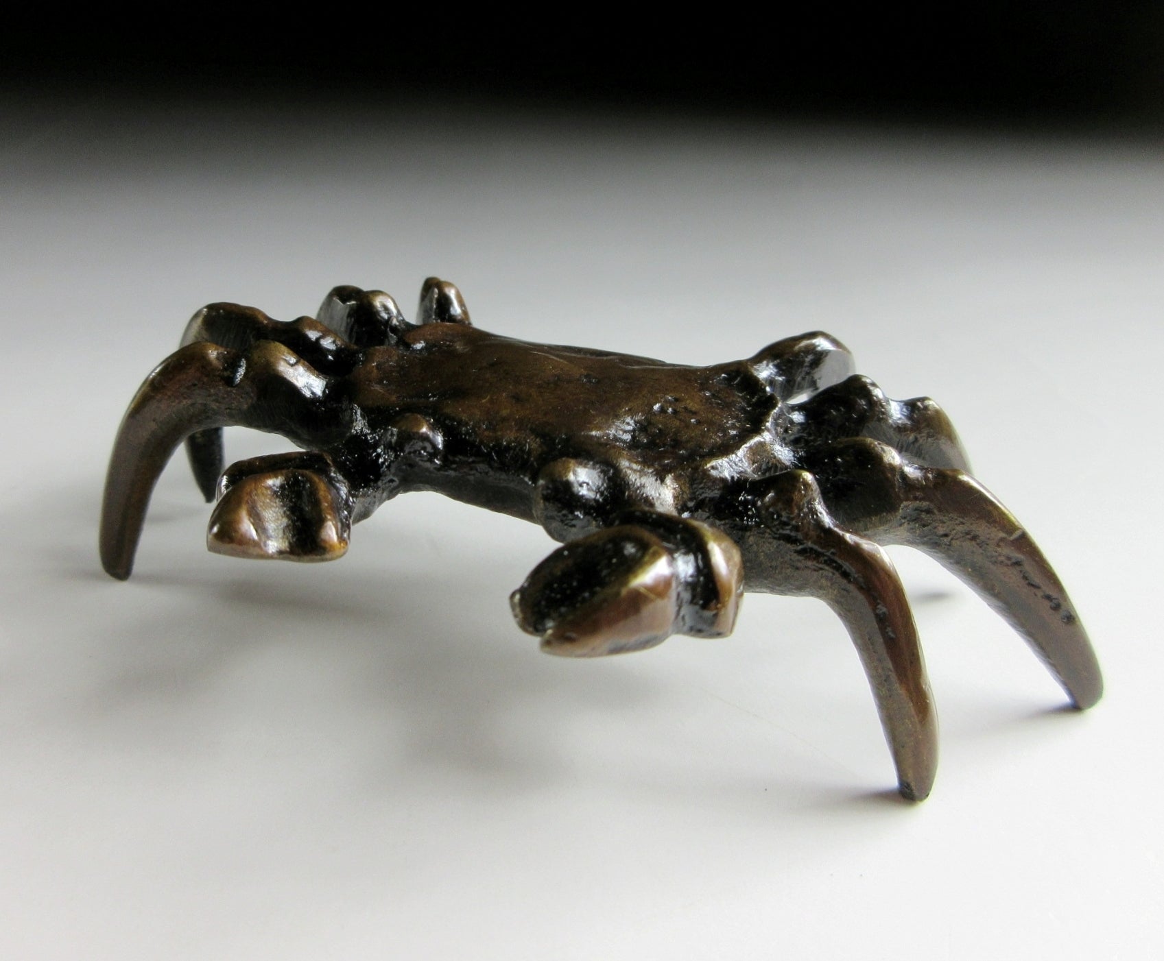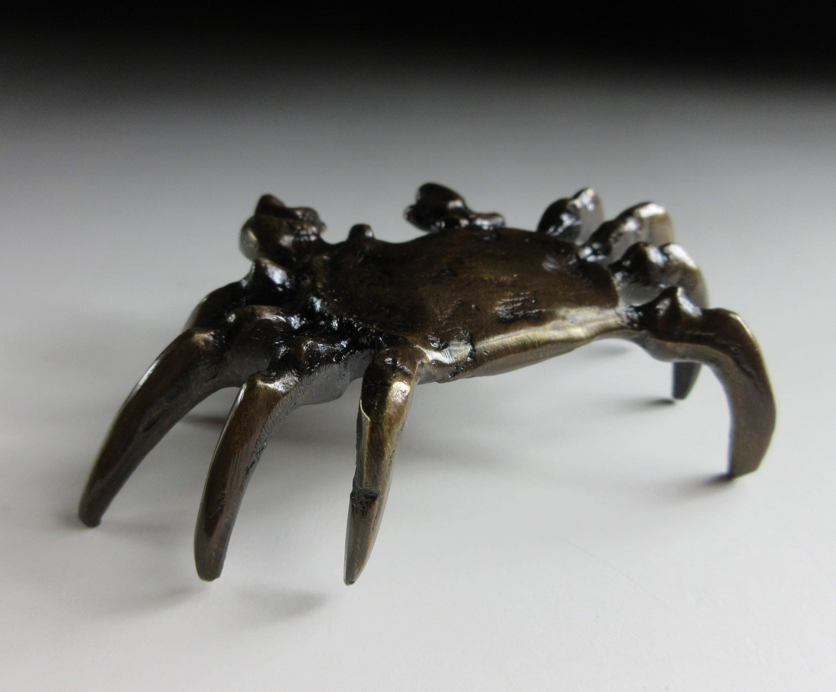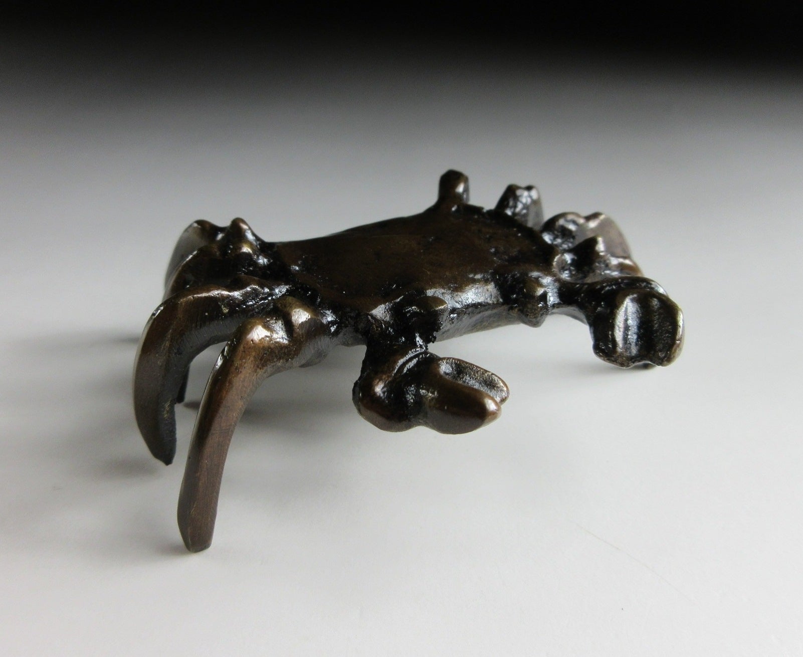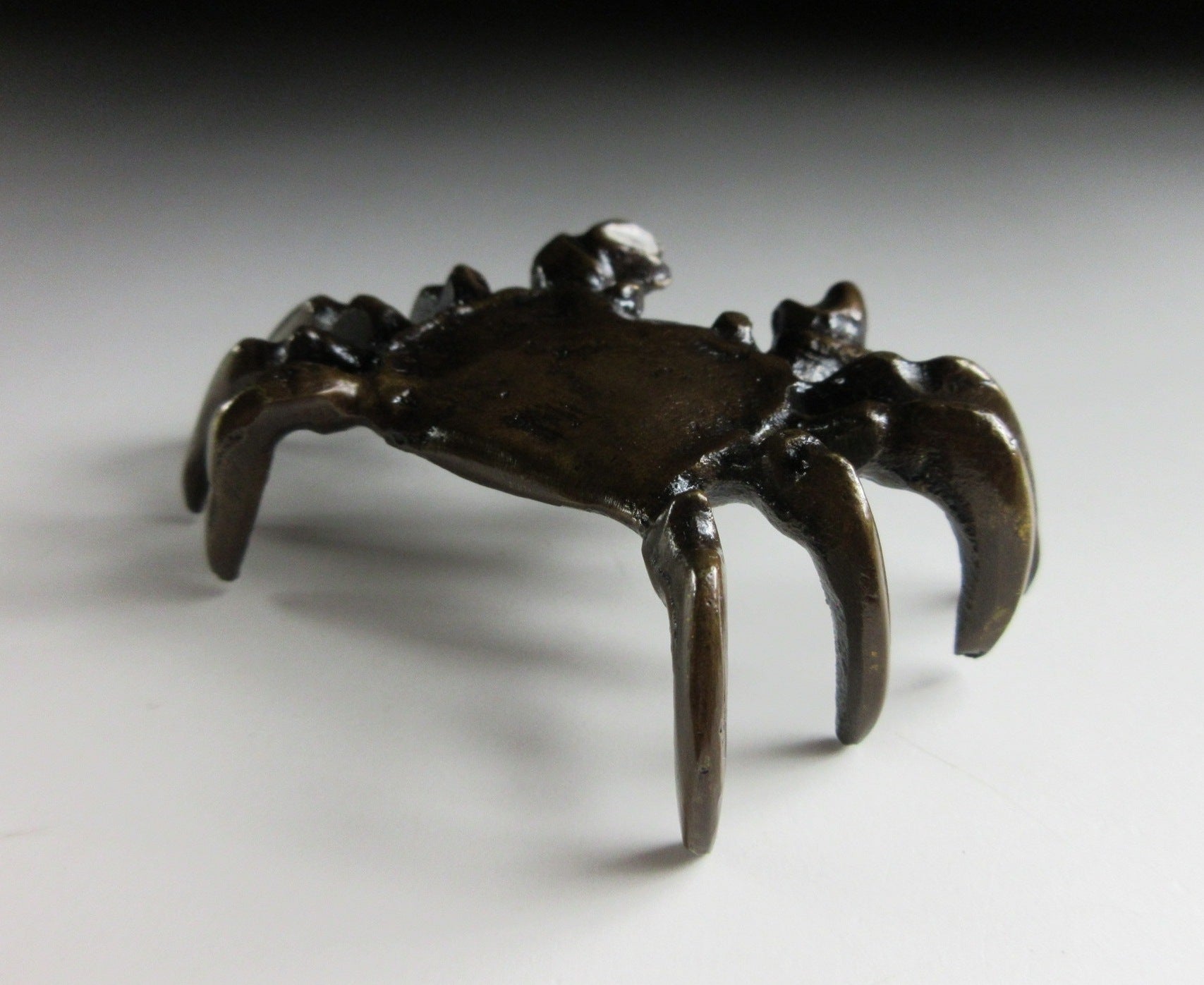 This listing is for a vintage futaoki made around 20 years ago by master craftsman, Kanaya Joun. A futaoki functions as a lid rest during the tea ceremony. The lid of the kama is placed on the futaoki when hot water needs to be drawn from the kettle. The bamboo water ladle rests there up until the lid of the kama is removed. The futaoki featured in this listing is made of copper and moulded to resemble a crab. It comes with its original signed wooden storage box, as well as a yellow wrapping cloth for when the item is not in use.