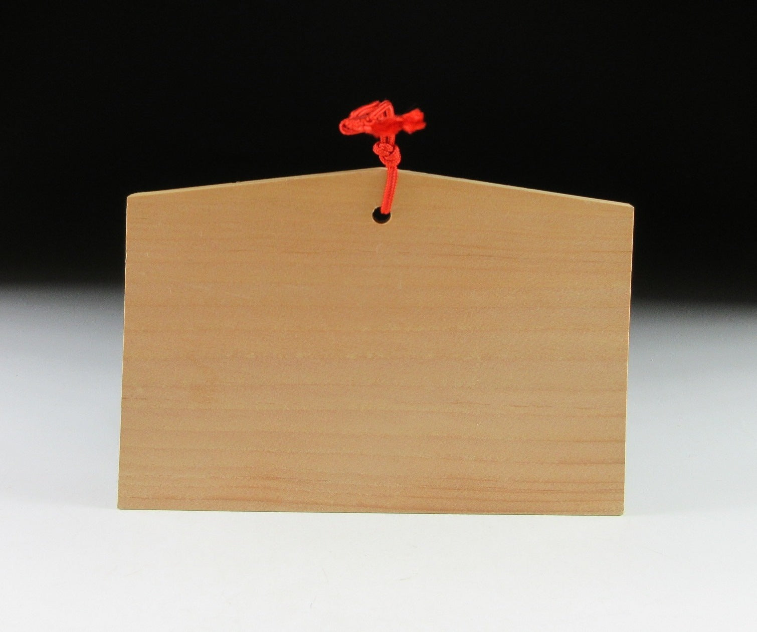 An ema is a traditional wooden votive prayer on which Shinto and Buddhist worshippers inscribe their wishes or prayers. Ema typically depict figures and zodiac animals, and they are hung at shrines and temples in the hope that the gods receive them and answer their prayers. The very first ema were said to be painted pictures of horses which were offered to shrines in place of real horses. The tradition of donating horses goes back to one of the first emperors of Japan, down in Kyoto. This was done to appease the gods when the weather wasn’t cooperating – a white horse was given to ease unseasonably heavy rainfall, and a black horse was offered to curb a drought. Traditionally ema were very large in size and often painted by well-known artists and craftsmen. During the Edo period they began to change in size due to the number of ordinary people travelling around the country visiting shrines and temples. These everyday folks were not so wealthy so shrines began to offer small wood framed ema as an alternative. This particular type were either hand painted by artists, or by those commissioned by the shrine. Sadly not many remain as most of them were burned in ritual fires at the end of each year.