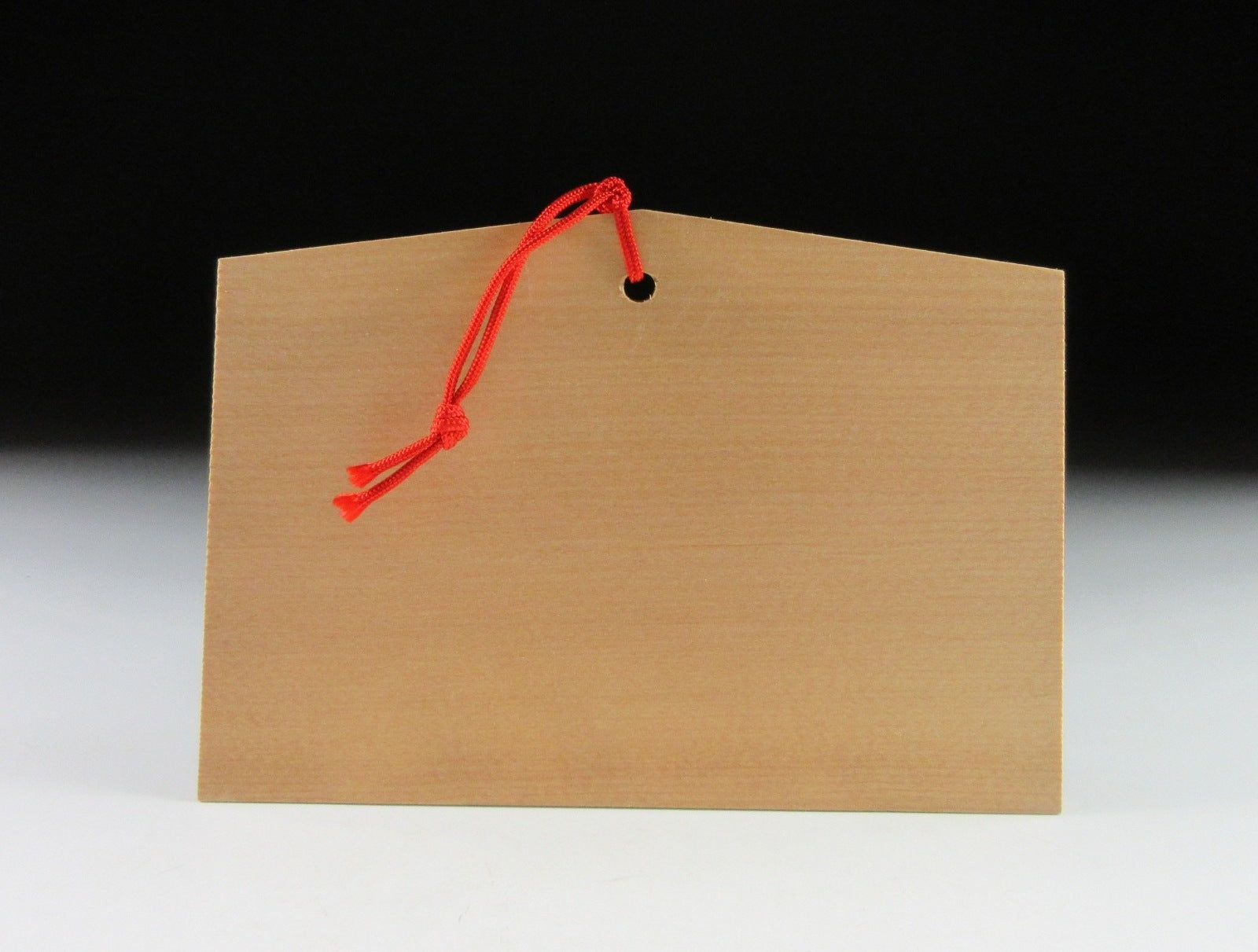 An ema is a traditional wooden votive prayer on which Shinto and Buddhist worshippers inscribe their wishes or prayers. Ema typically depict figures and zodiac animals, and they are hung at shrines and temples in the hope that the gods receive them and answer their prayers. The very first ema were said to be painted pictures of horses which were offered to shrines in place of real horses. The tradition of donating horses goes back to one of the first emperors of Japan, down in Kyoto. This was done to appease the gods when the weather wasn’t cooperating – a white horse was given to ease unseasonably heavy rainfall, and a black horse was offered to curb a drought. Traditionally ema were very large in size and often painted by well-known artists and craftsmen. During the Edo period they began to change in size due to the number of ordinary people travelling around the country visiting shrines and temples. These everyday folks were not so wealthy so shrines began to offer small wood framed ema as an alternative. This particular type were either hand painted by artists, or by those commissioned by the shrine. Sadly not many remain as most of them were burned in ritual fires at the end of each year.