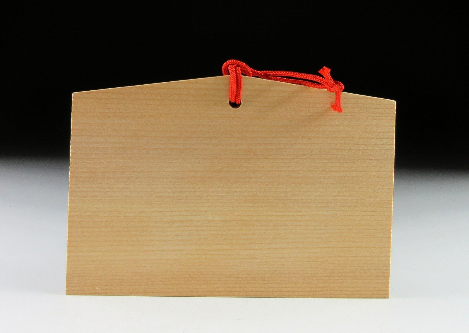 An ema is a traditional wooden votive prayer on which Shinto and Buddhist worshippers inscribe their wishes or prayers. Ema typically depict figures and zodiac animals, and they are hung at shrines and temples in the hope that the gods receive them and answer their prayers. The very first ema were said to be painted pictures of horses which were offered to shrines in place of real horses. The tradition of donating horses goes back to one of the first emperors of Japan, down in Kyoto. This was done to appease the gods when the weather wasn’t cooperating – a white horse was given to ease unseasonably heavy rainfall, and a black horse was offered to curb a drought. Traditionally ema were very large in size and often painted by well-known artists and craftsmen. During the Edo period they began to change in size due to the number of ordinary people travelling around the country visiting shrines and temples. These everyday folks were not so wealthy so shrines began to offer small wood framed ema as an alternative. This particular type were either hand painted by artists, or by those commissioned by the shrine. Sadly not many remain as most of them were burned in ritual fires at the end of each year.
