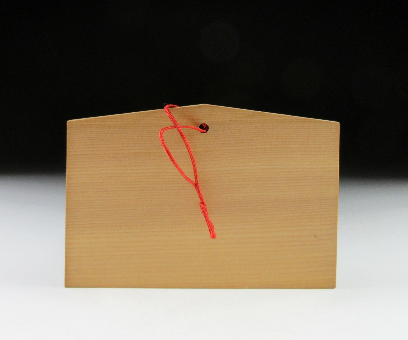 An ema is a traditional wooden votive prayer on which Shinto and Buddhist worshippers inscribe their wishes or prayers. Ema typically depict figures and zodiac animals, and they are hung at shrines and temples in the hope that the gods receive them and answer their prayers. The very first ema were said to be painted pictures of horses which were offered to shrines in place of real horses. The tradition of donating horses goes back to one of the first emperors of Japan, down in Kyoto. This was done to appease the gods when the weather wasn’t cooperating – a white horse was given to ease unseasonably heavy rainfall, and a black horse was offered to curb a drought. Traditionally ema were very large in size and often painted by well-known artists and craftsmen. During the Edo period they began to change in size due to the number of ordinary people travelling around the country visiting shrines and temples. These everyday folks were not so wealthy so shrines began to offer small wood framed ema as an alternative. This particular type was either hand painted by artists, or by those commissioned by the shrine. Sadly not many remain as most of them were burned in ritual fires at the end of each year.