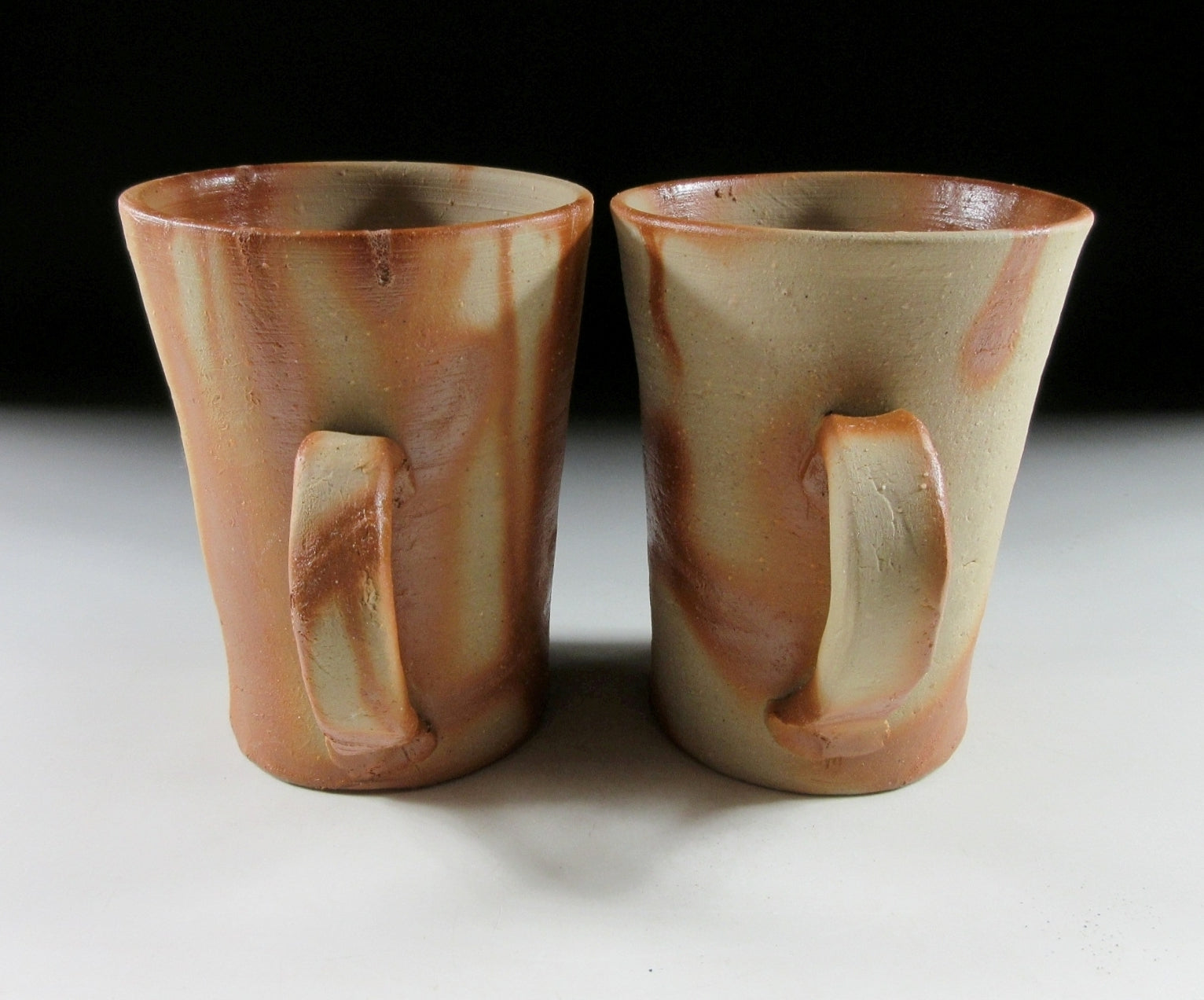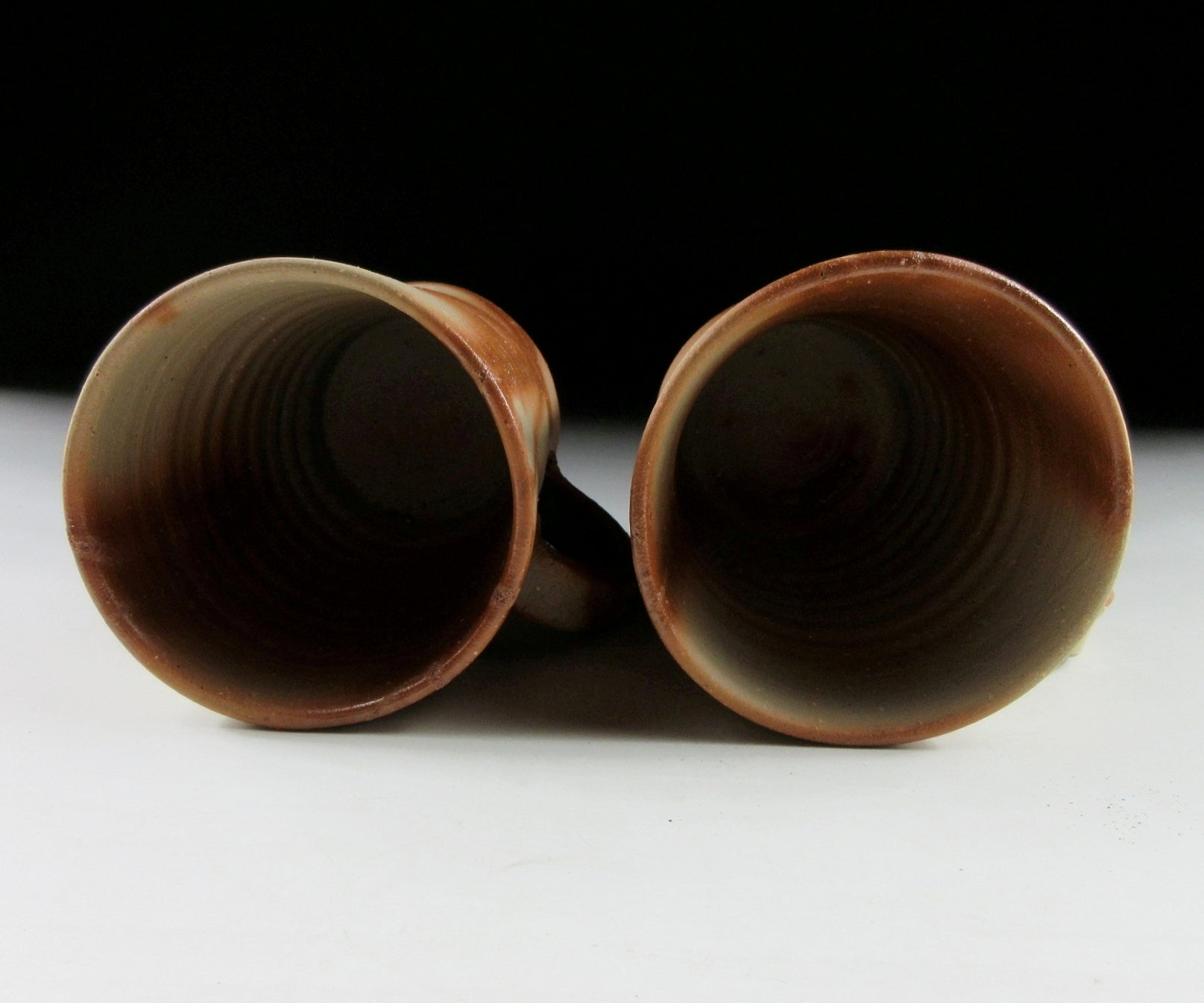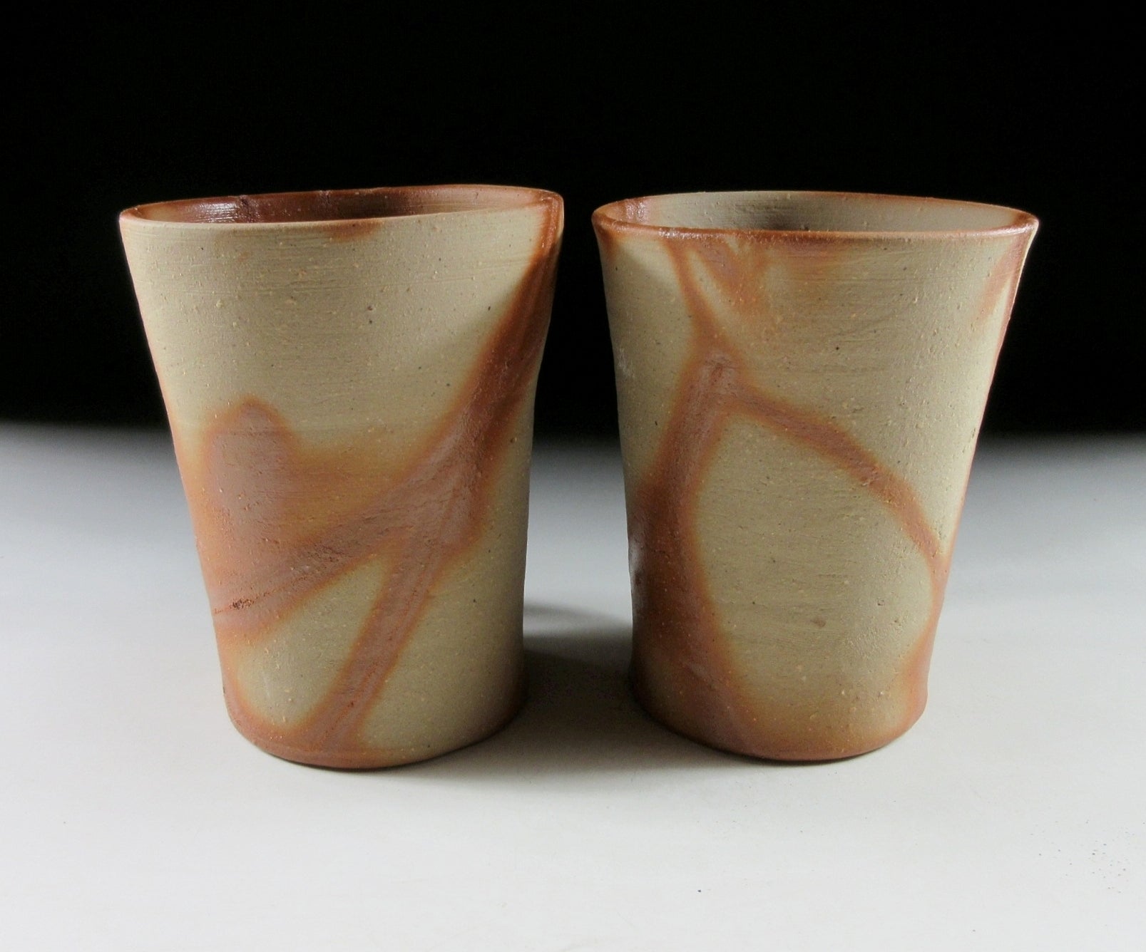 This listing is for a pair of wood-fired cups made by Kataoka Seikan. They are wheel-thrown and wood-fired in a noborigama climbing kiln. Both cups have a capacity of 260ml and feature what is known as hidasuki markings. Hidasuki refers to the process of wrapping wares with cords of straw which fire off and leave brilliant red streaks. The signature of the potter can be found on the bottom, sorry no box.