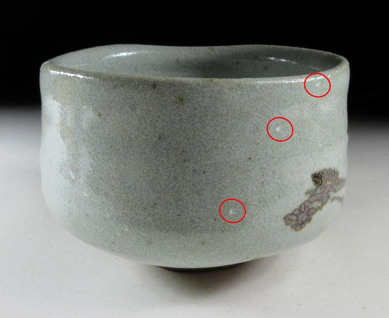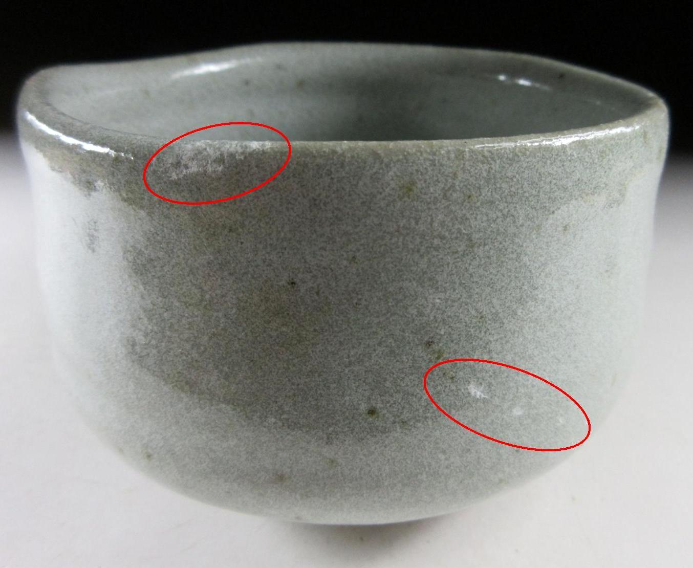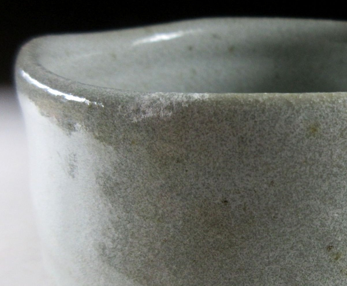 It’s in very good condition aside from some minor wear and tear to the glaze, mainly on the back of the bowl. Near the rim it looks like the glaze has come in contact with something abrasive, there’s a small worn patch. Lower down there is a line of spots where the same type of thing has happened, along with a scratch along the surface. Three smaller spots are also visible on the front. It doesn’t affect usage whatsoever, and the bowl is not affected structurally as its quite a strong, solid piece.