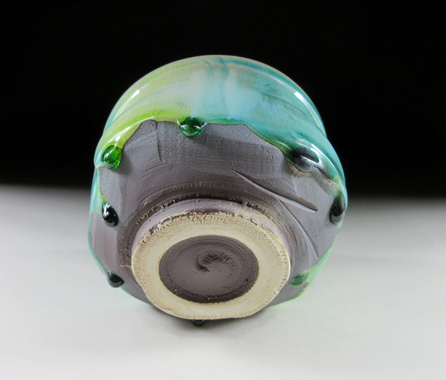 Kato Eichi is a Mino-ware potter who produces contemporary style chawan and teaware. His chawan are often decorated with layers of glaze and the colours are sometimes very dramatic. His teaware is usually thrown with white clay, and they tend to be low fired requiring careful handling like raku wares. His potter’s mark consists of two crossing lines just outside the foot ring. **Fellow sellers, this information was researched by Kominka Zakka and CANNOT be used in your own listings.
