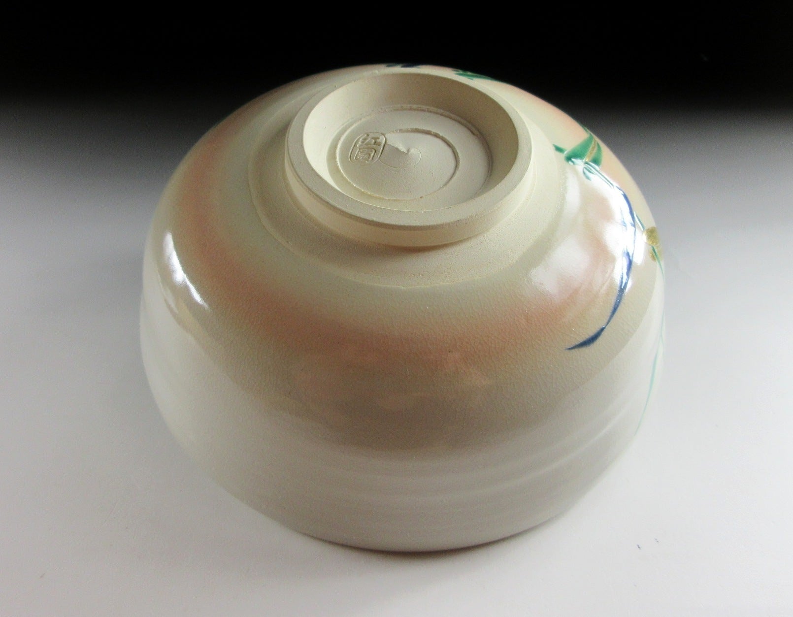 Kiba Koen (b.1950) is a female potter and first generation master of Hanayama Gama. She was born and raised in Kagoshima and moved to Kyoto to study design at the Kyoto Prefectural Ceramics Institute. She graduated in 1972 and began studying pottery under Miyagawa Koun II (b.1938). In 1981 she completed a ceramics course at the Kyoto Municipal Industrial Research Institute and opened Hanayama kiln one year later. In 2002 her work was selected for the Kyoto Prefectural Industrial Technology Contest, with consecutive selection every year since 2011. Kiba produces a large number of tea bowls and is very skilled at making Ninsei utsushi pieces. In addition to chawan she also produces vases and kogo. Her style varies between traditional Kyo-ware pottery to Western-style works with Christmas and Halloween motifs. **Fellow sellers, this information was researched by Kominka Zakka and CANNOT be used in your own listings.