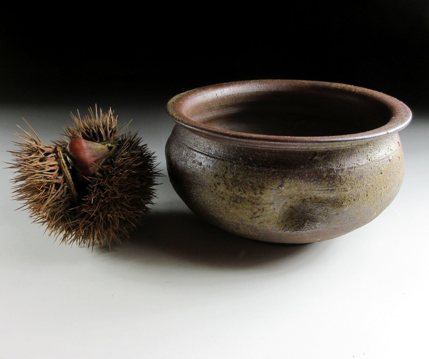 This listing is for vintage Bizen-ware kensui made about 40 years ago by noted potter, Kimura Toho. Kensui are intended for use during the tea ceremony, and they hold used water after tea utensils have been rinsed off. The kensui in this listing is wheel-thrown and wood-fired in a noborigama climbing kiln. This particular type of Bizen-ware is known as the goma (sesame) type, because of the light brown colour on the surface resembling sesame seed paste. This colouring is the result of red pine ash melting on the piece’s surface. The signature of the potter can be found on the bottom, sorry no box.