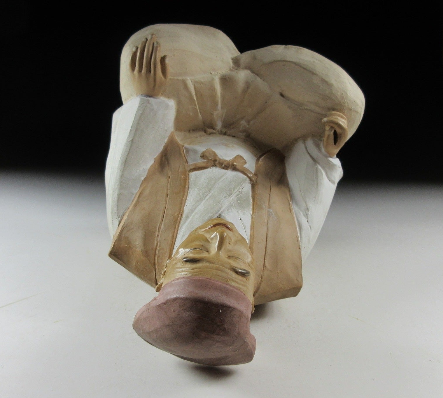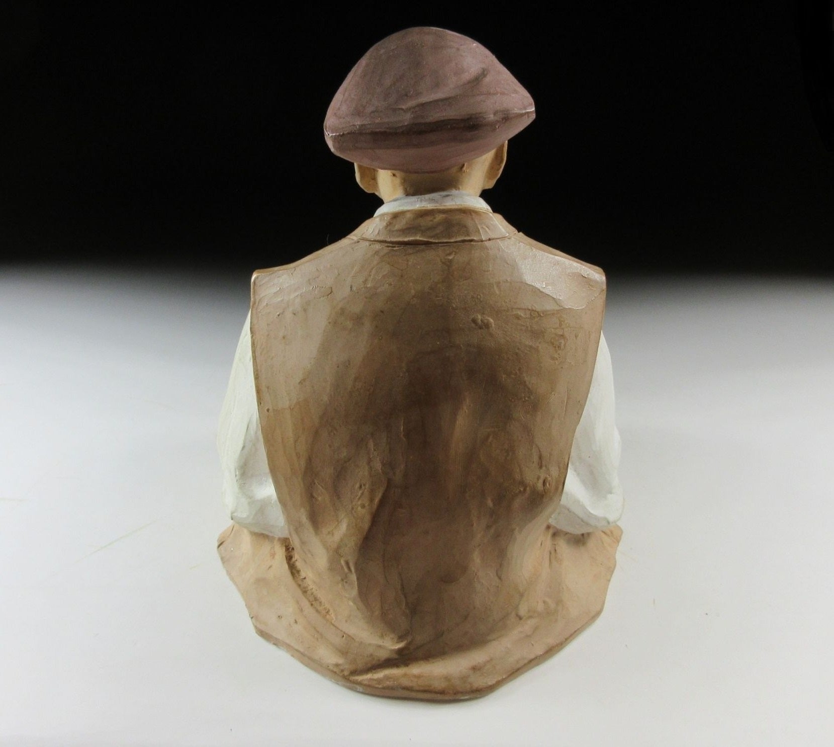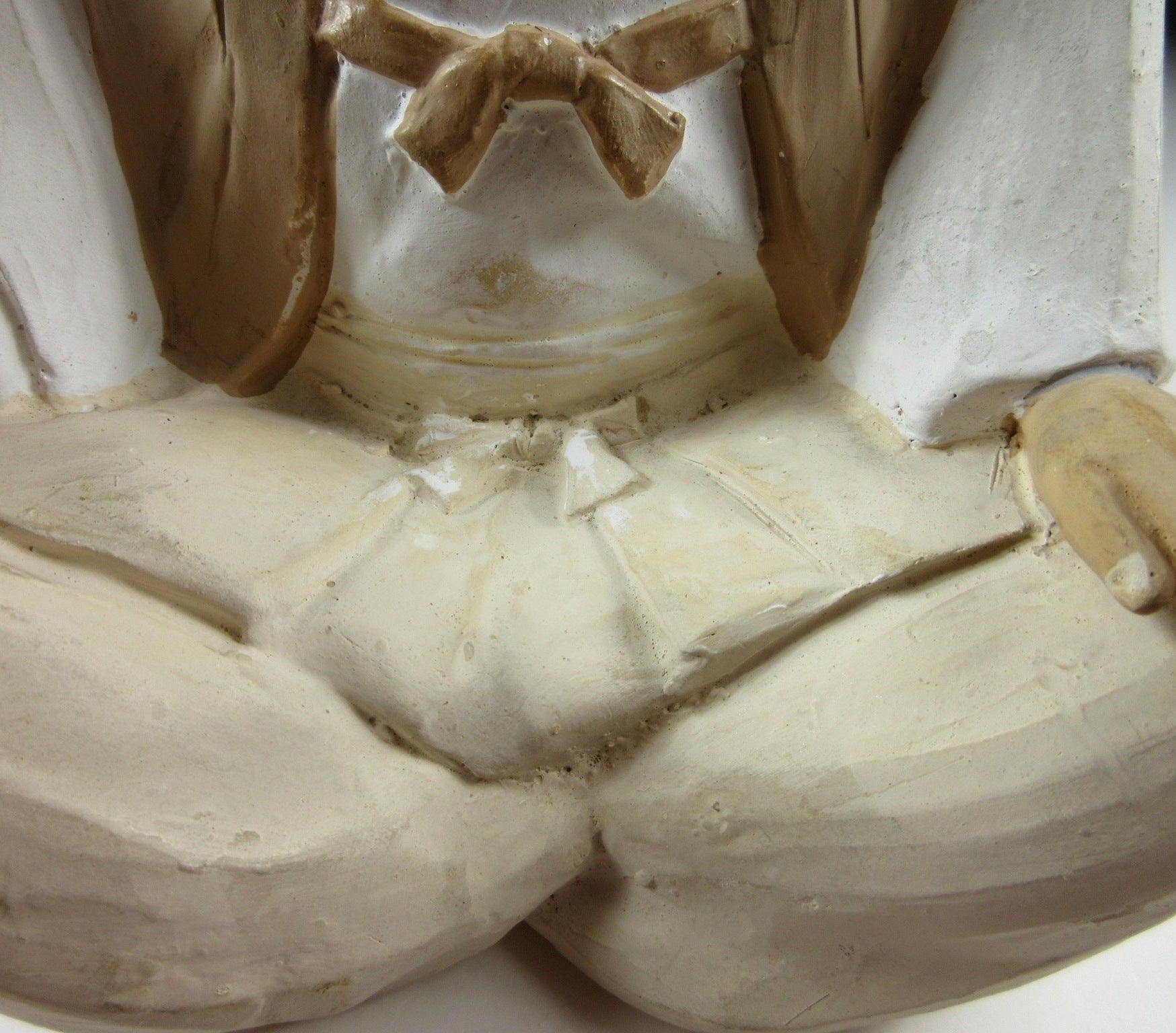 This listing is for a splendid Hakata ningyo made around 60-70 years ago by master doll artisan, Kojima Yoichi (1886-1970). It is made of white clay and moulded to resemble grand tea master Sen no Rikyu. The exterior is painted with gesso and this piece comes with a wooden display board trimmed with black lacquer. The board is signed underneath and the doll is also signed on the bottom. This is a high quality Hakata doll with very detailed, life-like features. **Originally this doll would have come with other parts, but they are long gone. Some research revealed that this doll depicts Sen no Rikyu just prior to committing seppuku. In his right hand he has a short sword, and to his left he has three blades laid out on a cloth. I have a photo I can share if interested.