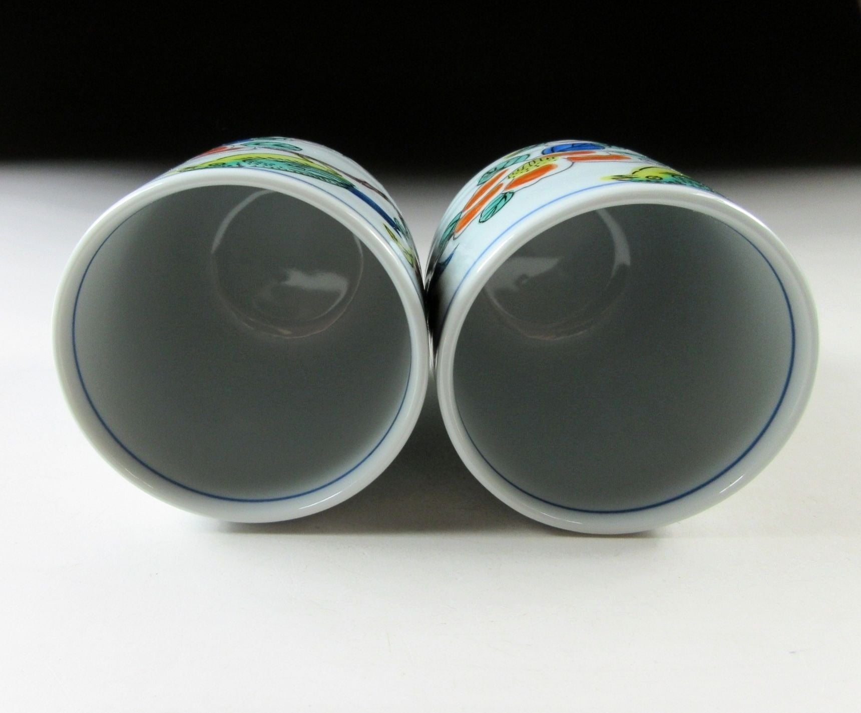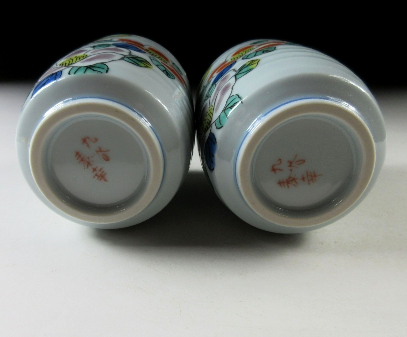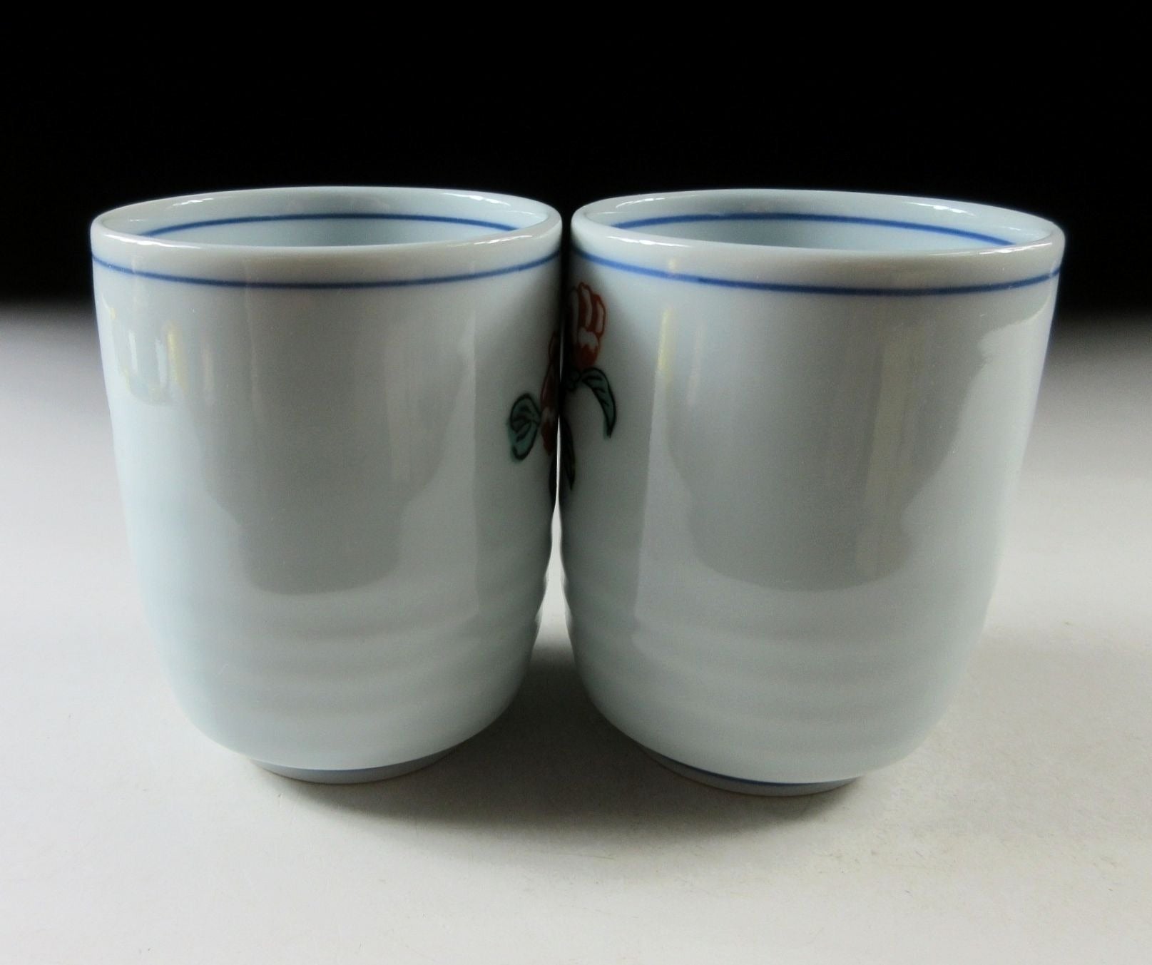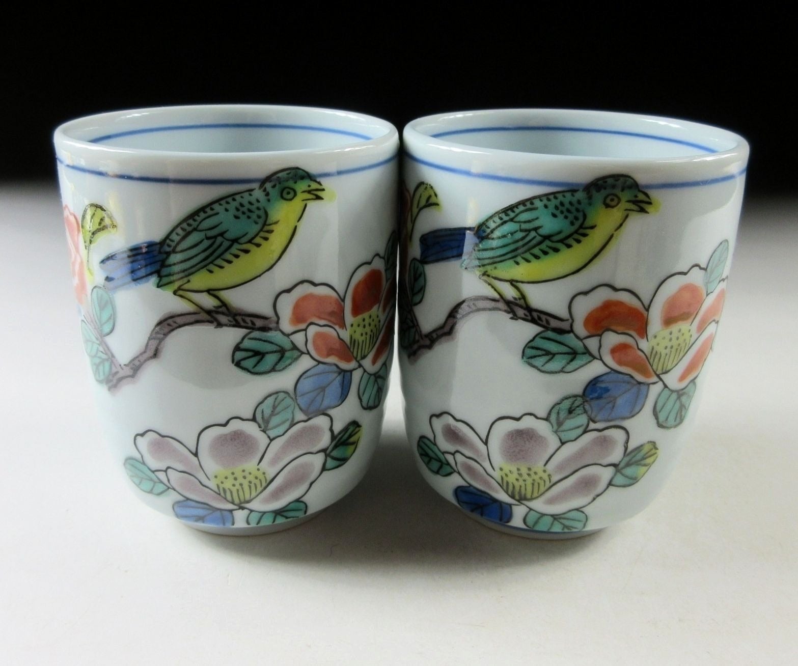 This listing is for a pair of Kutani-ware yunomi made around 20 years by Koyo Gama. They are made of porcelain and decorated with hand-painted depictions of birds with camellia flowers. Also these cups are what we call meoto style, meaning they are two different sizes and often referred to as a husband and wife pair. The signature of the kiln can be found on the bottom, and they come with their original paper storage box. *PLEASE NOTE THAT THE CHASHAKU TEA SCOOP IS NOT INCLUDED.