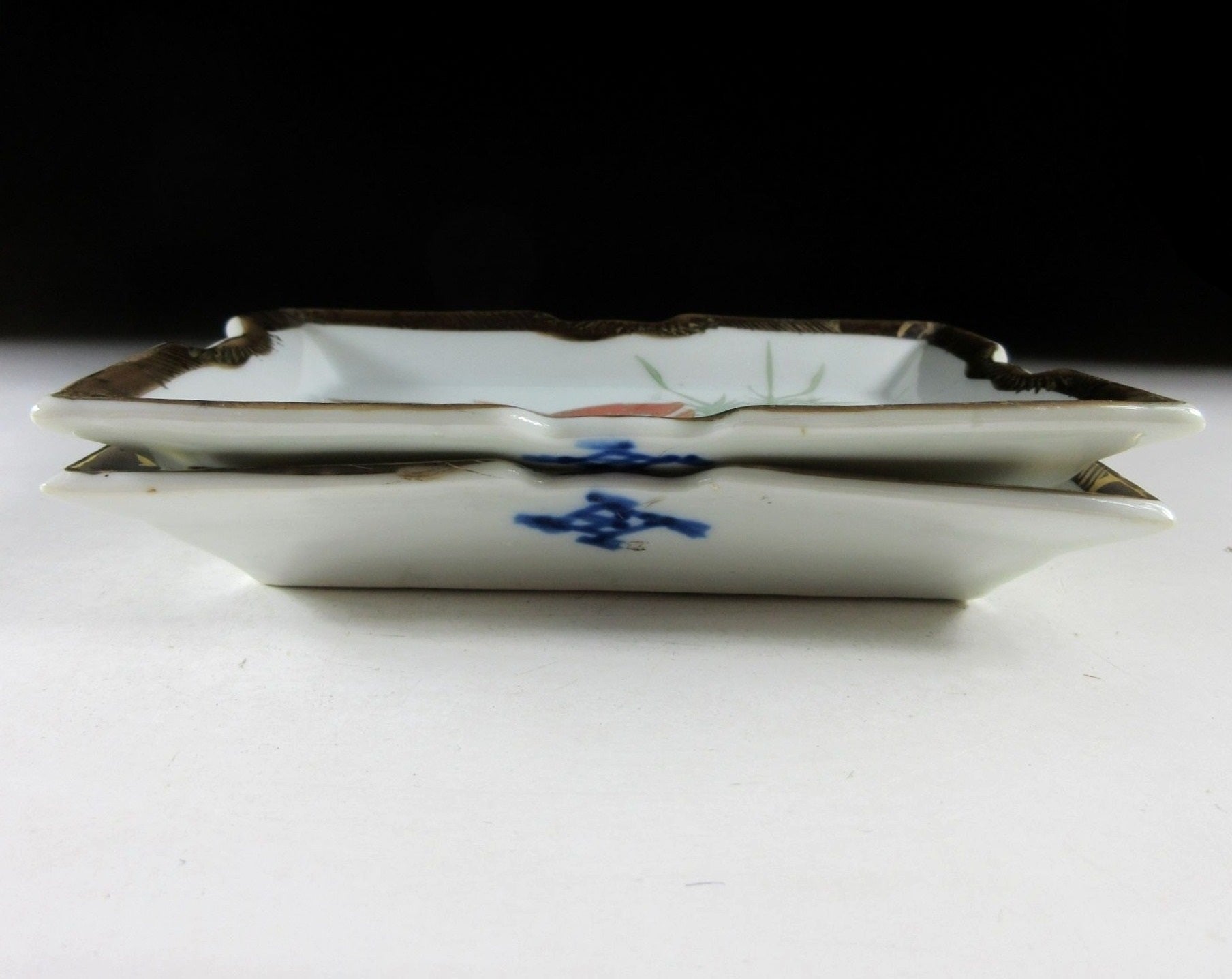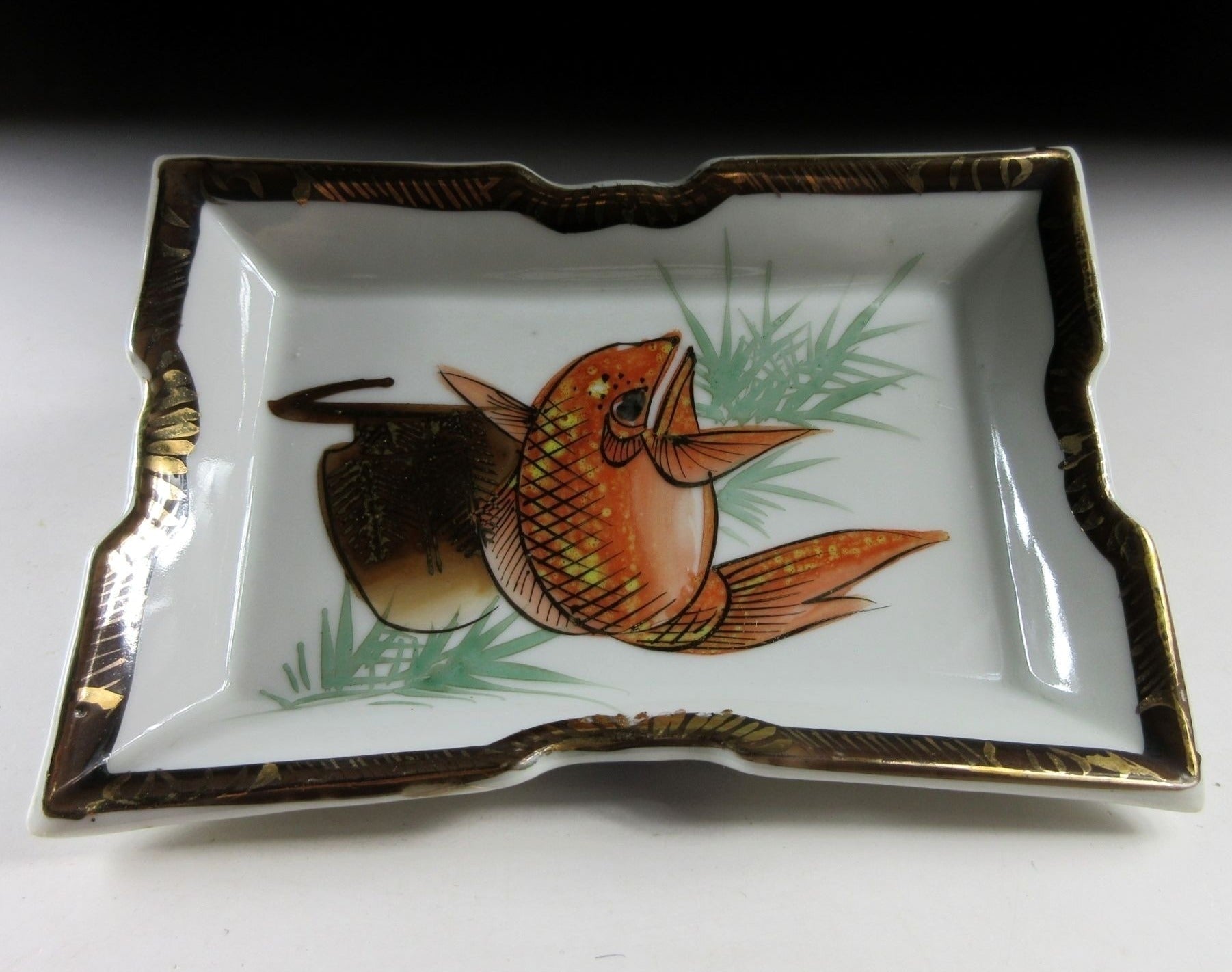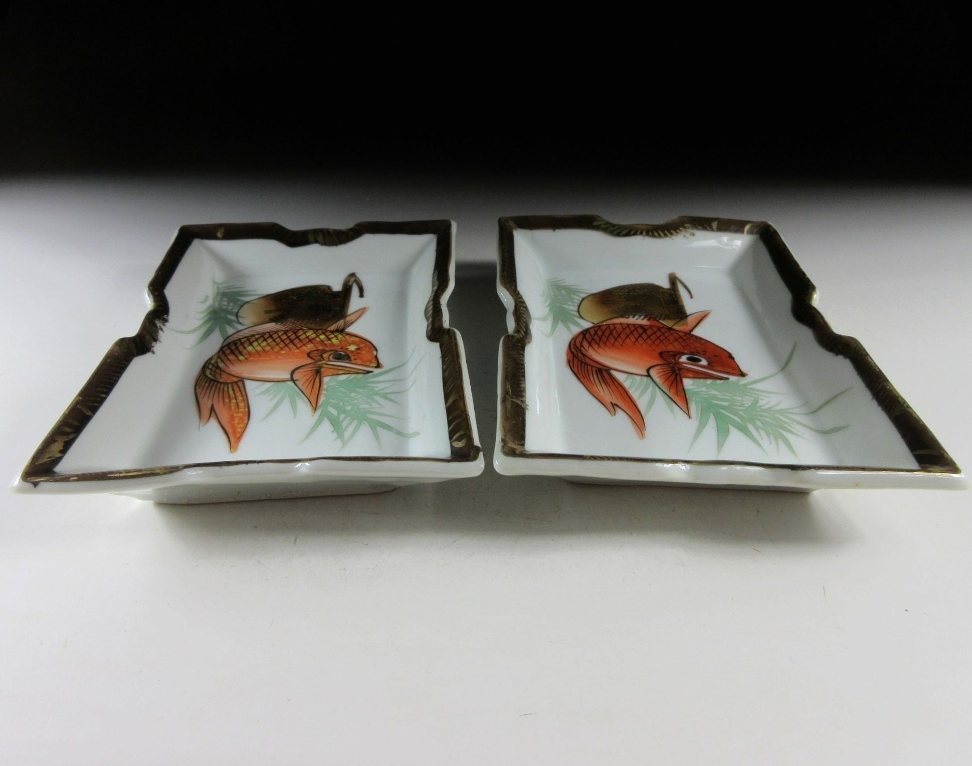 This listing is for a pair of Kutani-ware plates made around 60-70 years ago. They are made of porcelain and decorated with a hand-painted depiction of a sea bream. Sea bream has symbolic importance in Japan, it is a fish for celebration and eaten at New Year. The Japanese name for sea bream is ‘tai’, which is part of the word ‘medetai’ which means auspicious and joyful. Also seam bream turns bright red when it’s cooked, and red is a lucky colour that is thought to ward off evil.