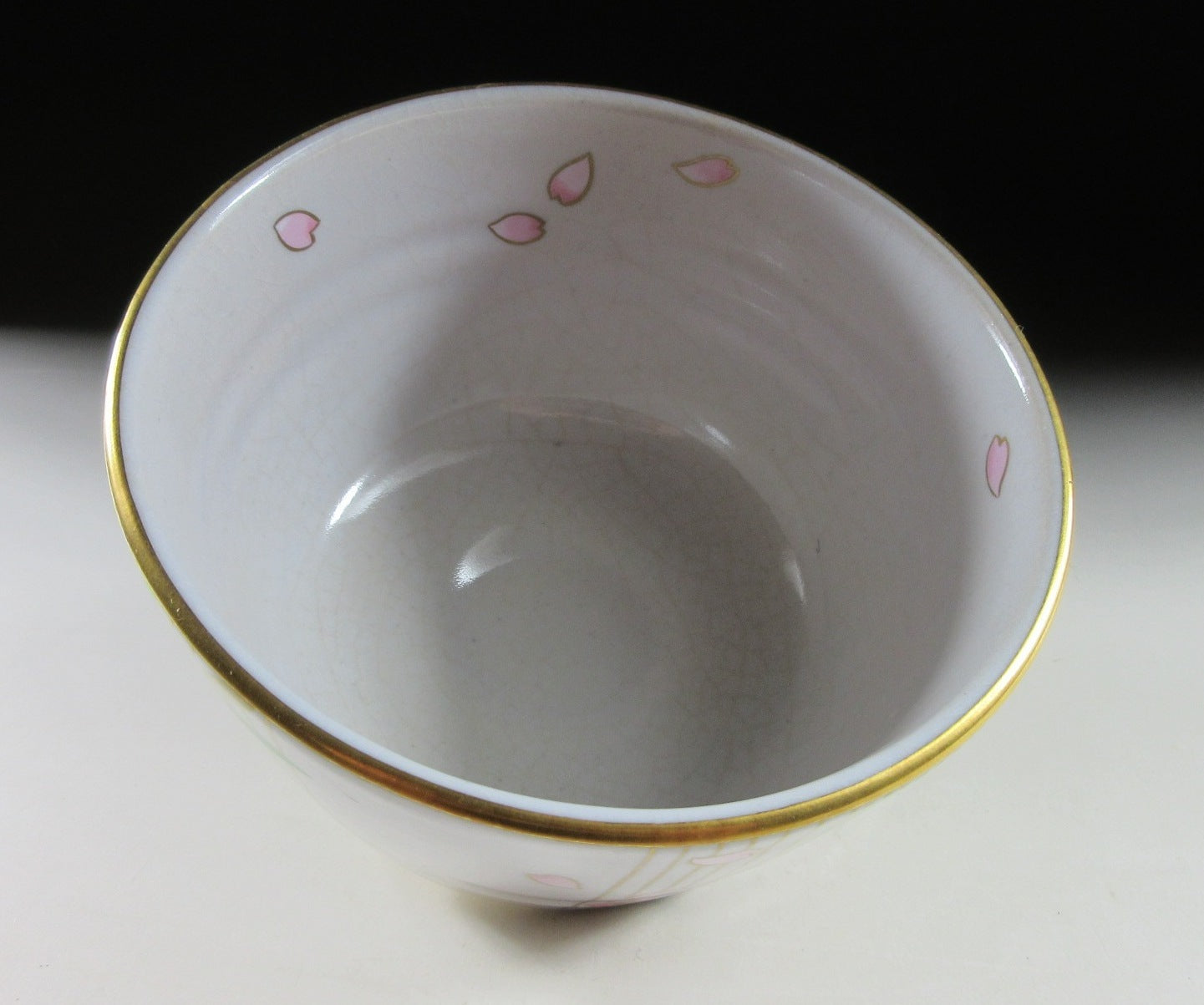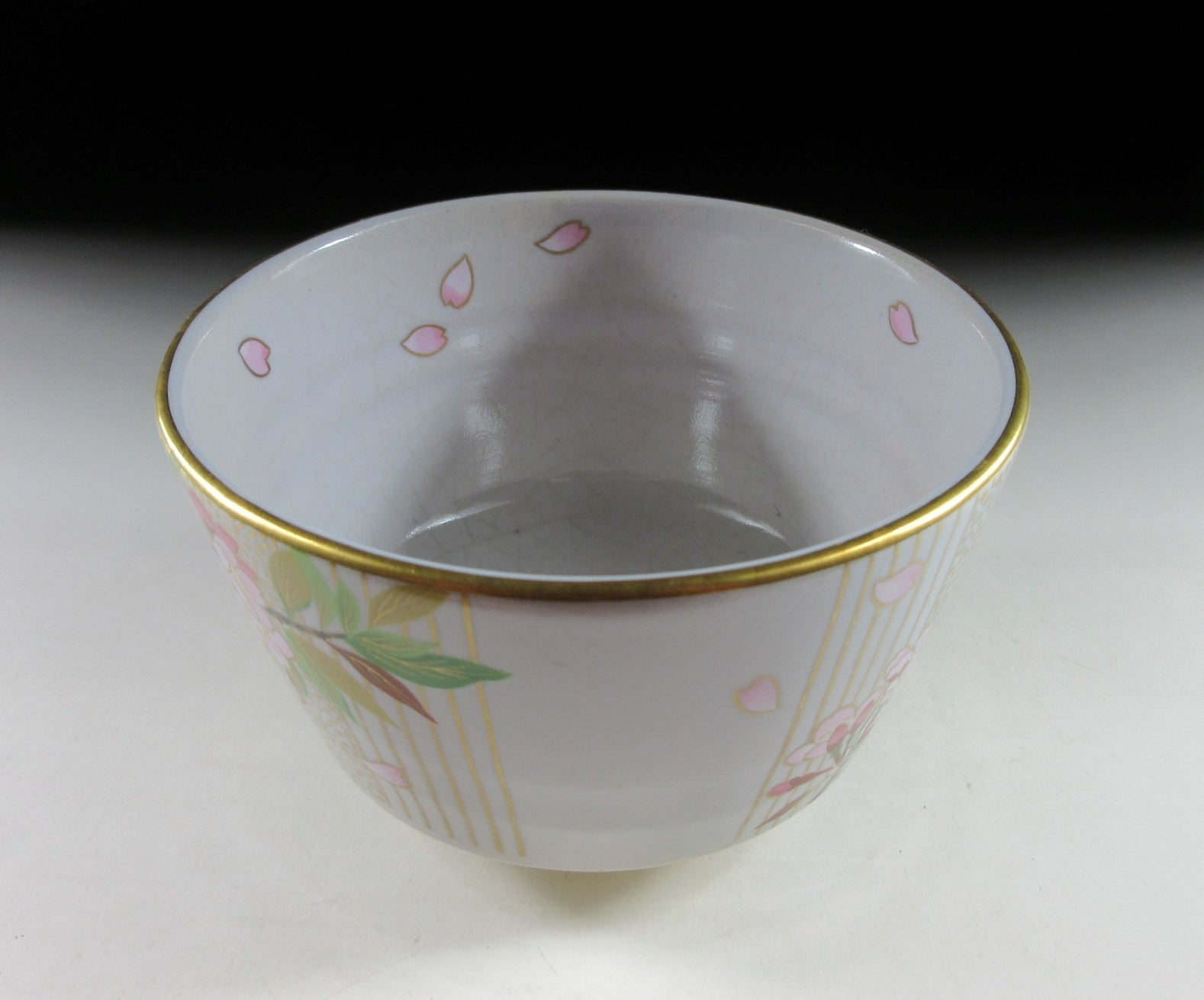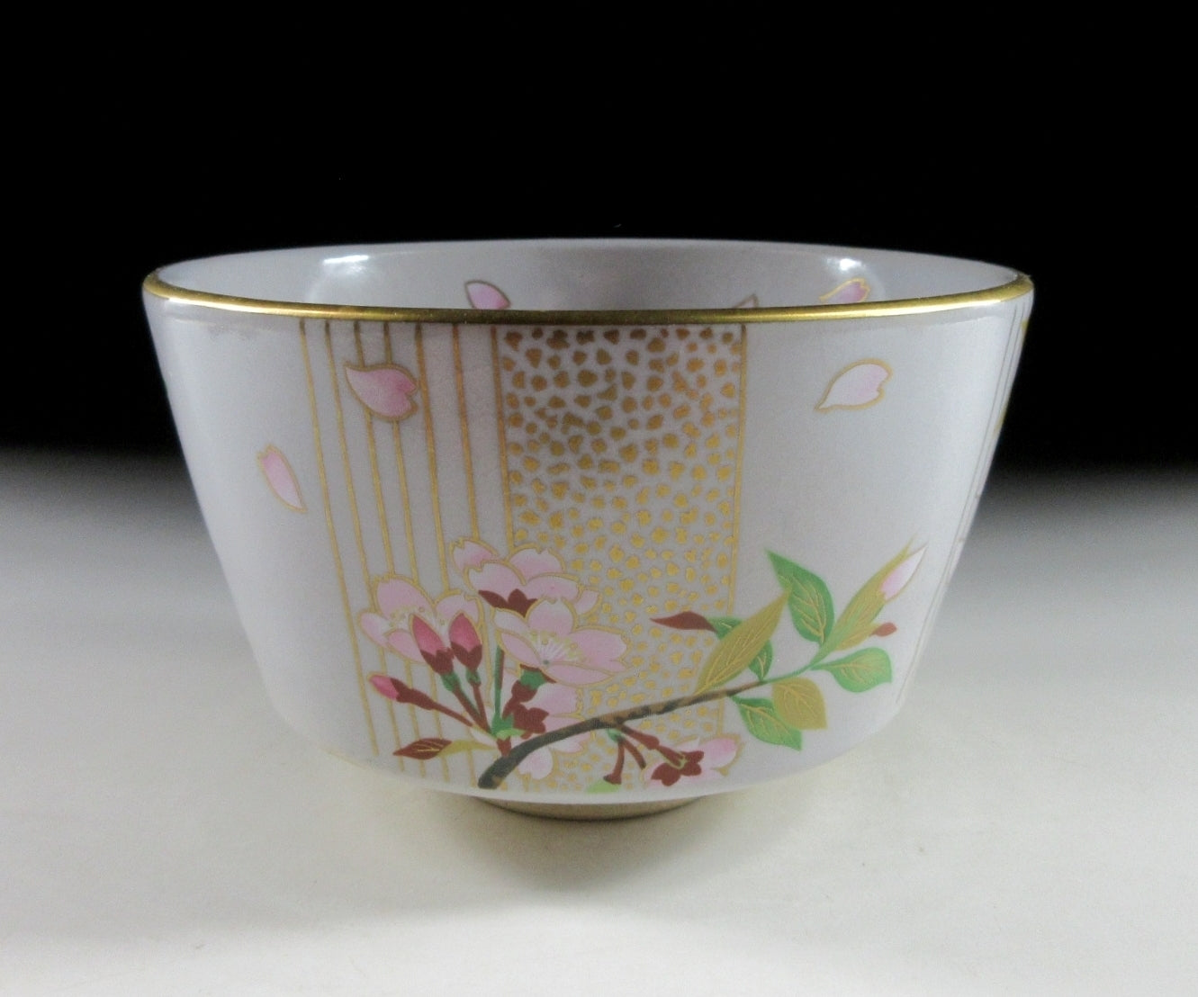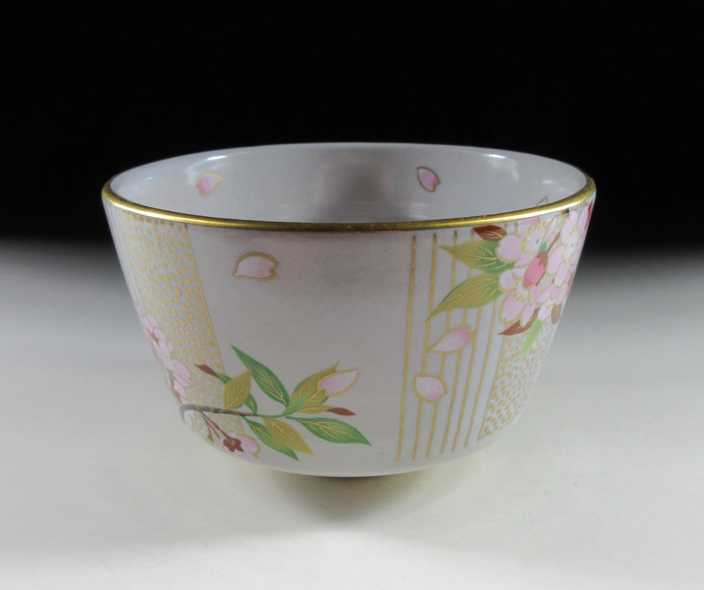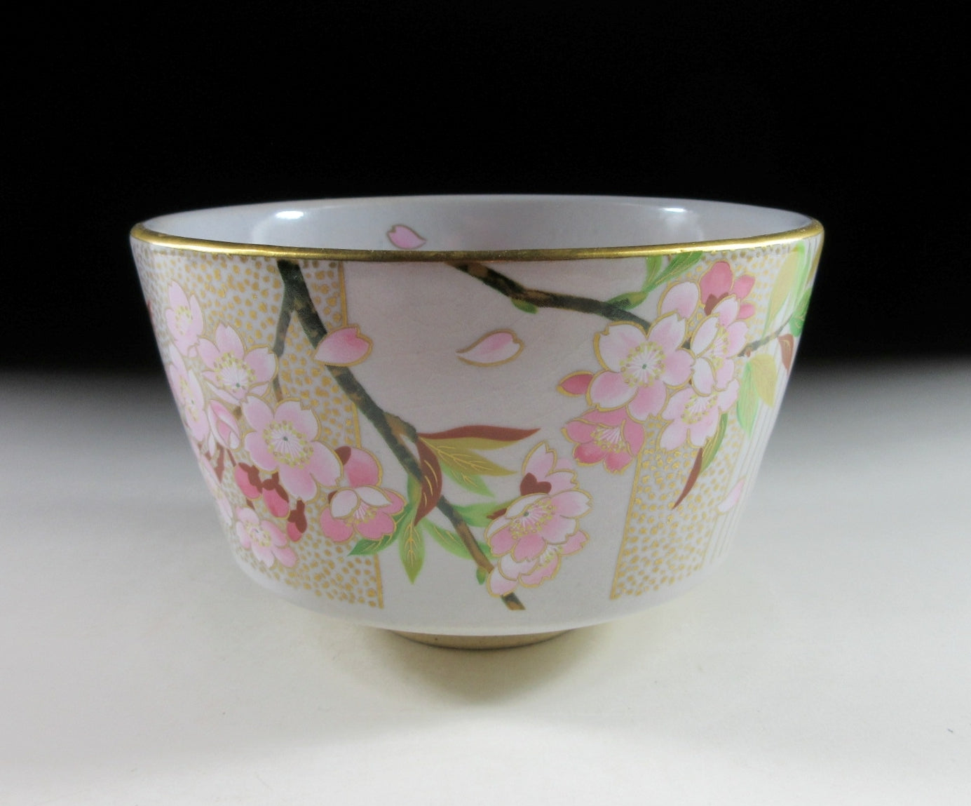 This listing is for a beautiful Kiyomizu-ware chawan made around 20 years ago. It is wheel thrown and decorated with an original illustration by Japanese female painter, Kuwano Mutsuko. This seasonal design features pink cherry blossoms, and it’s from the ‘Gosho no Hana’ series depicting twelve months of flowers growing in the Kyoto Imperial Palace Garden. This particular bowl represents the month of April from the series. The rim is trimmed with gold enamel, and the bowl has a pleasant and practical komogai shape. The stamp of Kuwano and the kiln can be found on the bottom, sorry no box for this one.