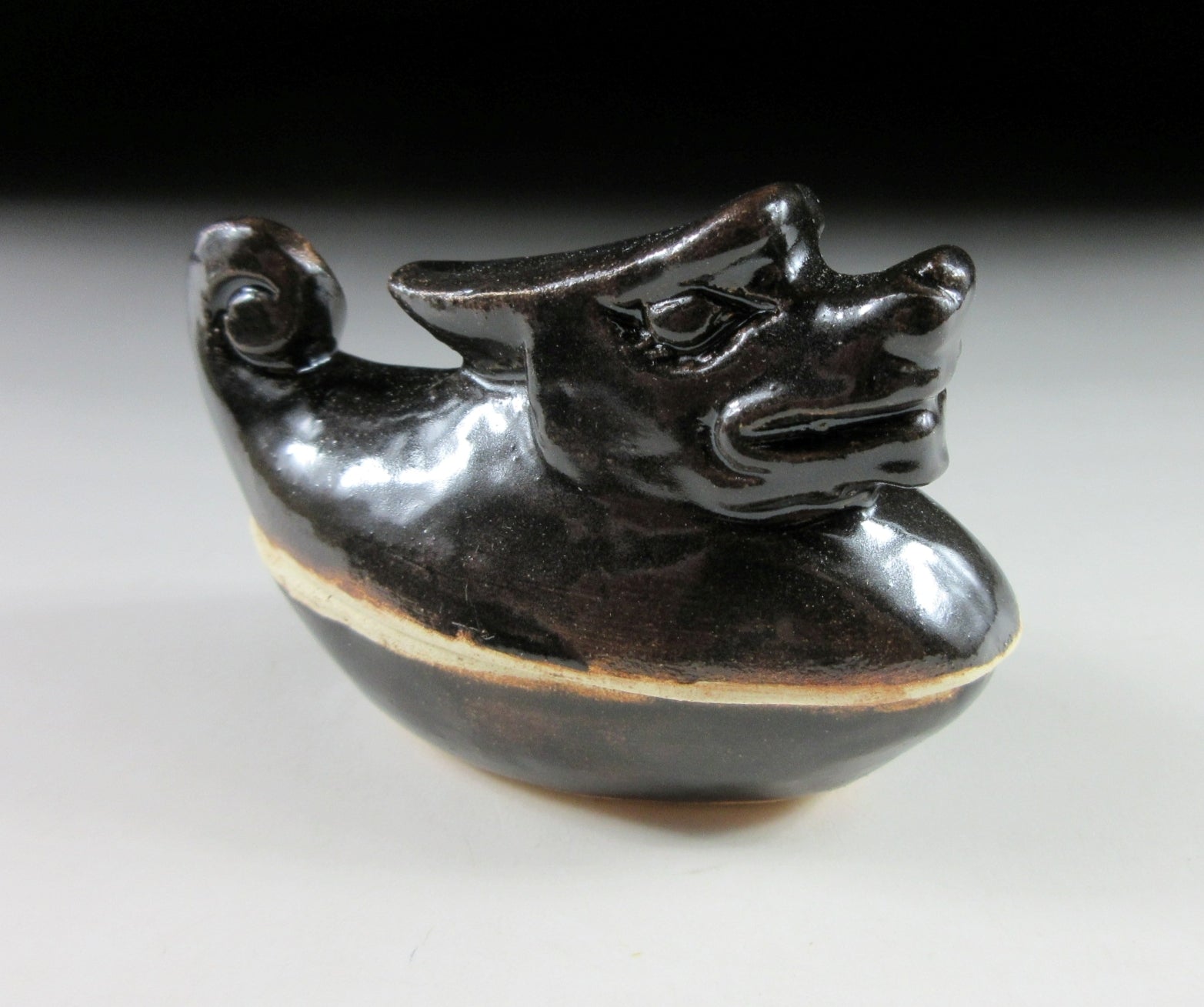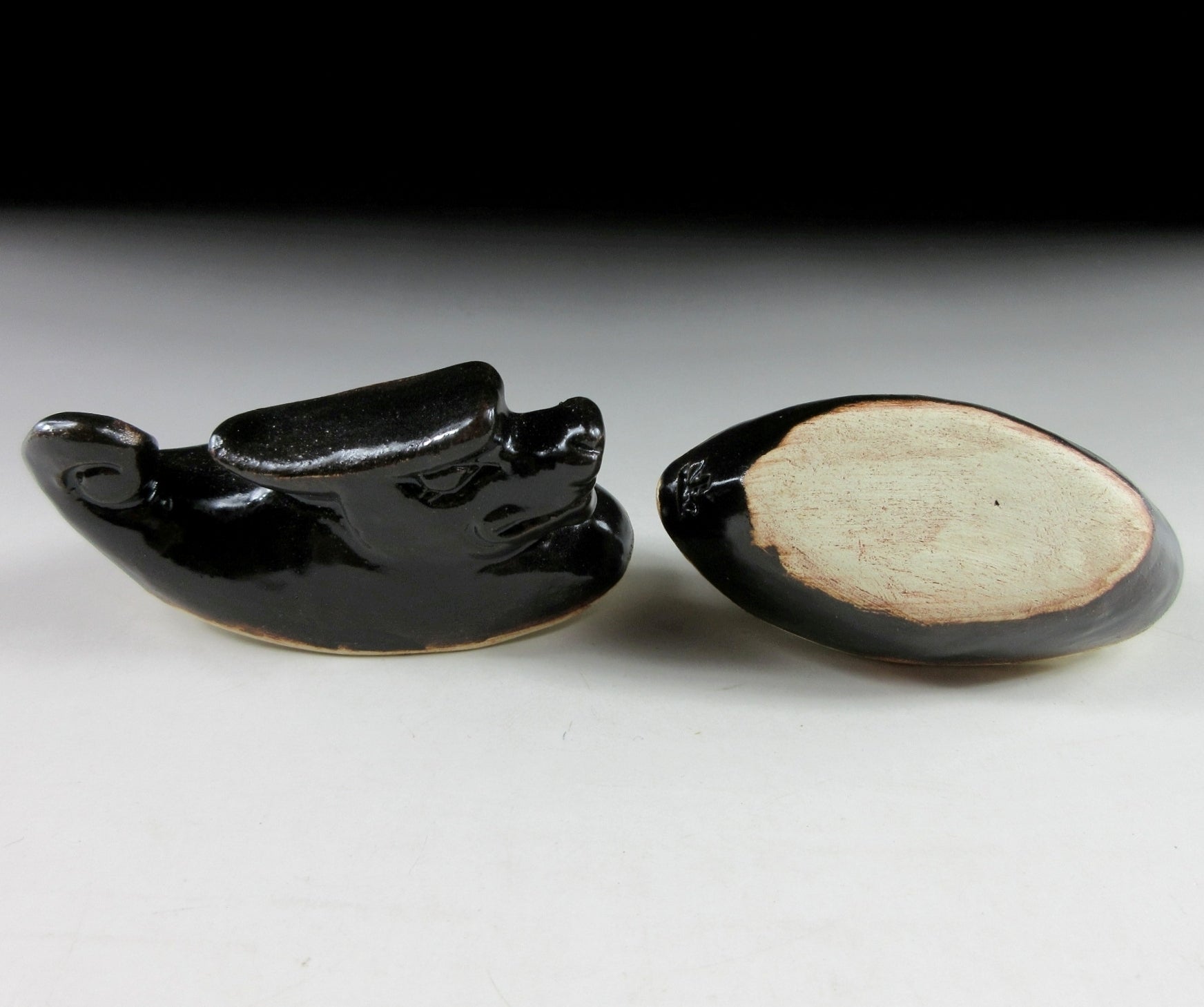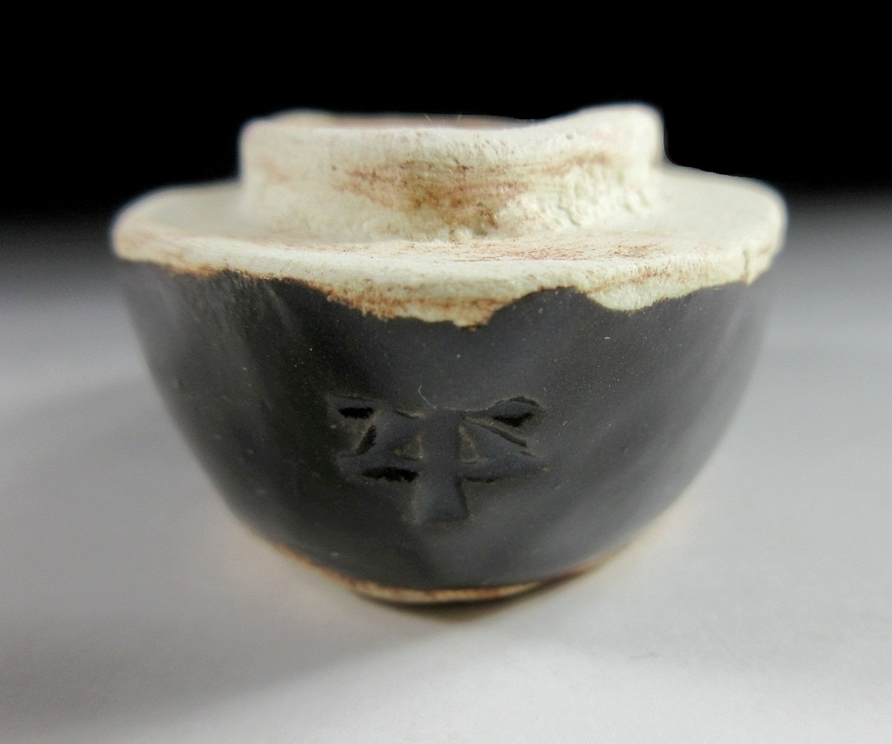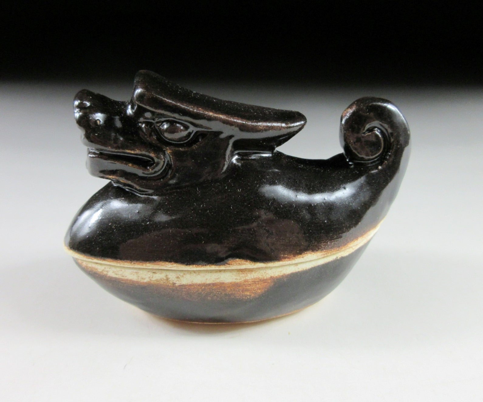 This listing is for a Kyo-ware kogo made around 35 years ago. It is made of high-fired stoneware and moulded to resemble a dragon. This piece was most likely made to commemorate the Year of the Dragon back in 1988. Its size and shape is suitable for holding both woodchip and kneaded incense, although pottery kogo are typically used for kneaded incense during the cooler months. The stamp of the kiln/potter can be found on the front, and it comes with its original paper storage box.