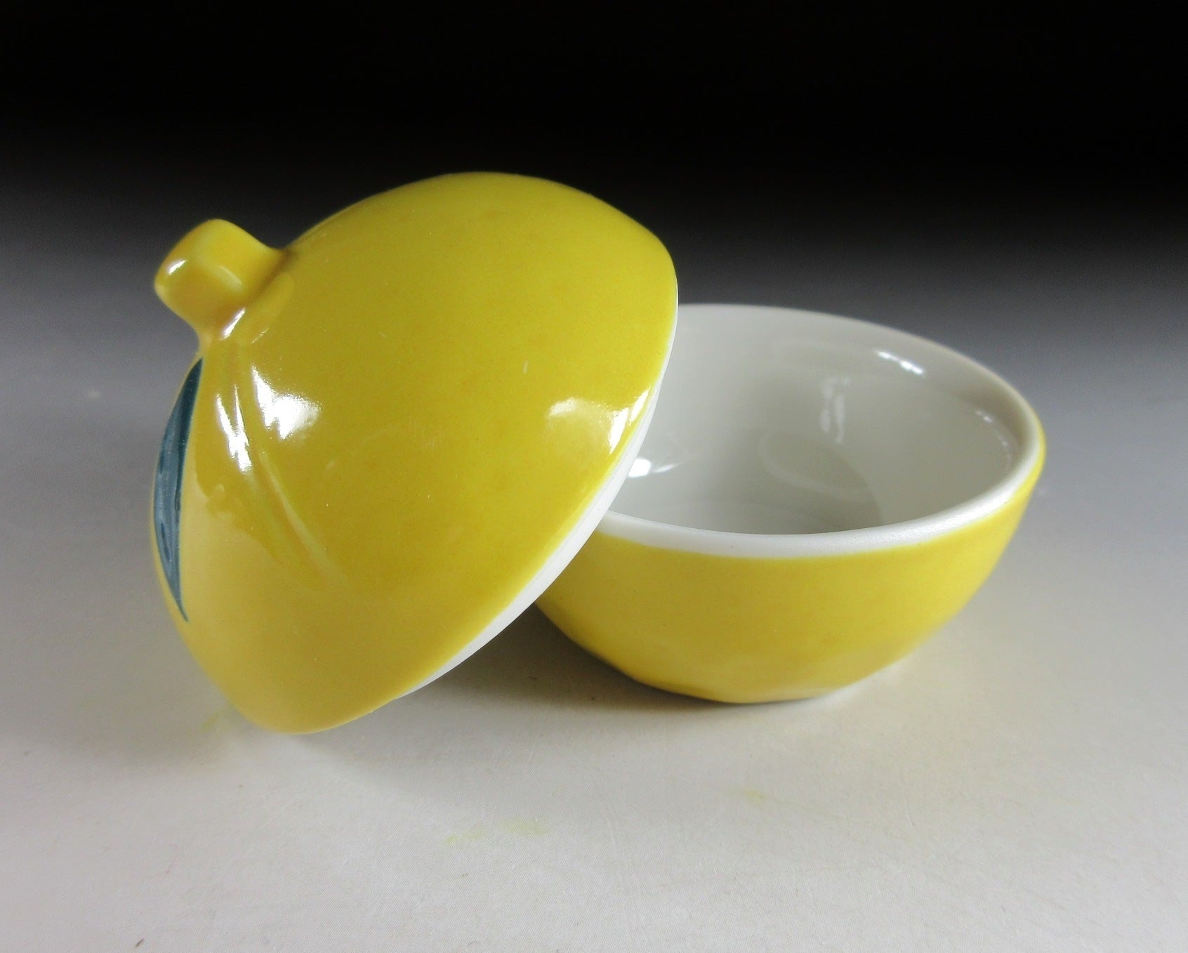 This listing is for a Kyo-ware kogo made around 20 years ago. It is made of porcelain and moulded to resemble a ripe yuzu. From June to August yuzu trees produce green fruit, and then it ripens and turns yellow in late autumn. Yuzu is used for cooking because of its very pleasant and fragrant aroma, also more traditional households add it to bathwater to celebrate the winter solstice. This piece is suitable for holding both kneaded and woodchip type incense, although pottery kogo are typically used for kneaded incense during the cooler months.