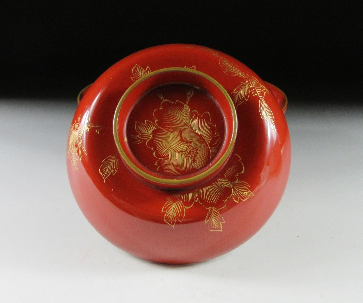 This listing is for an urushi lacquerware bowl made around 40-50 years ago. It is coated in vermilion coloured lacquer and the lid is decorated with peony flowers. The bowl is wooden, and the flowers were created using the makie technique. Peonies were introduced from China during the 6th-7th century and symbolise courage and strength. Peonies are also thought to represent dignity, beauty and elegance so they’re a popular pattern for kimono. In Japan peonies bloom from around the beginning of April to mid-May, so this bowl is ideal for use during the spring season.