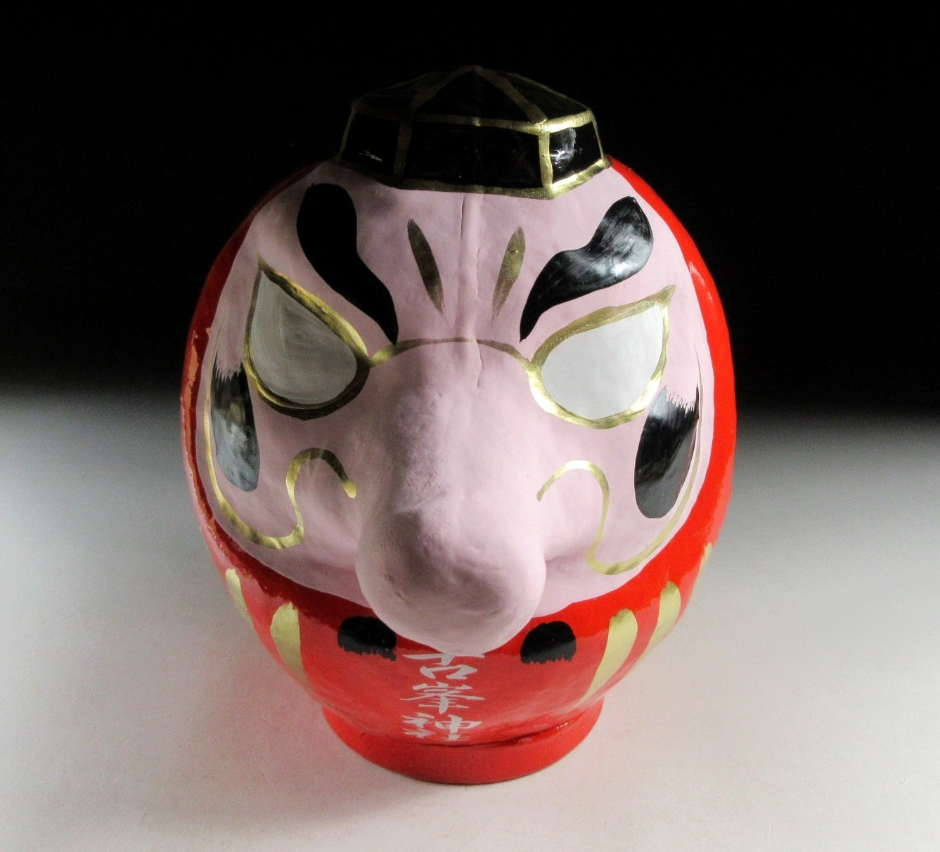 Daruma is a popular talisman of good luck, especially during New Year. When a Daruma is purchased, the owner paints a single eye black while making a wish. Once the wish is realized the other eye is added, and then the Daruma is taken to the local temple to be burned during a special ceremony.